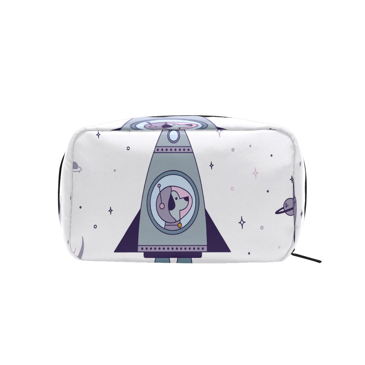 Cosmetic Bag for Women Girls Trave Makeup Bag Toiletry Case Pouch Accessories Organizer Galaxy Spaceship Planet Astronaut Dog
