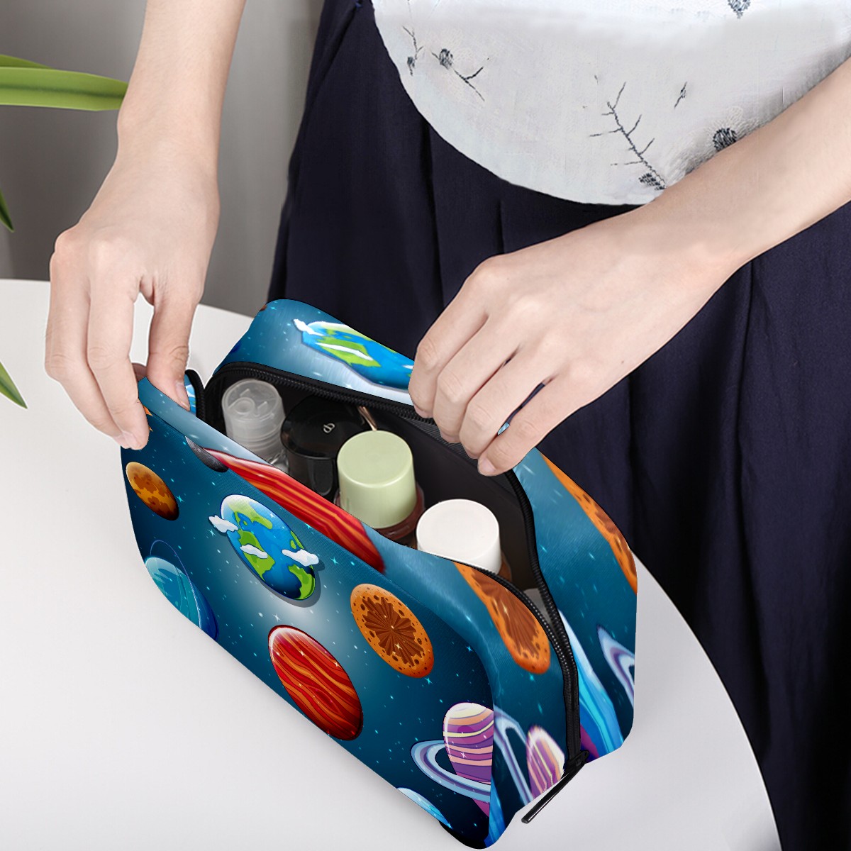 Cosmetic Bag for Women Girls Trave Makeup Bag Toiletry Case Pouch Accessories Organizer Galaxy Space Solar System