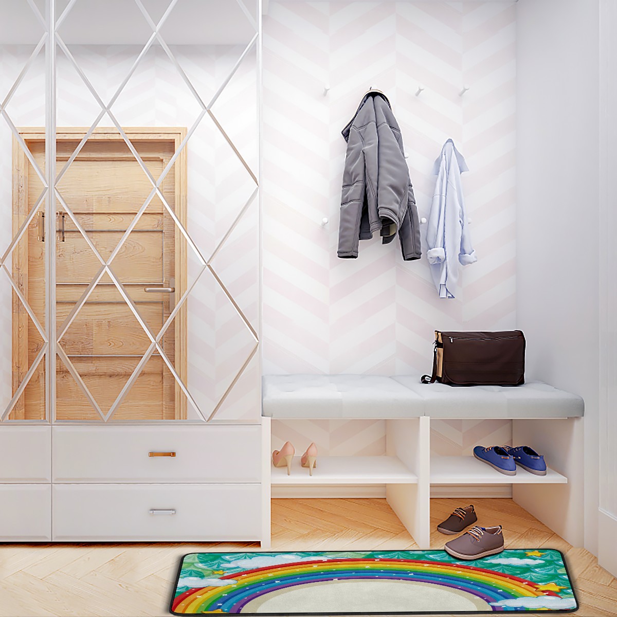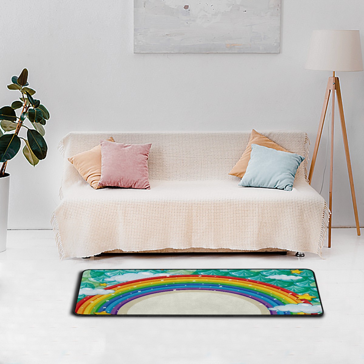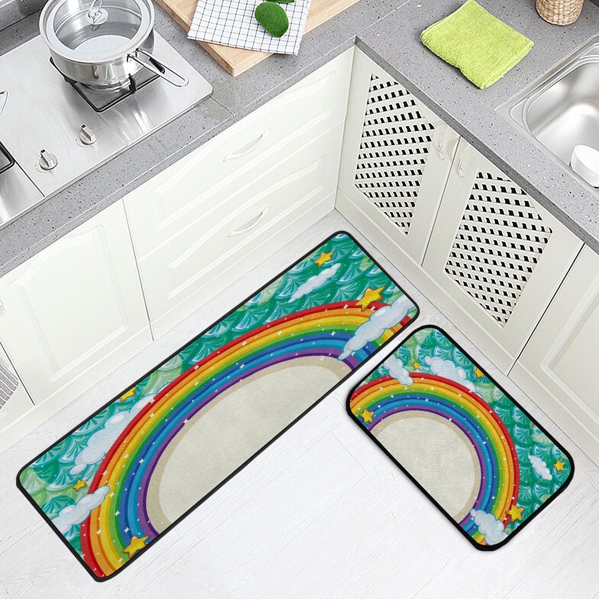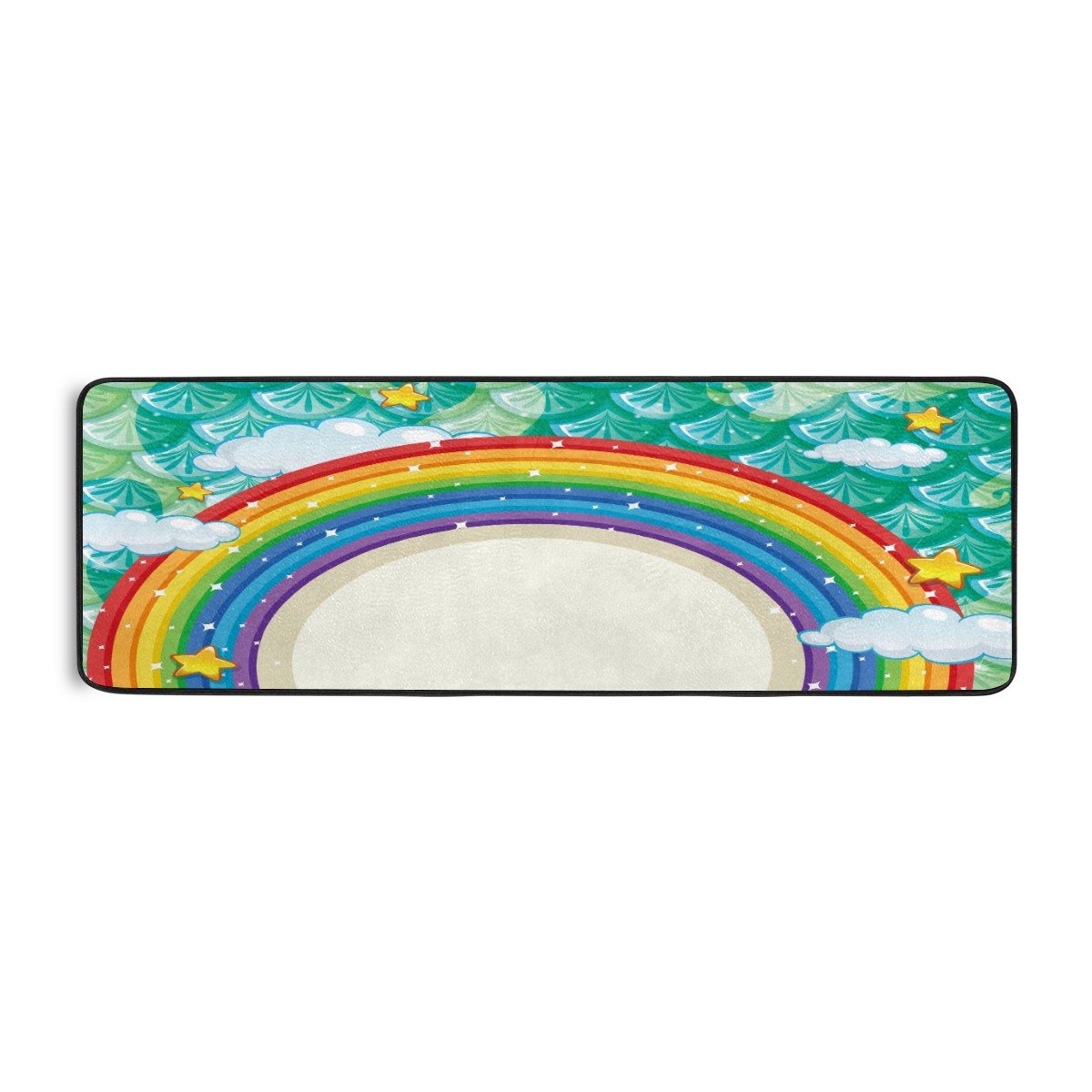 Kitchen Rugs Runner Green Fish Scales Cloud Star Colorful Rainbow Comfort Floor Mat Bath Mats Bed Desk Bathroom Area Rug Long Doormat Carpet Home Hotel