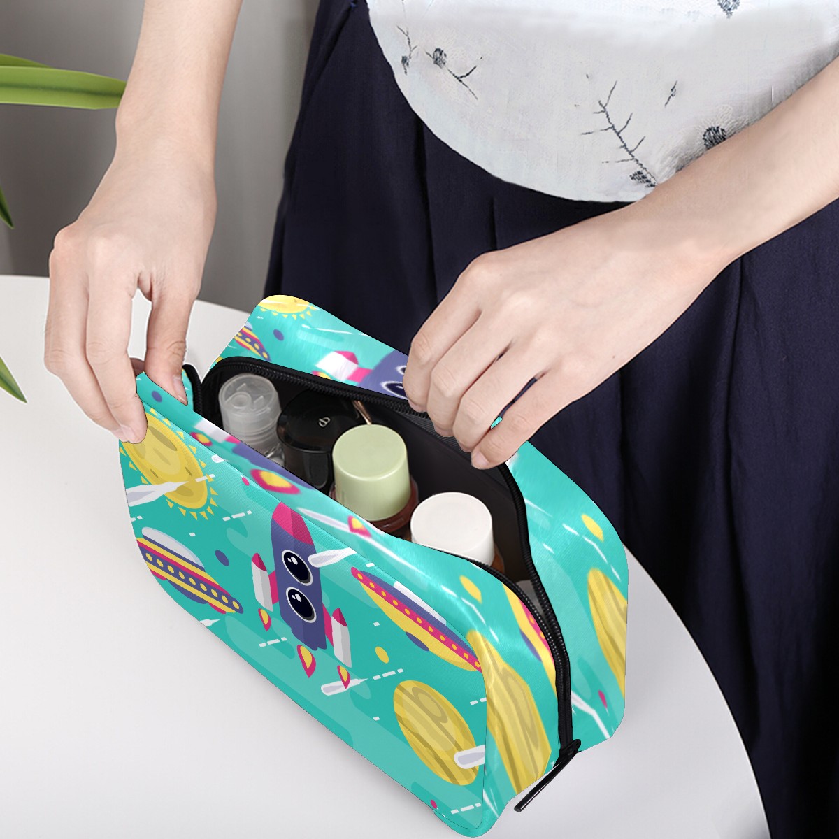 Cosmetic Bag for Women Girls Trave Makeup Bag Toiletry Case Pouch Accessories Organizer Galaxy Space Rocket Planet UFO