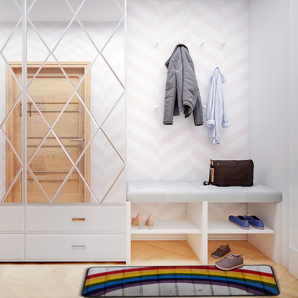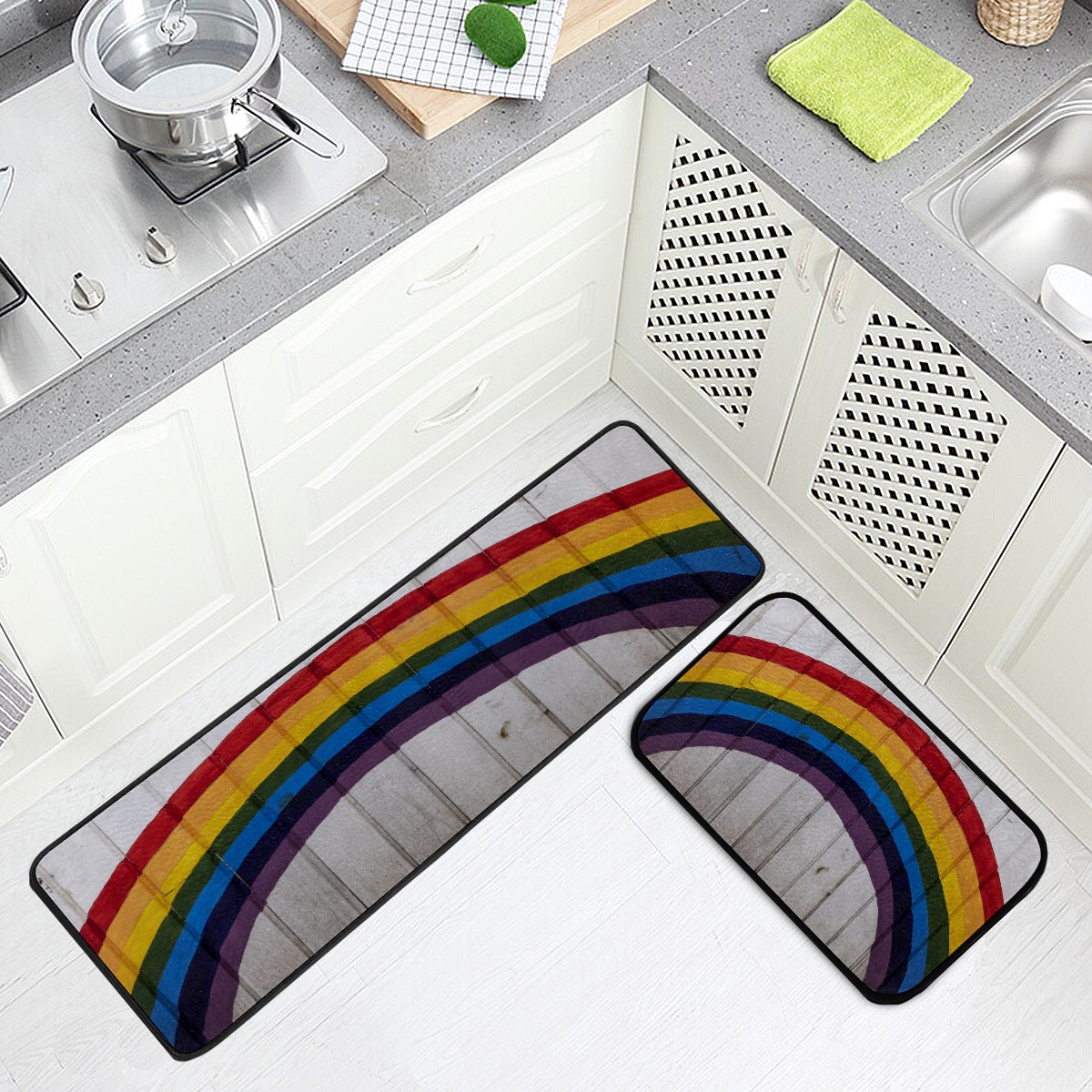 Kitchen Rugs Runner Colorful Rainbow Wood Barn Board Comfort Floor Mat Bath Mats Bed Desk Bathroom Area Rug Long Doormat Carpet Home Hotel