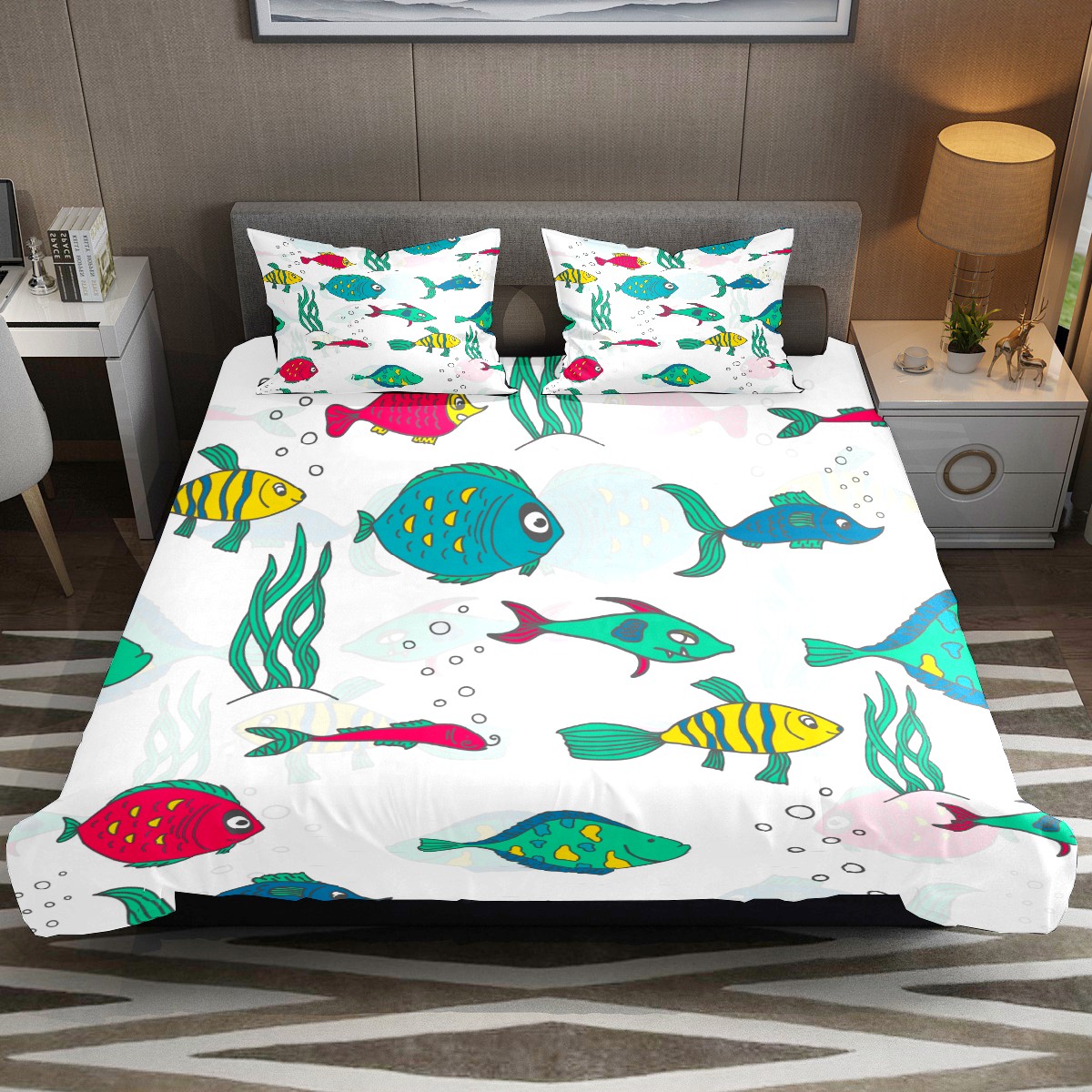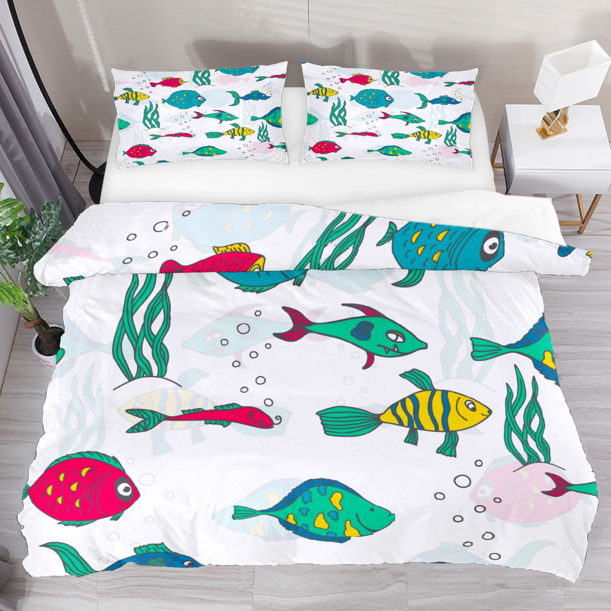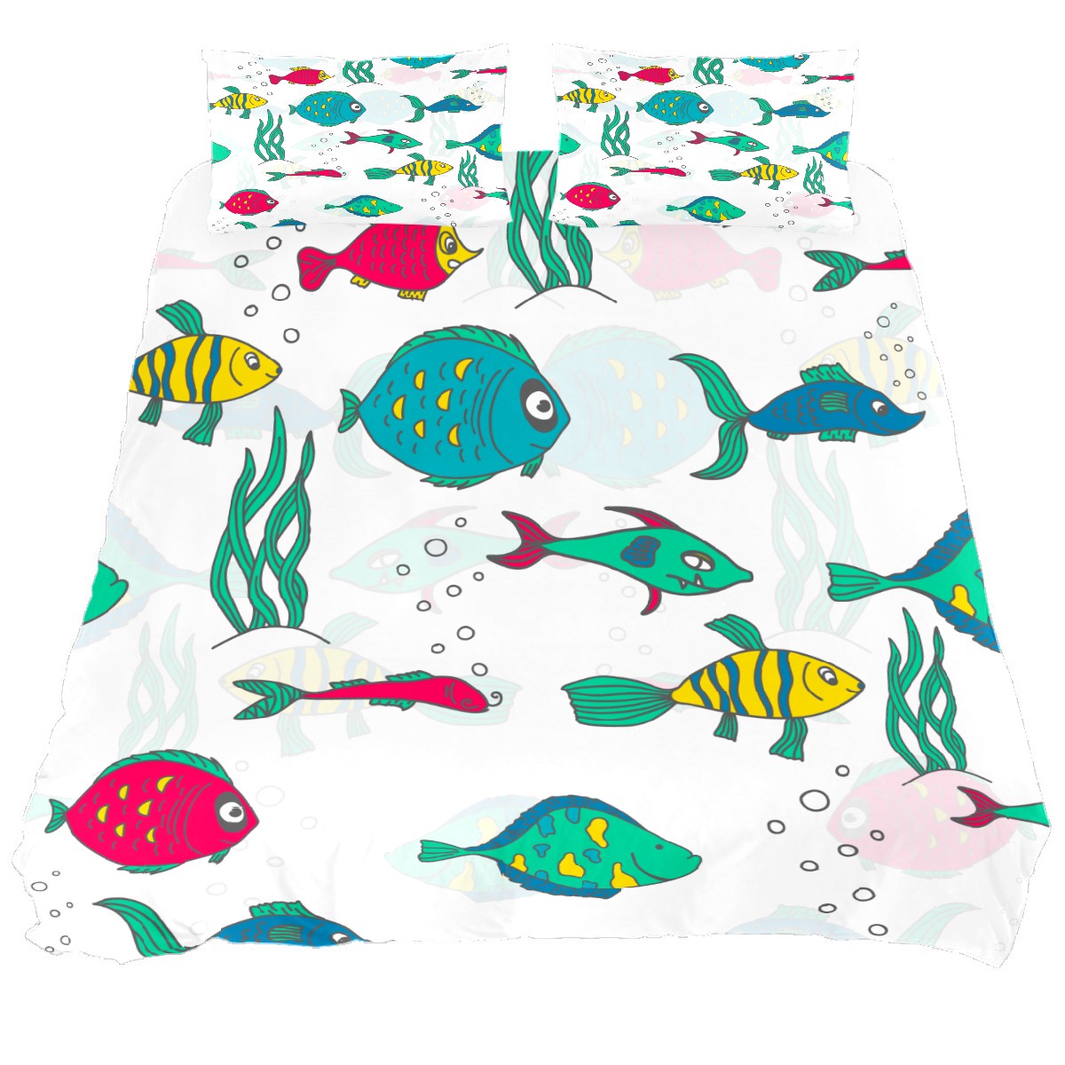 Duvet Cover Twin Ocean Marine Animal Fish 3pcs Bedding Duvet Cover Set Modern Quilt Cover Microfiber Comforter Cover with Button Closure with 2 Pillow Cases 1 Duvet Cover