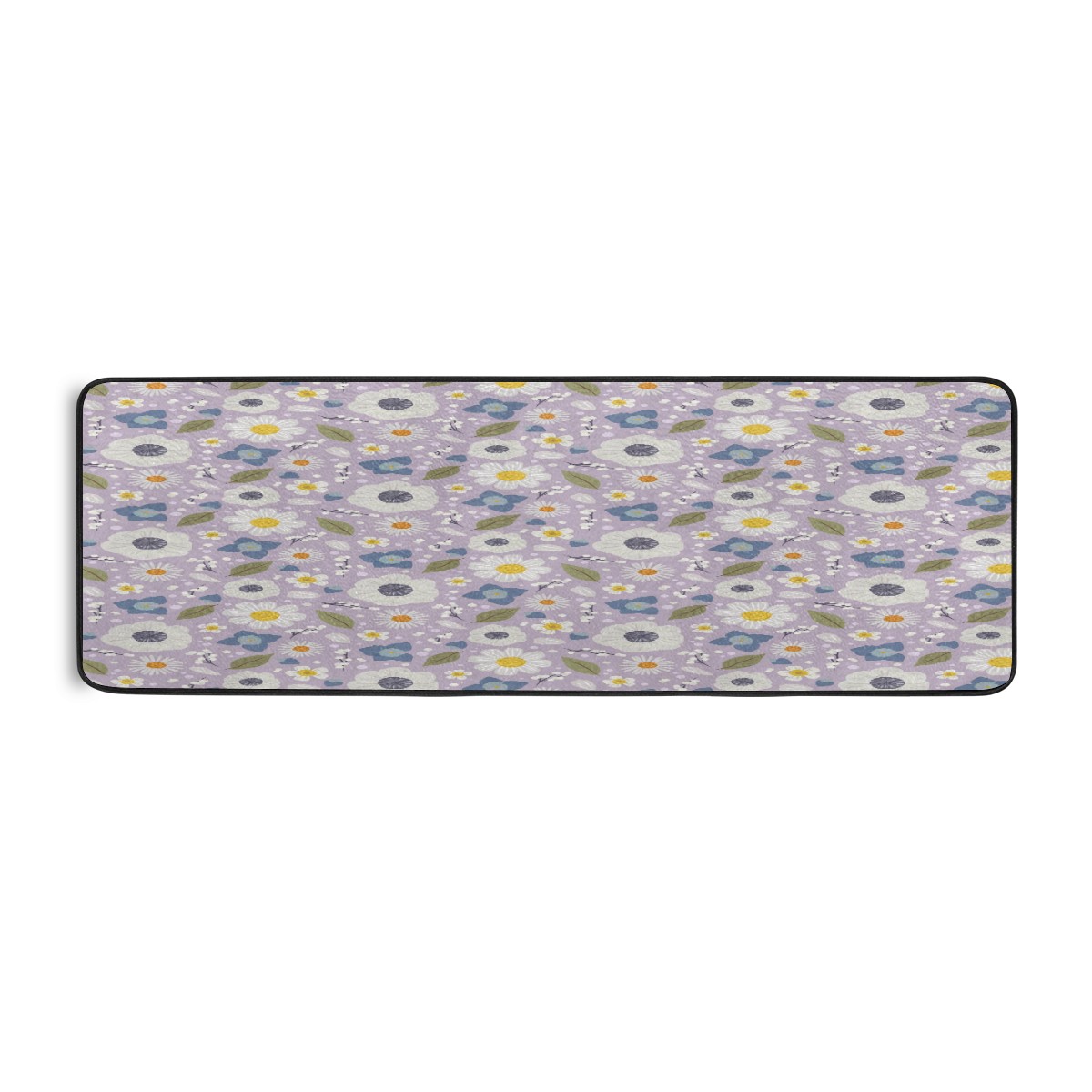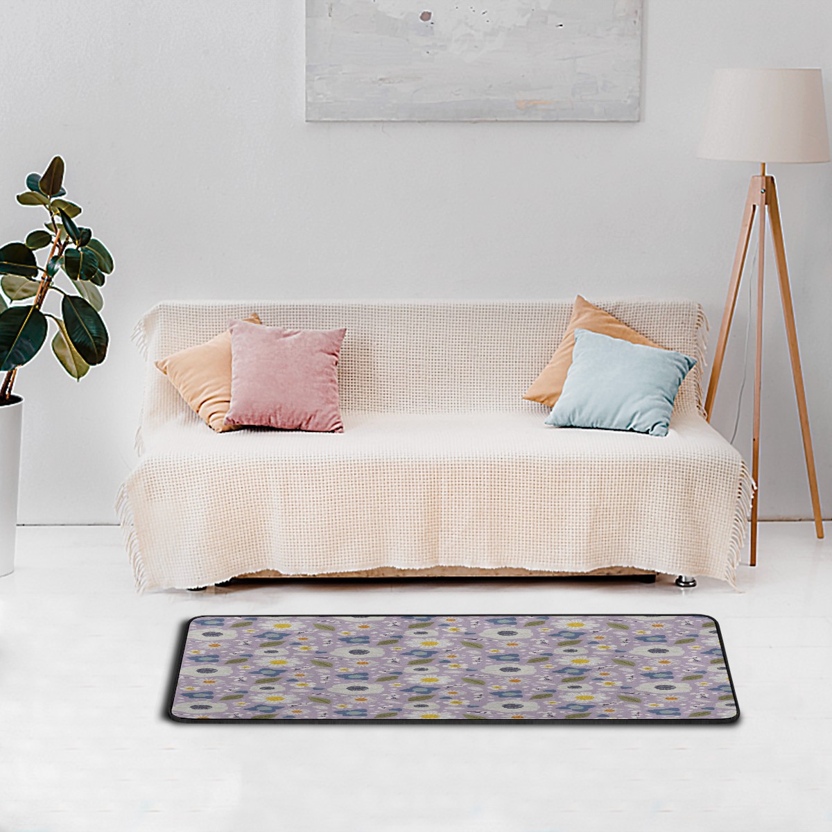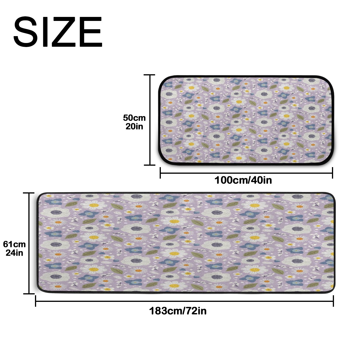 Kitchen Rugs Runner Daisy Floral Green Leaves Purple Comfort Floor Mat Bath Mats Bed Desk Bathroom Area Rug Long Doormat Carpet Home Hotel