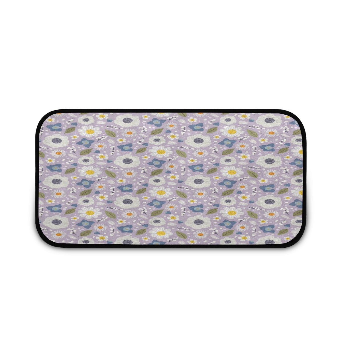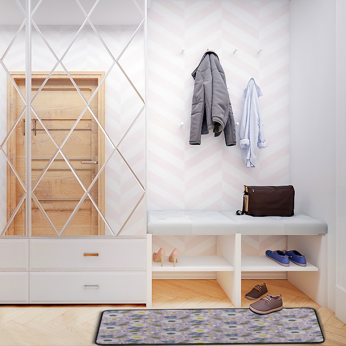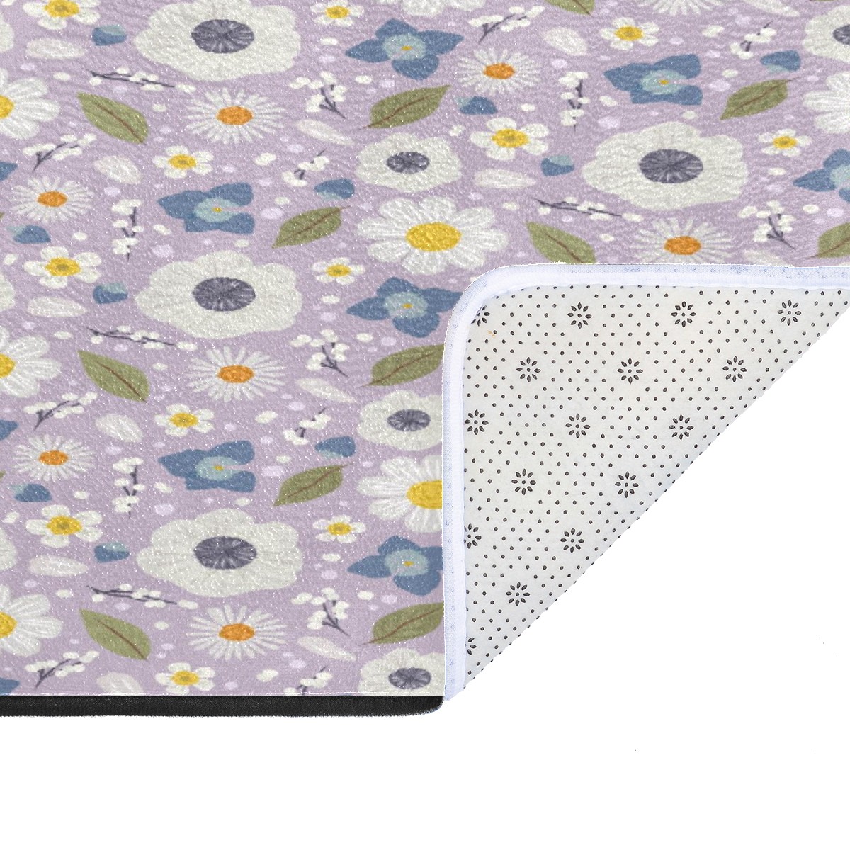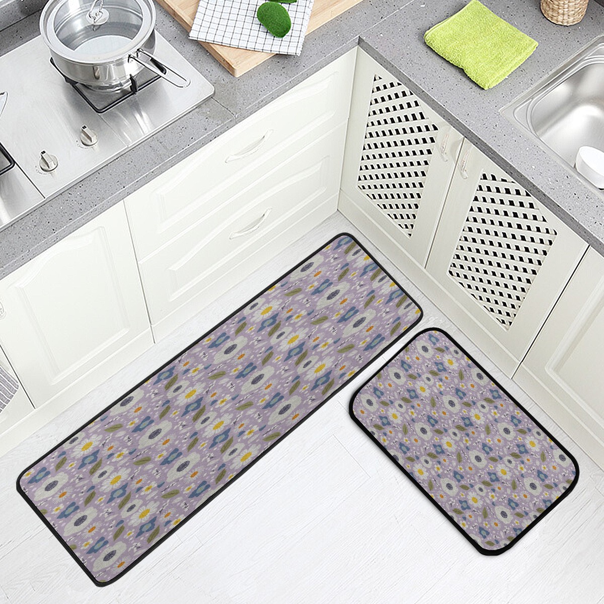 Kitchen Rugs Runner Daisy Floral Green Leaves Purple Comfort Floor Mat Bath Mats Bed Desk Bathroom Area Rug Long Doormat Carpet Home Hotel