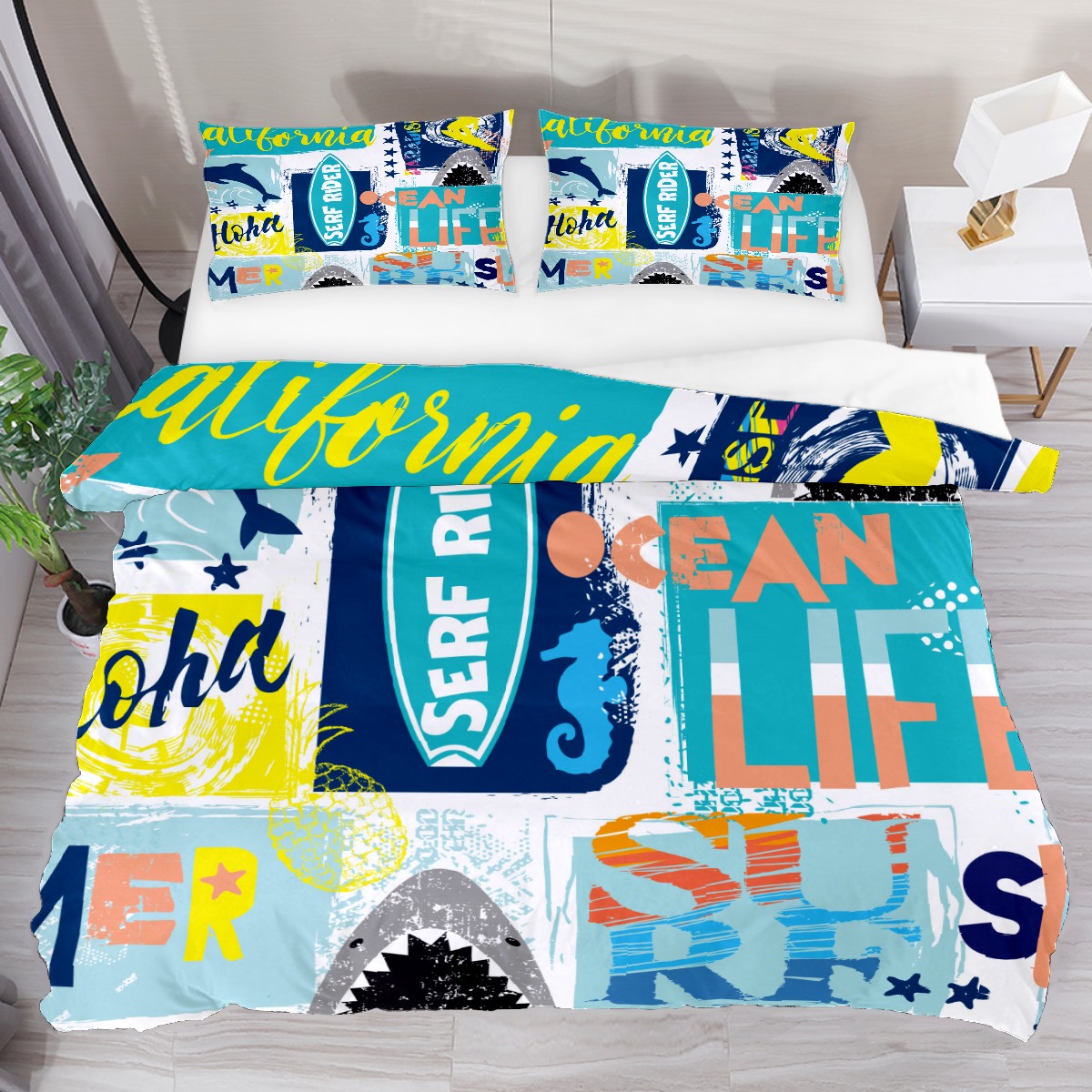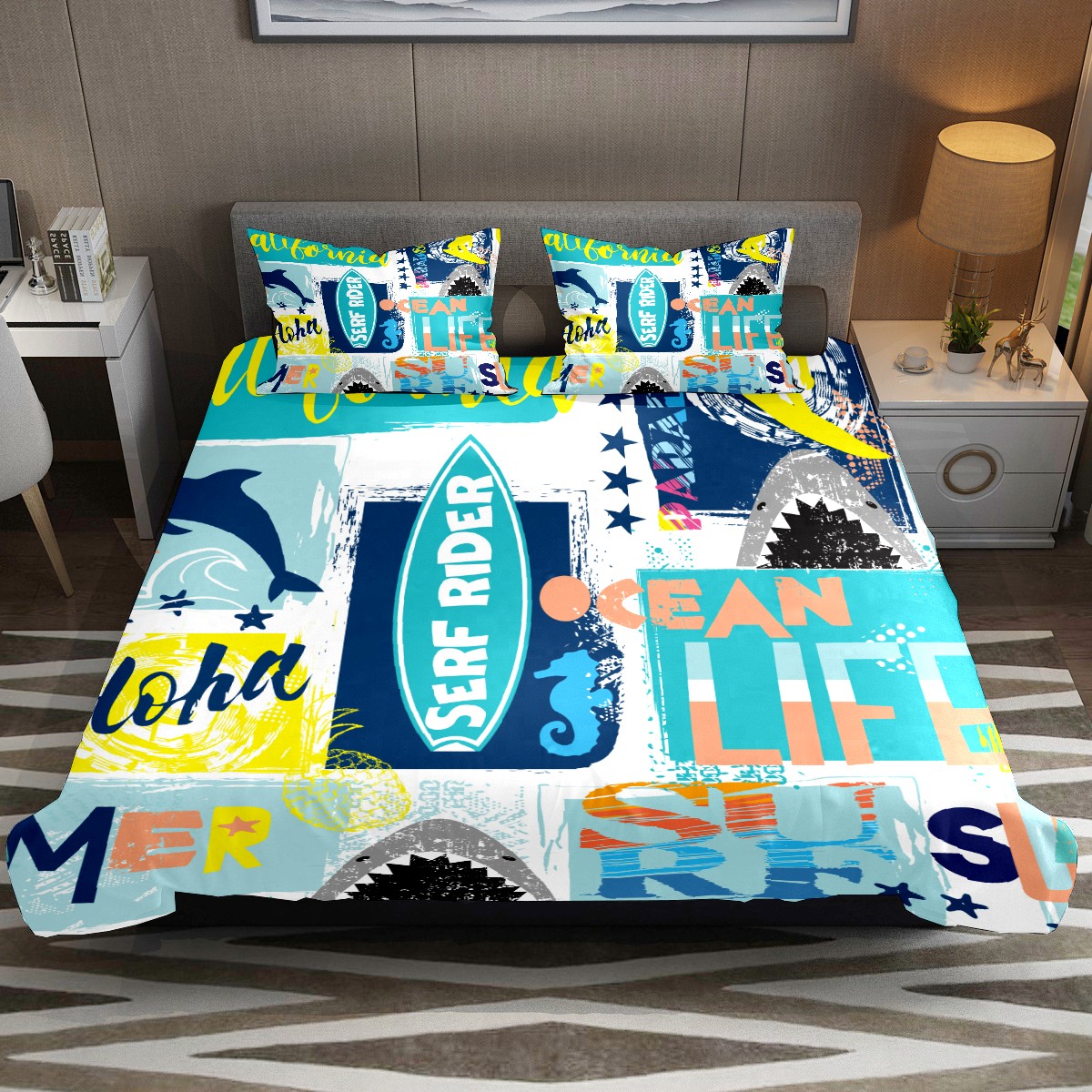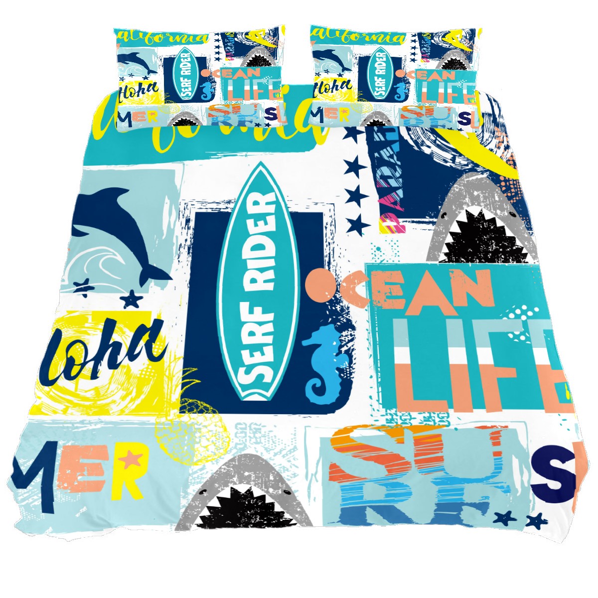 Duvet Cover Twin Ocean Life Shark Surf 3pcs Bedding Duvet Cover Set Modern Quilt Cover Microfiber Comforter Cover with Button Closure with 2 Pillow Cases 1 Duvet Cover