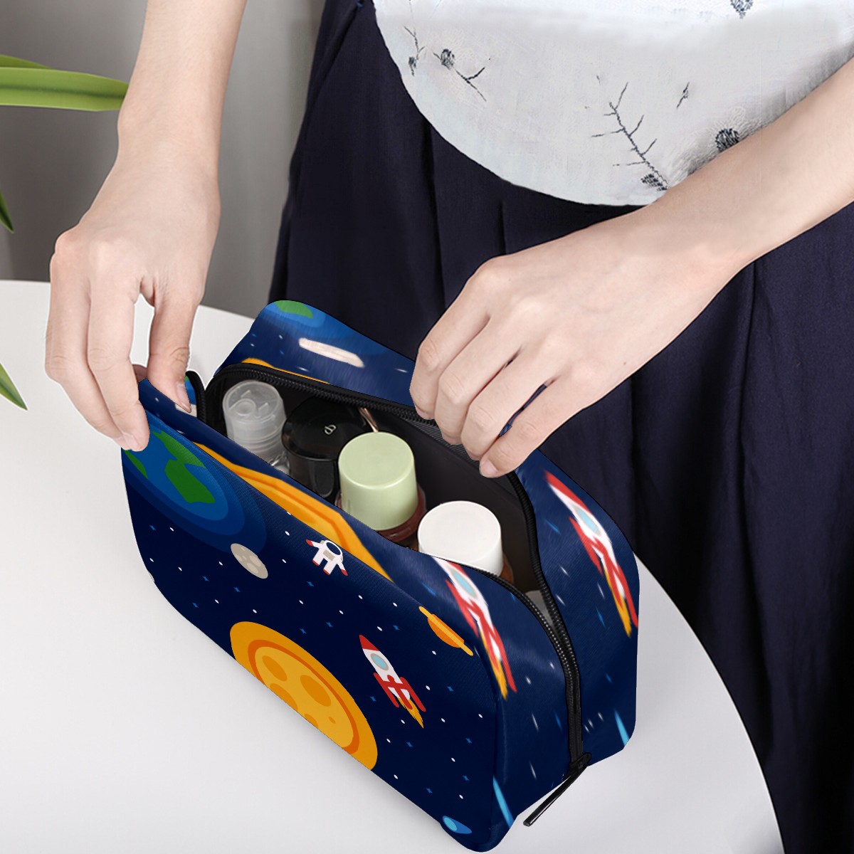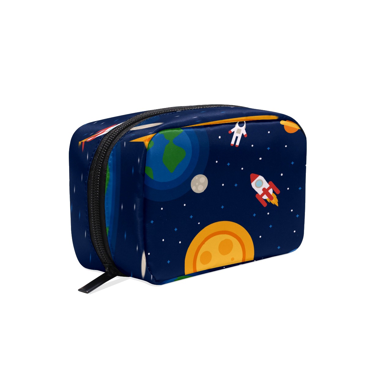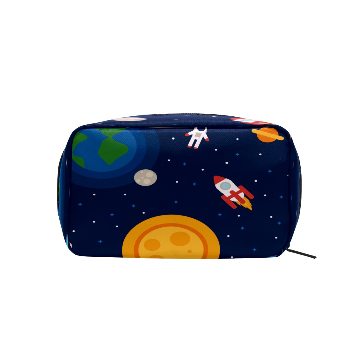 Cosmetic Bag for Women Girls Trave Makeup Bag Toiletry Case Pouch Accessories Organizer Galaxy Space Outer Astronaut Rocket Moon Planet