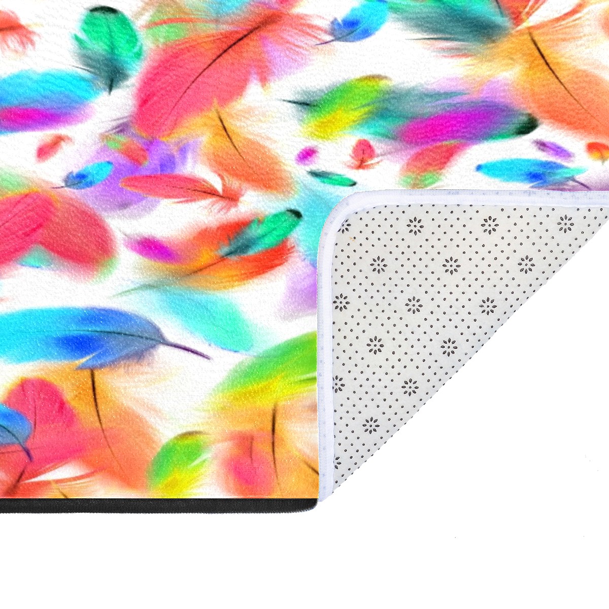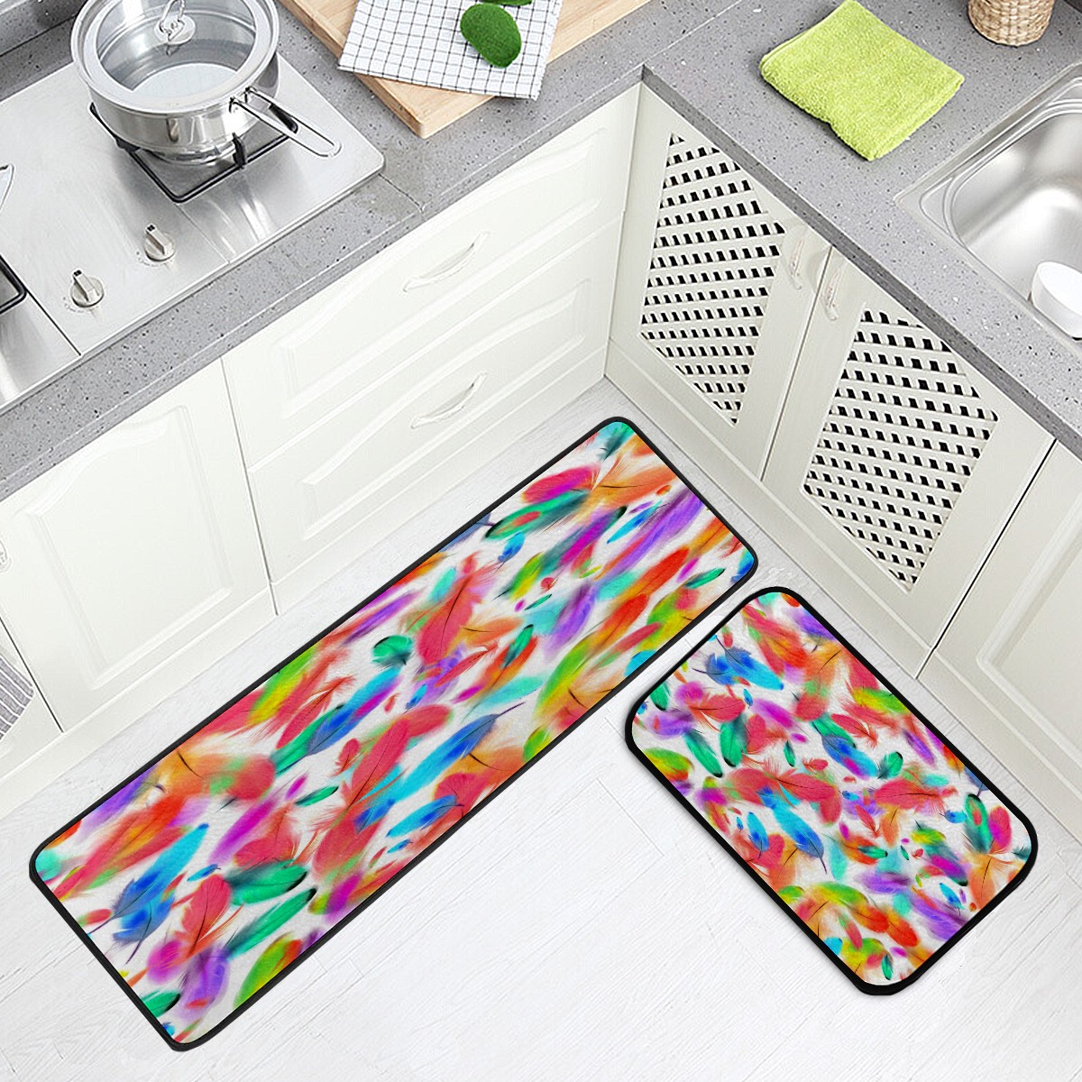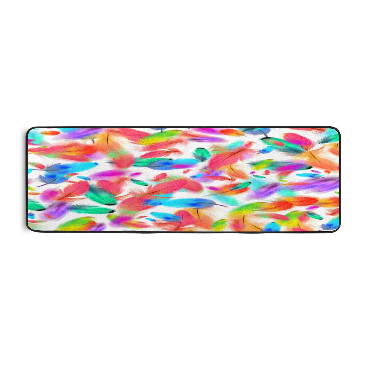Kitchen Rugs Runner Colorful Feathers Pink Blue Green Pattern Comfort Floor Mat Bath Mats Bed Desk Bathroom Area Rug Long Doormat Carpet Home Hotel