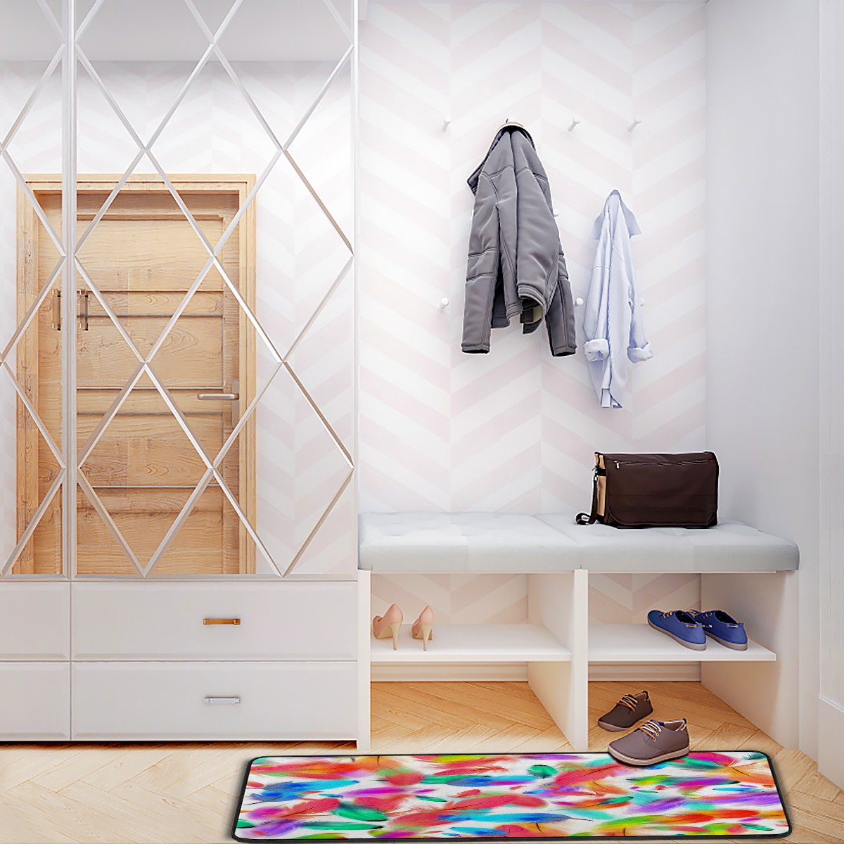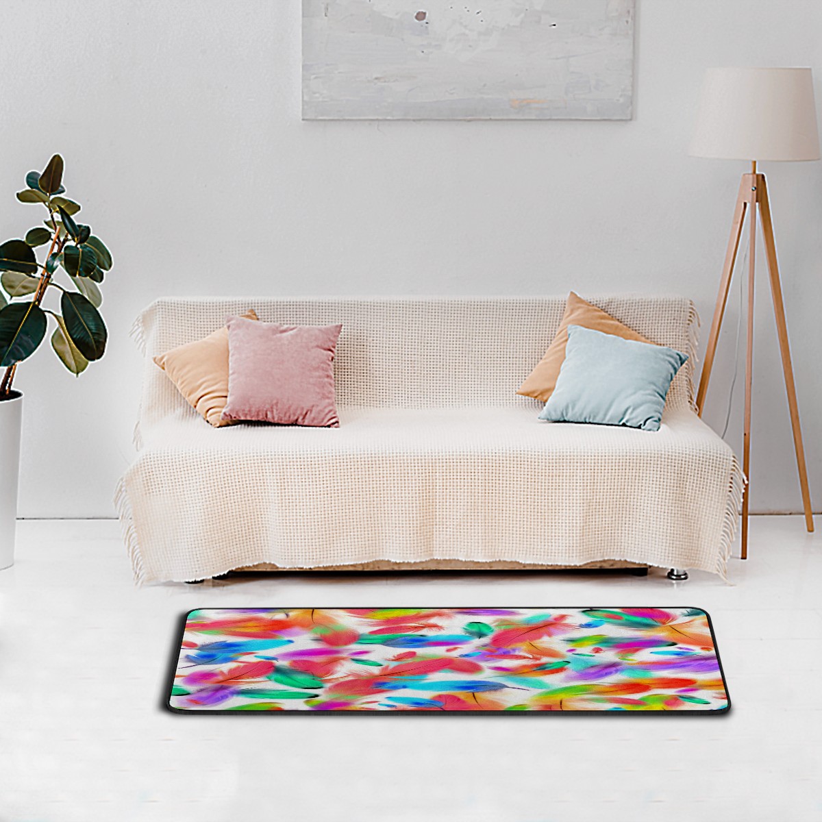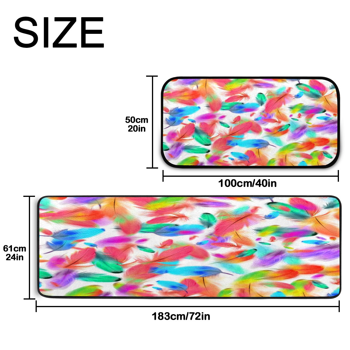Kitchen Rugs Runner Colorful Feathers Pink Blue Green Pattern Comfort Floor Mat Bath Mats Bed Desk Bathroom Area Rug Long Doormat Carpet Home Hotel