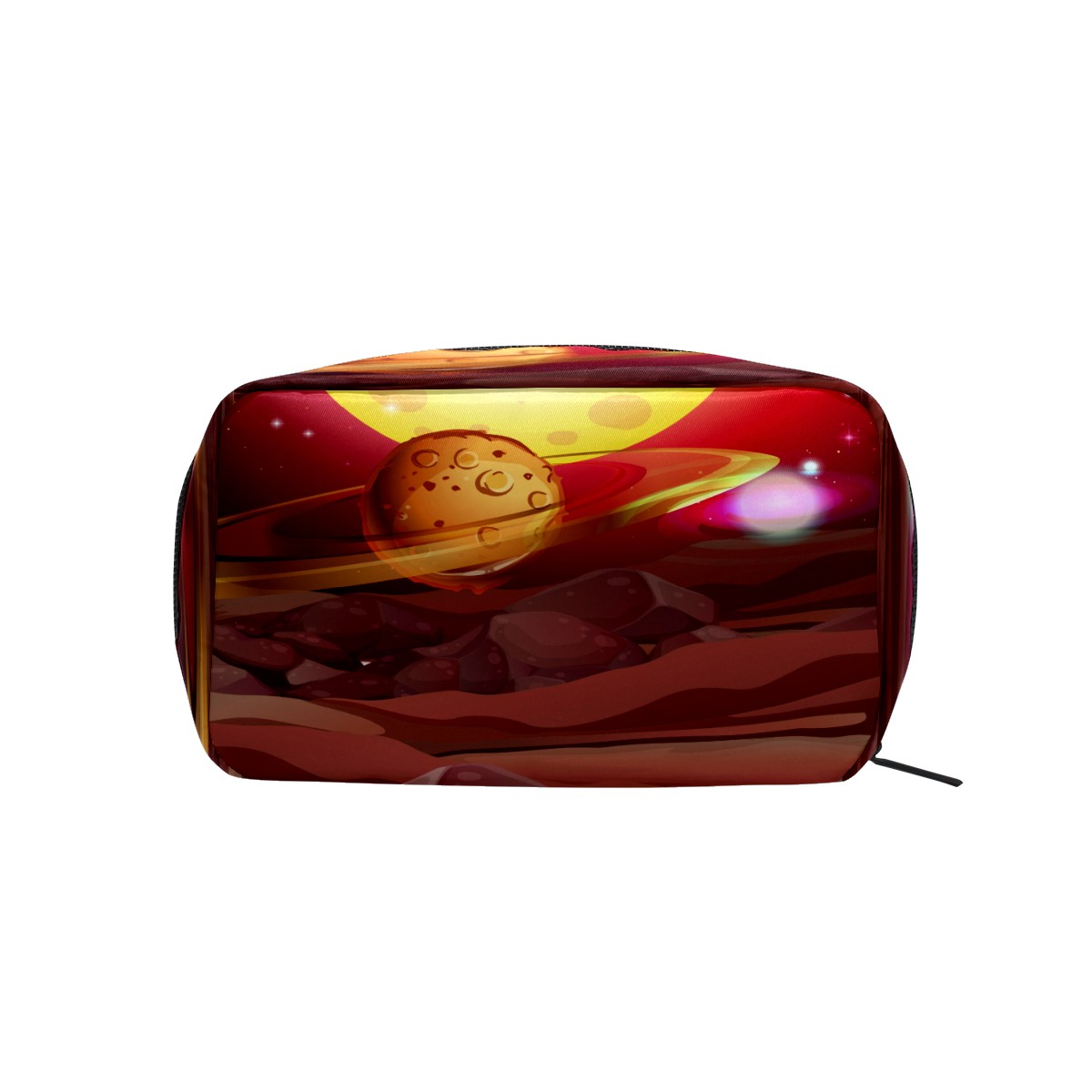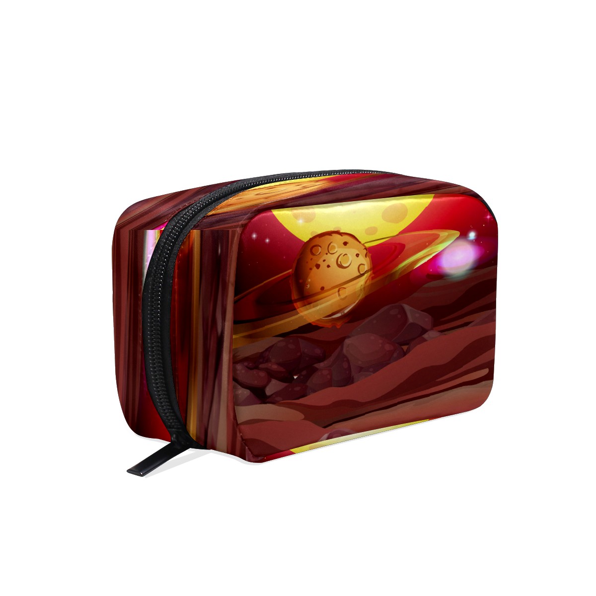 Cosmetic Bag for Women Girls Trave Makeup Bag Toiletry Case Pouch Accessories Organizer Galaxy Planet With Ring