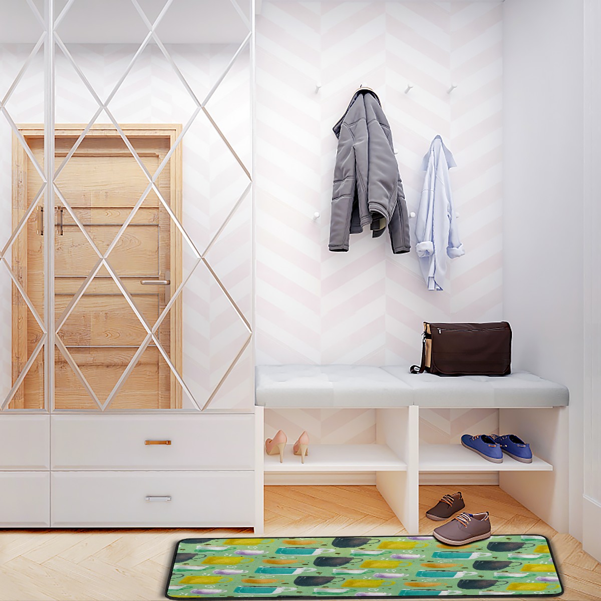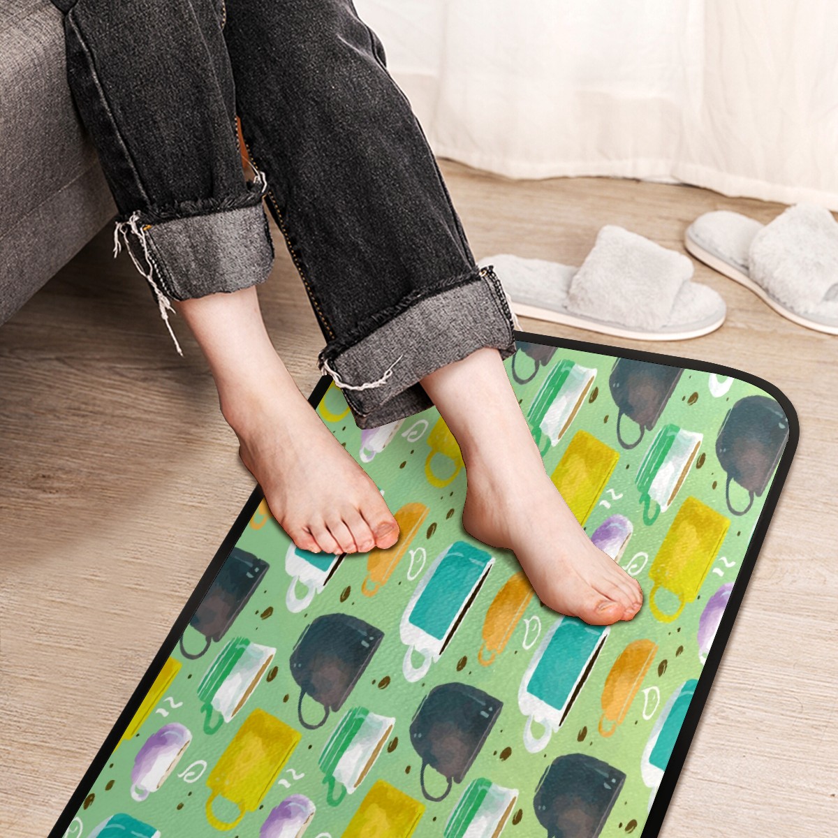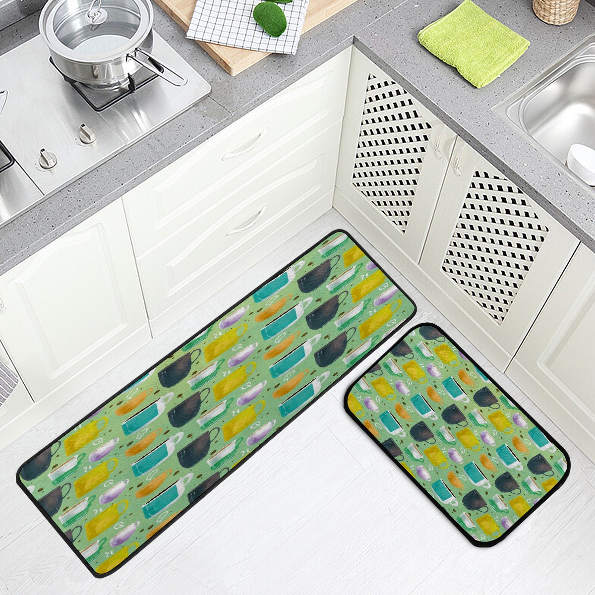 Kitchen Rugs Runner Colorful Coffee Mugs Yellow Purple Green Comfort Floor Mat Bath Mats Bed Desk Bathroom Area Rug Long Doormat Carpet Home Hotel