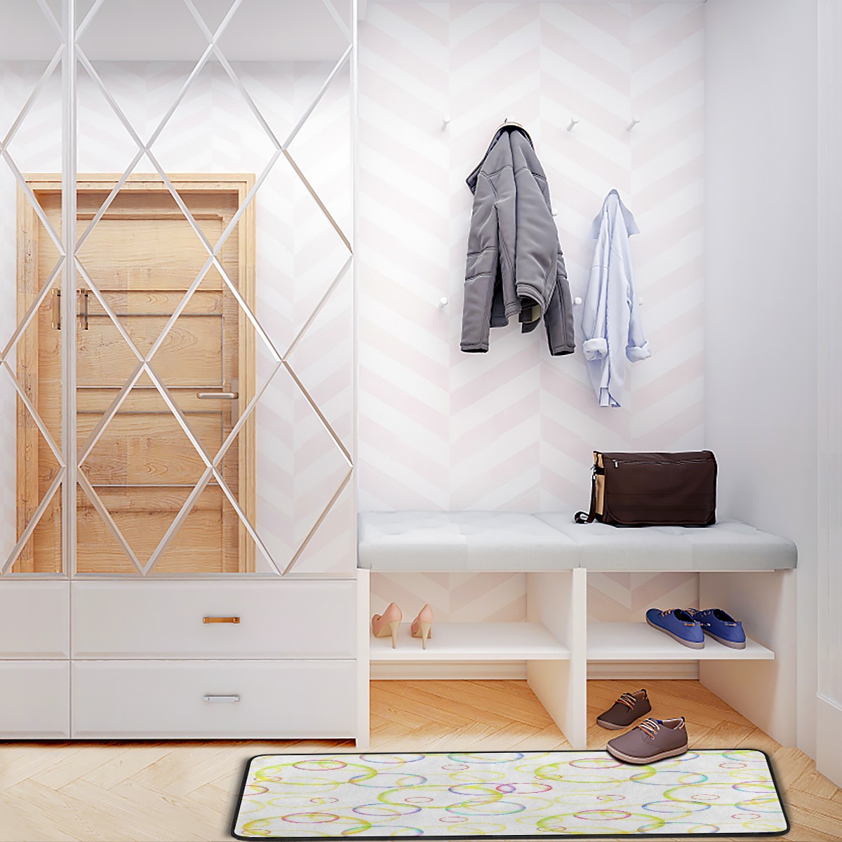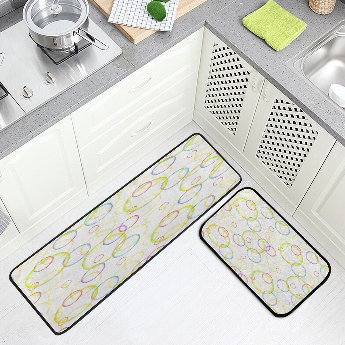 Kitchen Rugs Runner Circle Pattern Bubbles Yellow Purple Comfort Floor Mat Bath Mats Bed Desk Bathroom Area Rug Long Doormat Carpet Home Hotel
