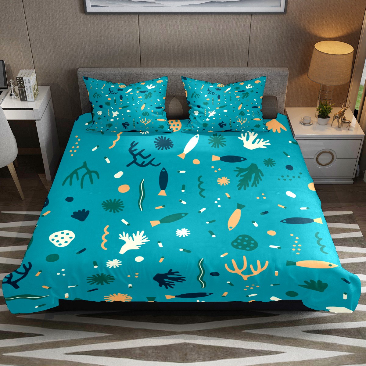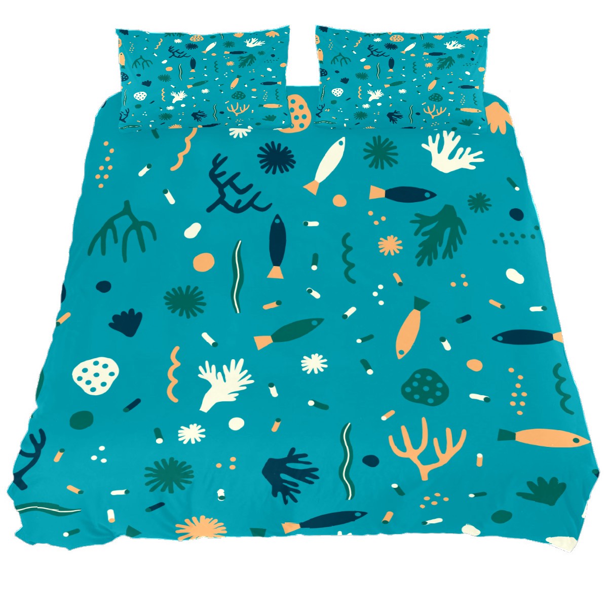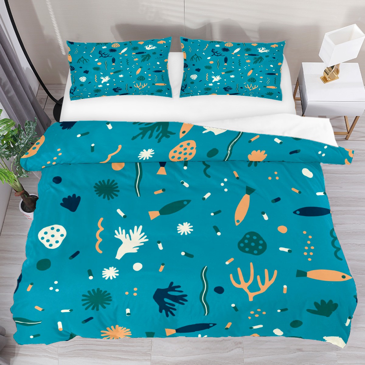 Duvet Cover Twin Ocean Fish Seaweed 3pcs Bedding Duvet Cover Set Modern Quilt Cover Microfiber Comforter Cover with Button Closure with 2 Pillow Cases 1 Duvet Cover