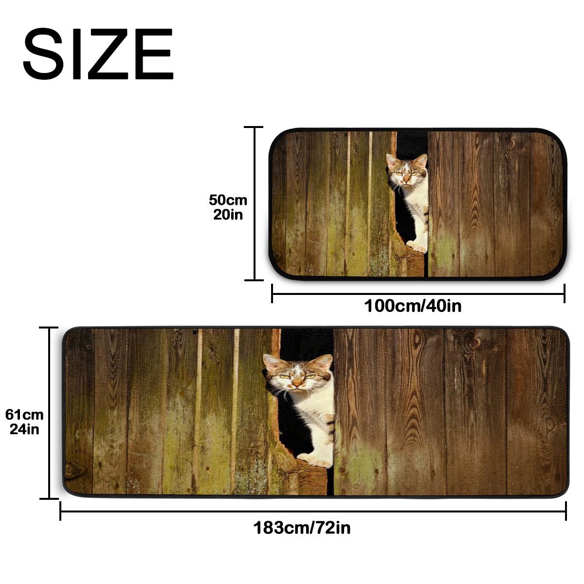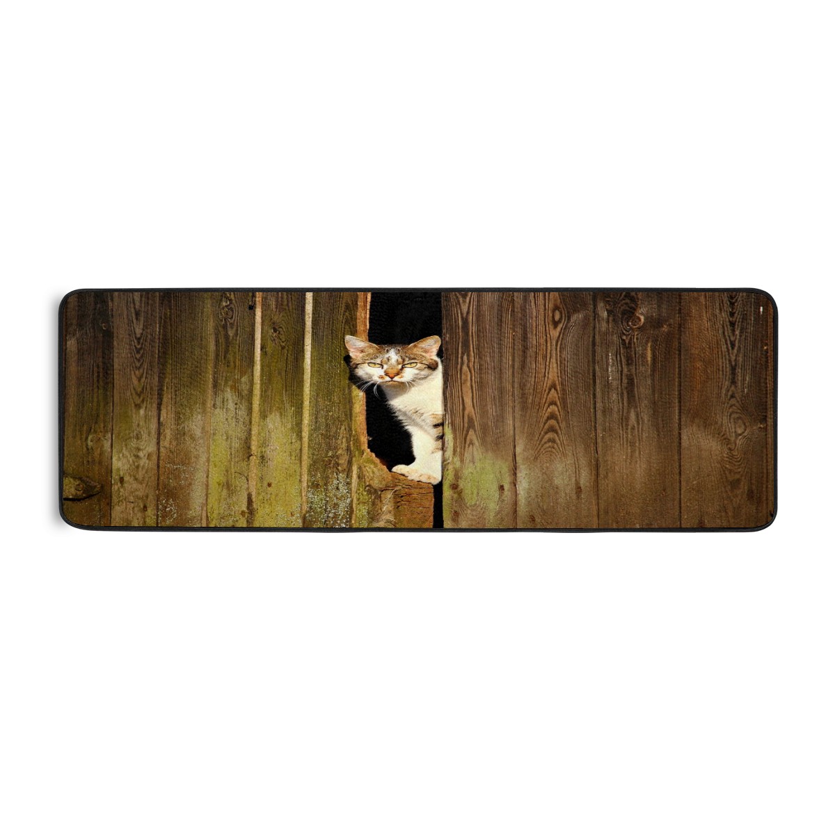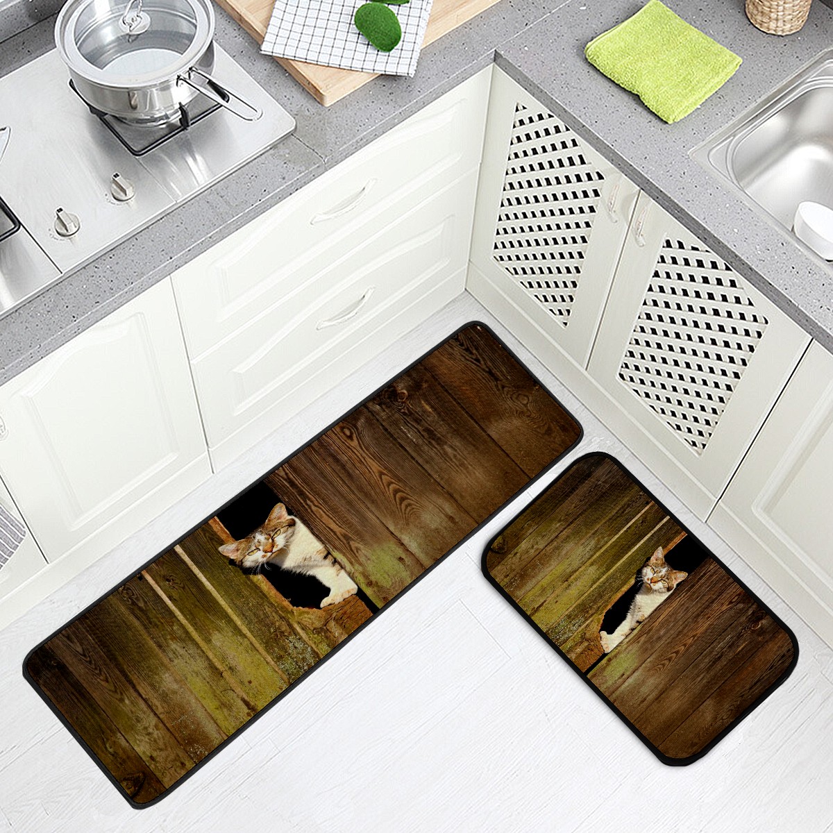 Kitchen Rugs Runner Cat Kitten Pet Roral Wood Board Rustic Comfort Floor Mat Bath Mats Bed Desk Bathroom Area Rug Long Doormat Carpet Home Hotel