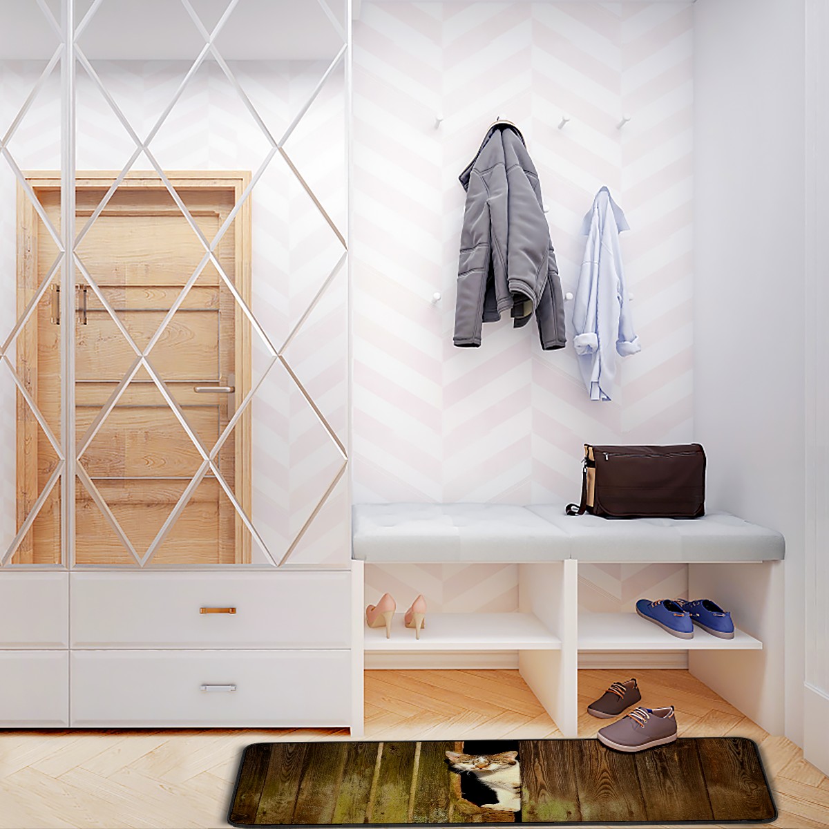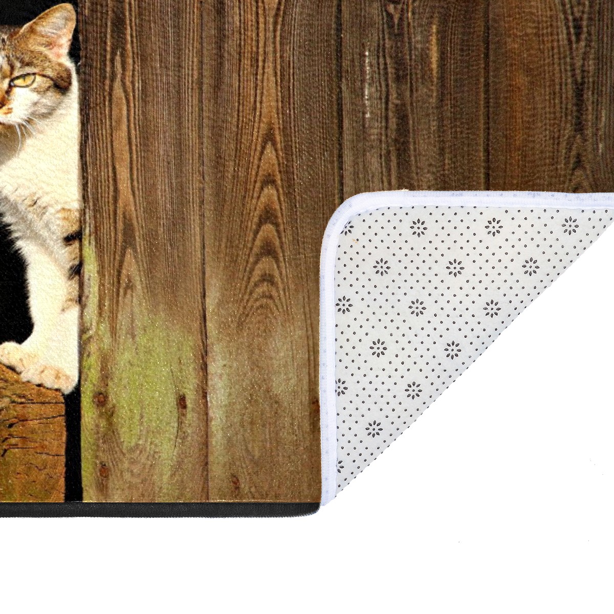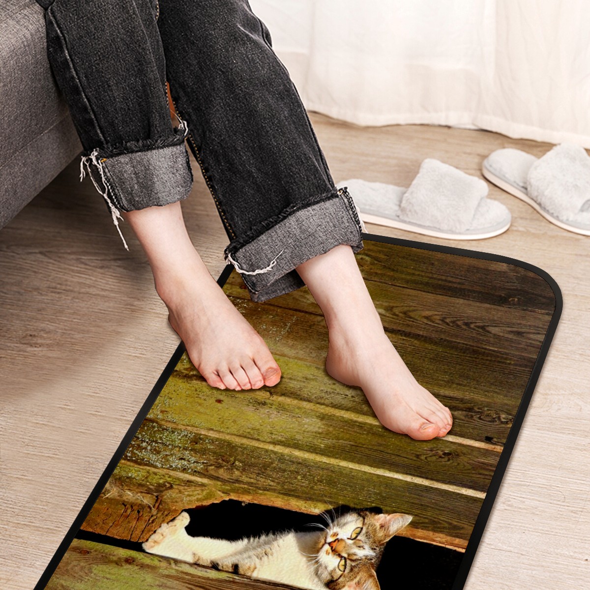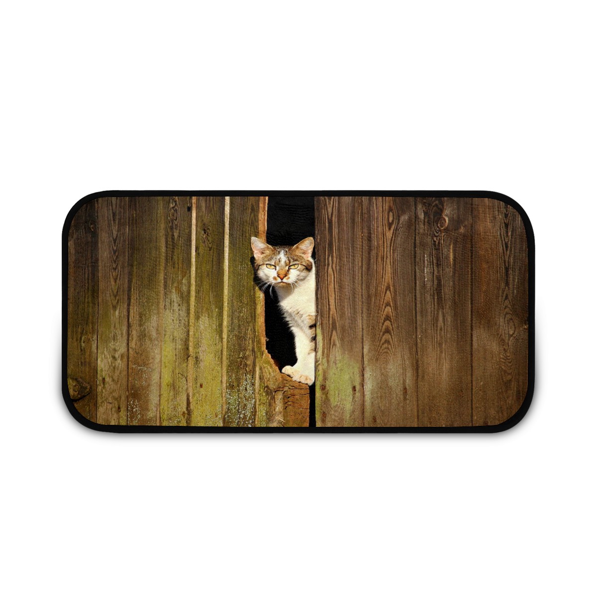Kitchen Rugs Runner Cat Kitten Pet Roral Wood Board Rustic Comfort Floor Mat Bath Mats Bed Desk Bathroom Area Rug Long Doormat Carpet Home Hotel