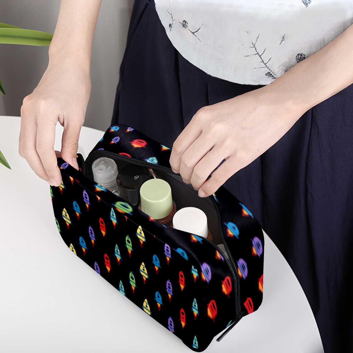 Cosmetic Bag for Women Girls Trave Makeup Bag Toiletry Case Pouch Accessories Organizer Galaxy Colorful Spaceships Rockets Pattern