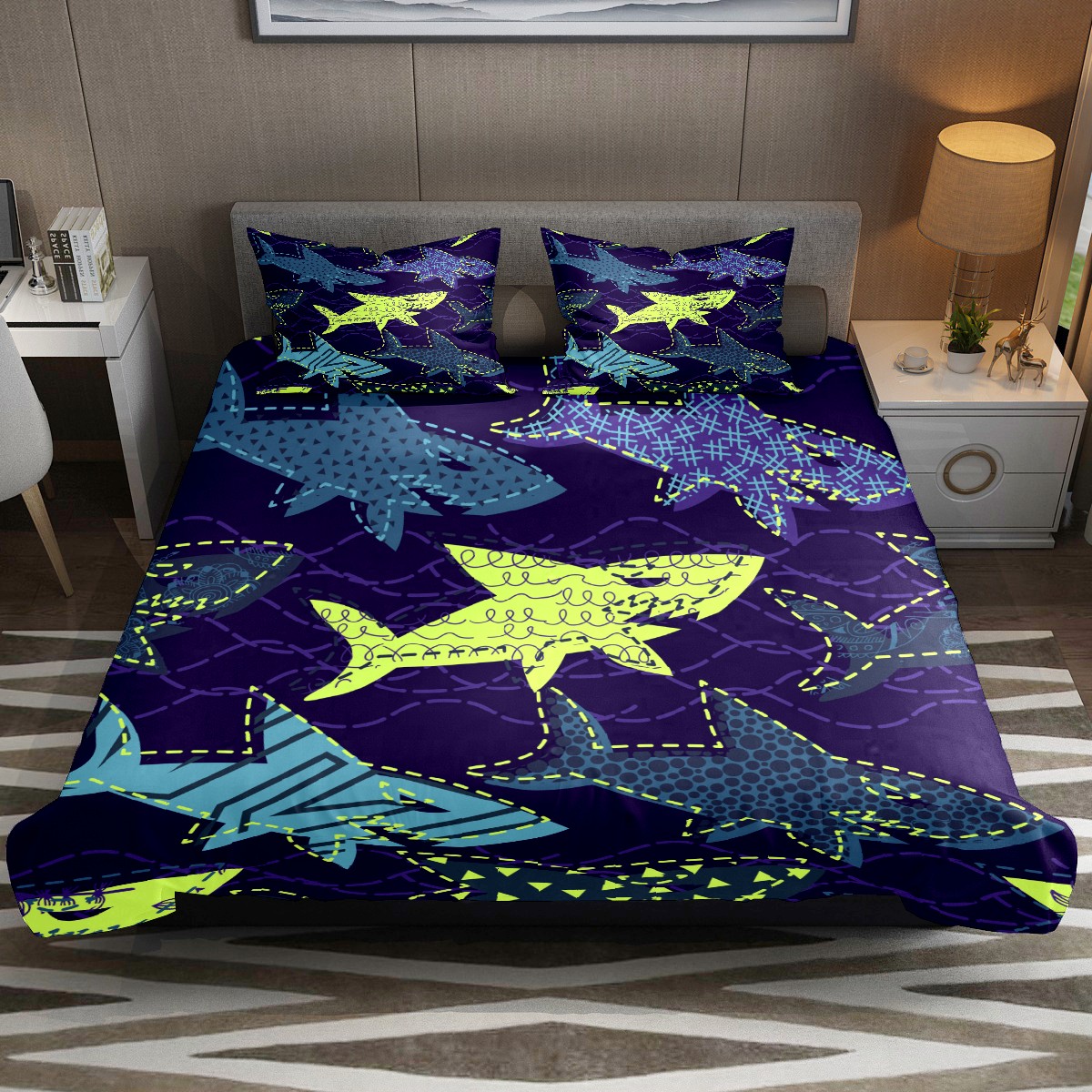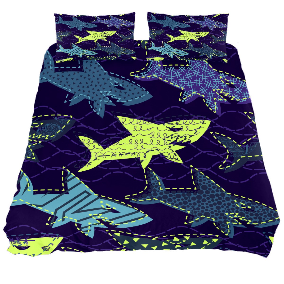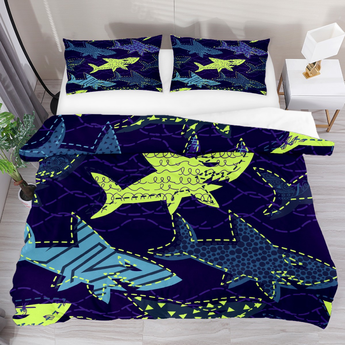 Duvet Cover Twin Ocean Fish Sealife Shark 3pcs Bedding Duvet Cover Set Modern Quilt Cover Microfiber Comforter Cover with Button Closure with 2 Pillow Cases 1 Duvet Cover