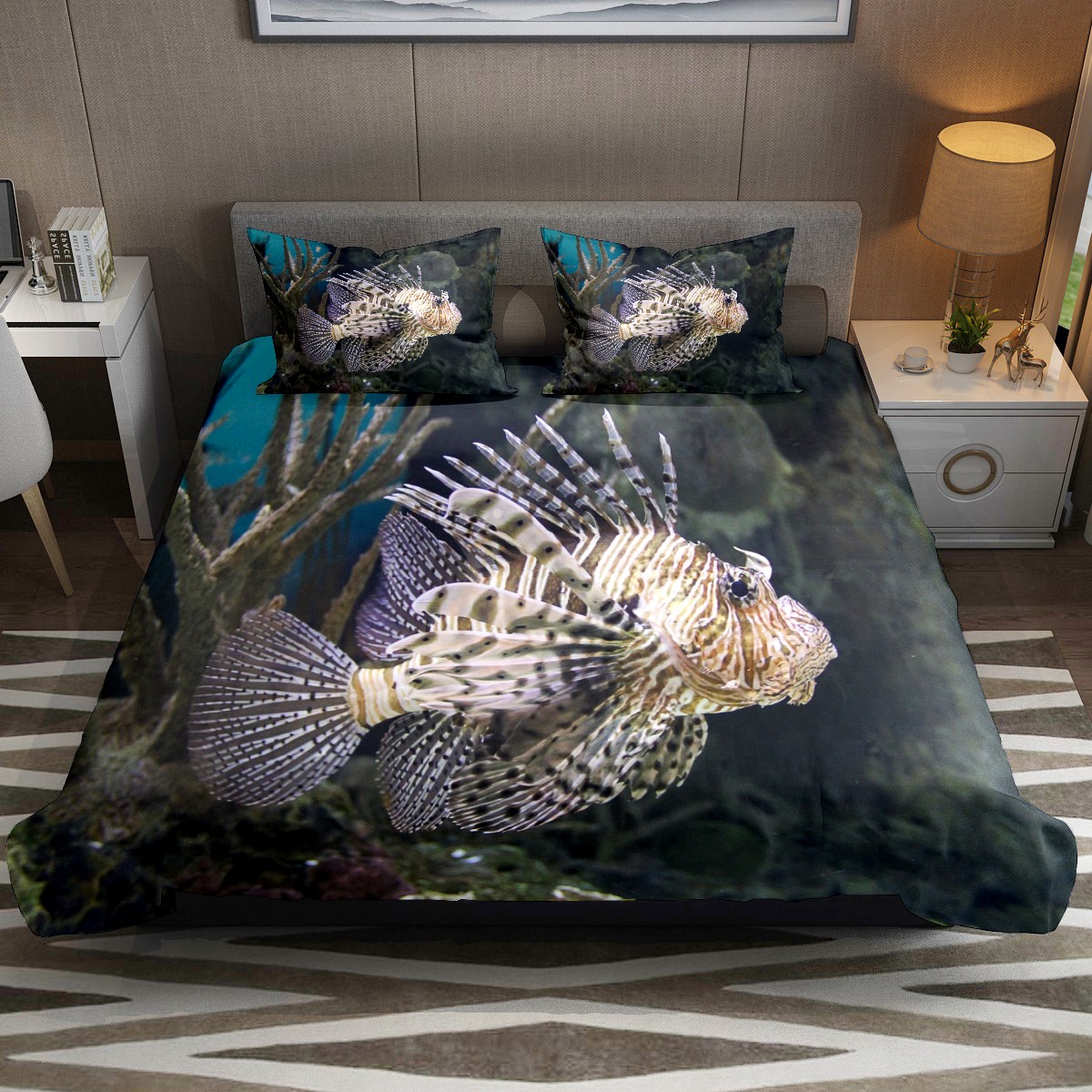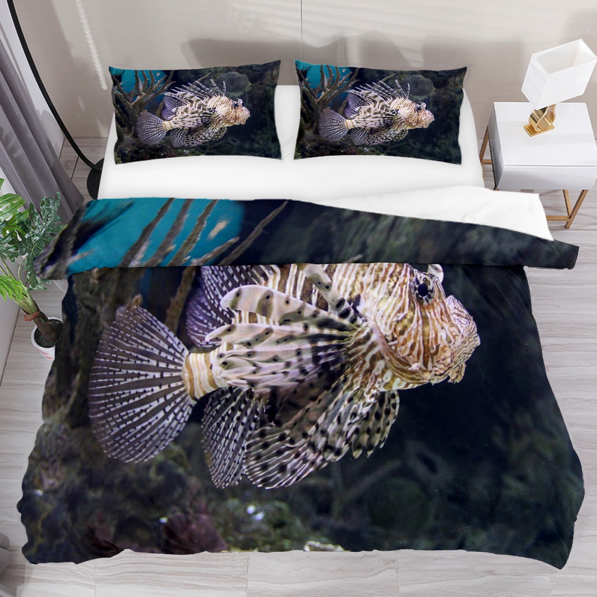 Duvet Cover Twin Ocean Fish Pterois 3pcs Bedding Duvet Cover Set Modern Quilt Cover Microfiber Comforter Cover with Button Closure with 2 Pillow Cases 1 Duvet Cover