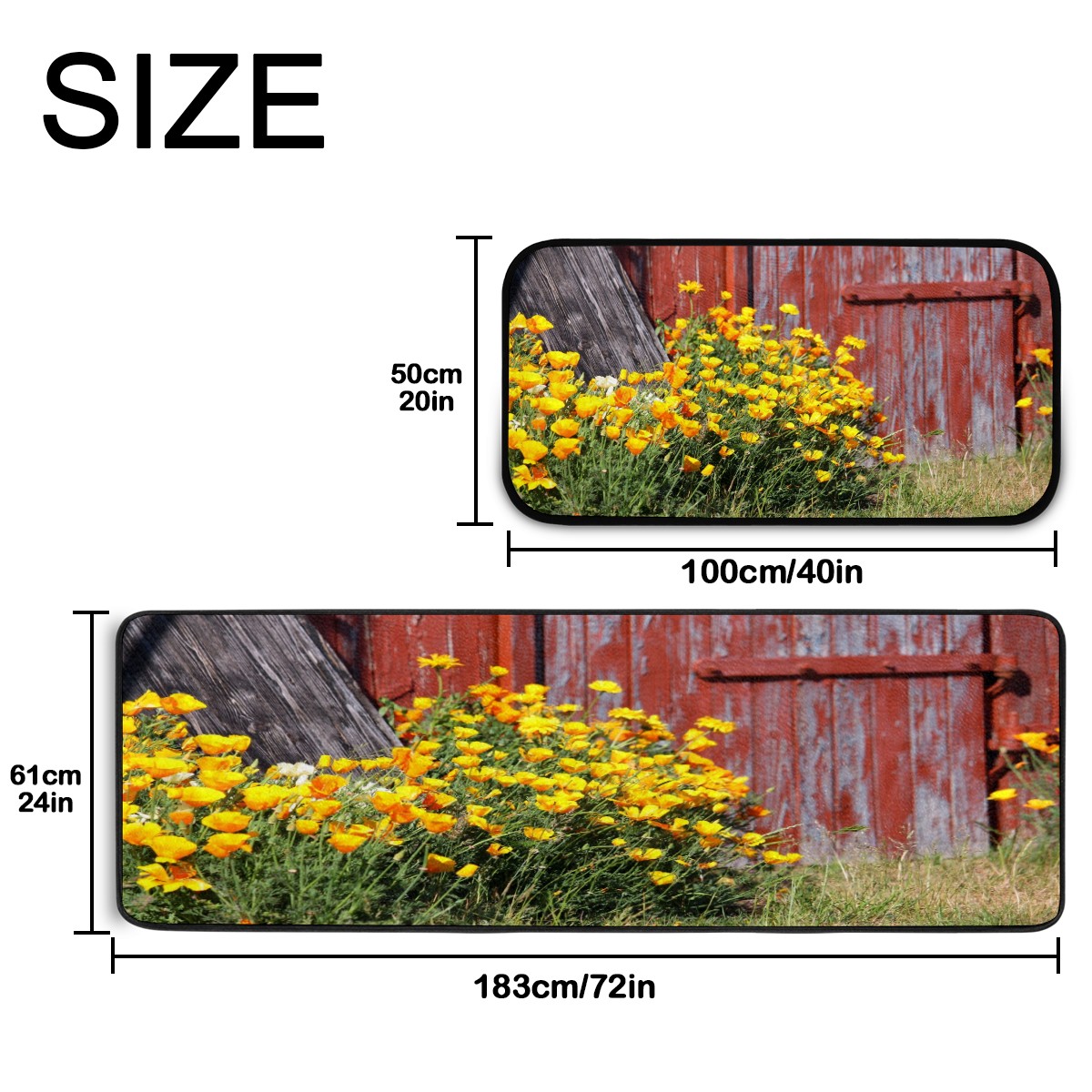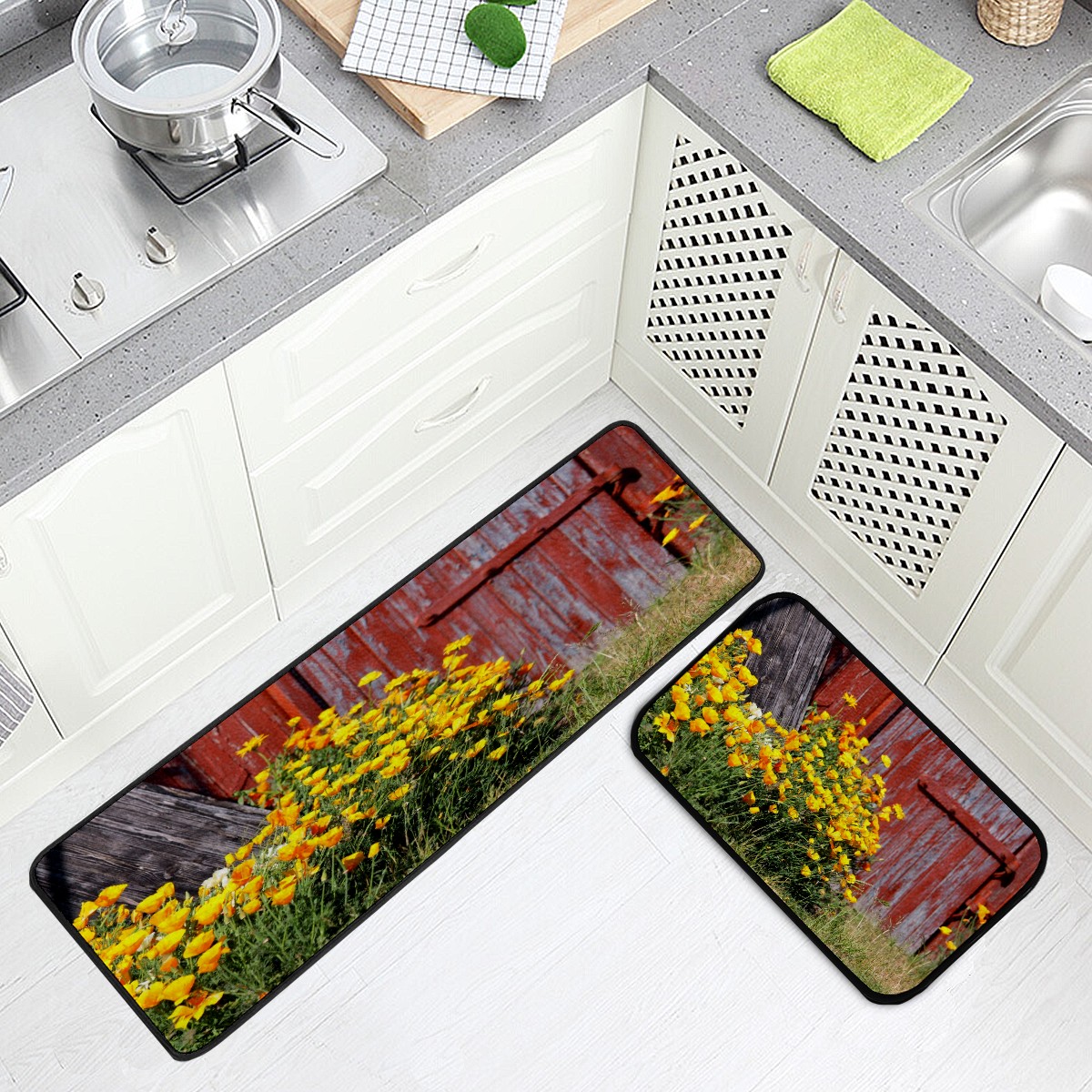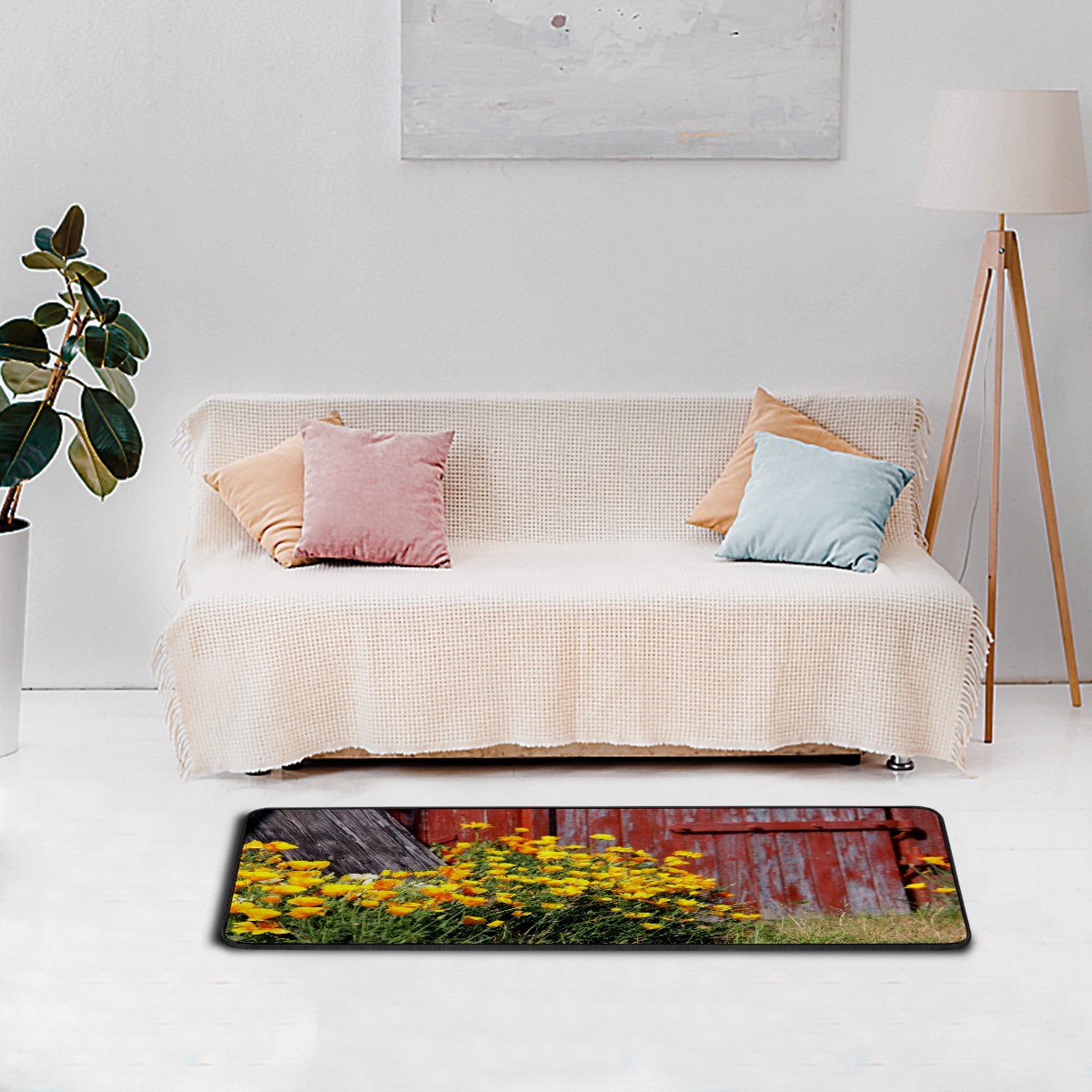 Kitchen Rugs Runner Barn Old Door Wood Cabin Yellow Floral Comfort Floor Mat Bath Mats Bed Desk Bathroom Area Rug Long Doormat Carpet Home Hotel