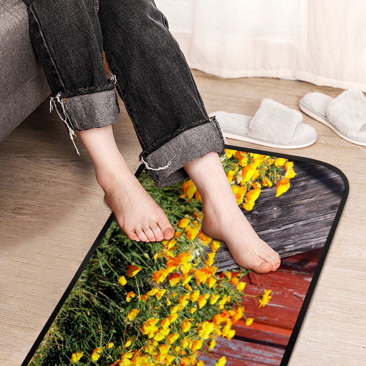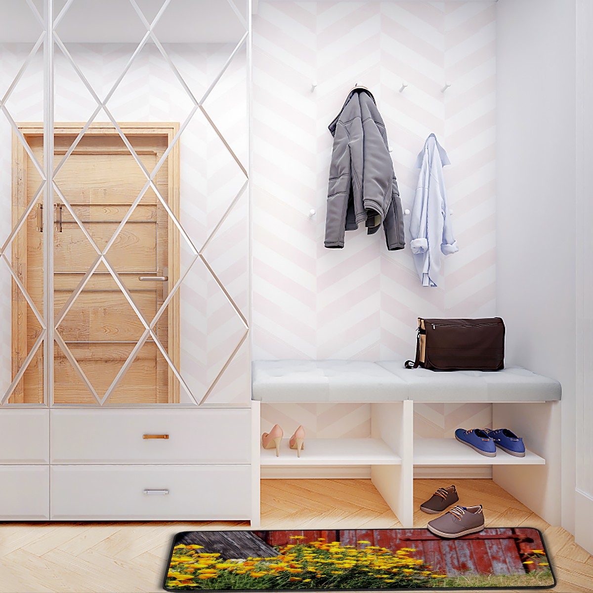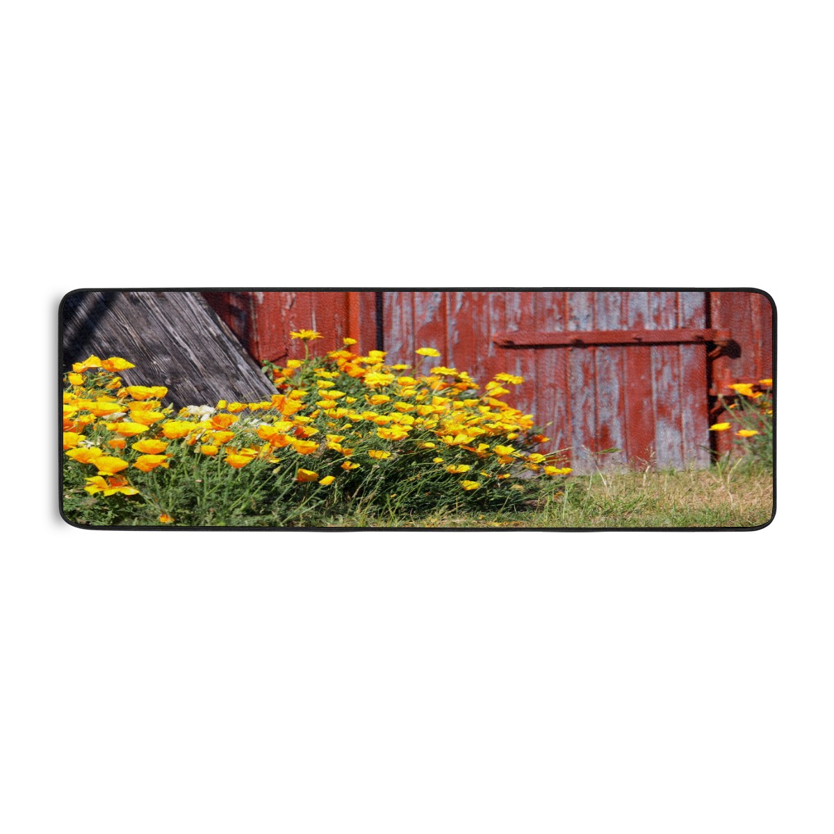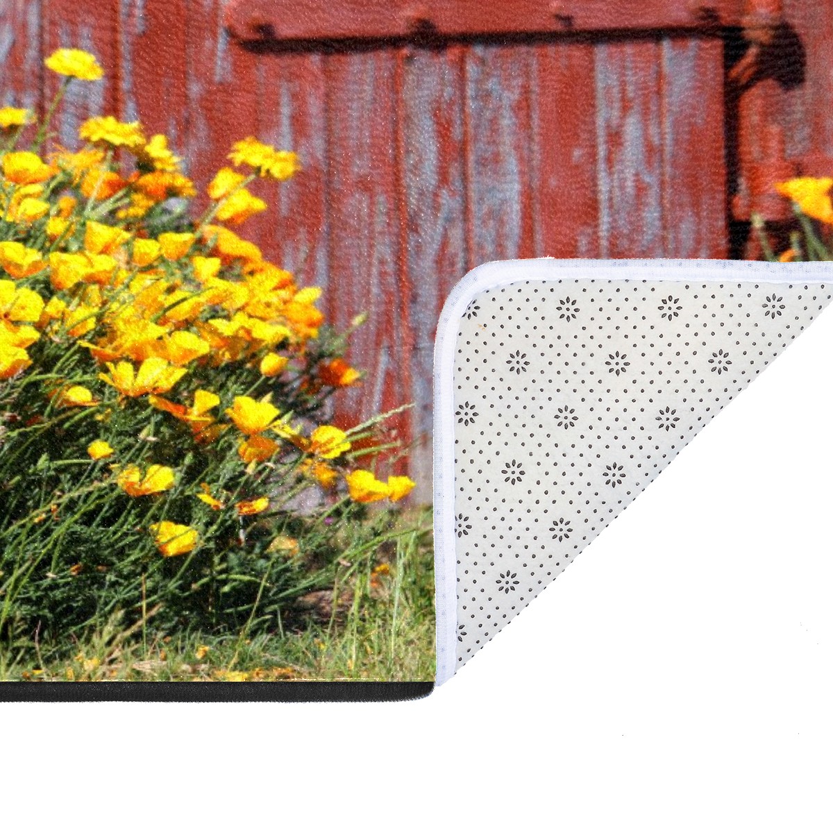 Kitchen Rugs Runner Barn Old Door Wood Cabin Yellow Floral Comfort Floor Mat Bath Mats Bed Desk Bathroom Area Rug Long Doormat Carpet Home Hotel