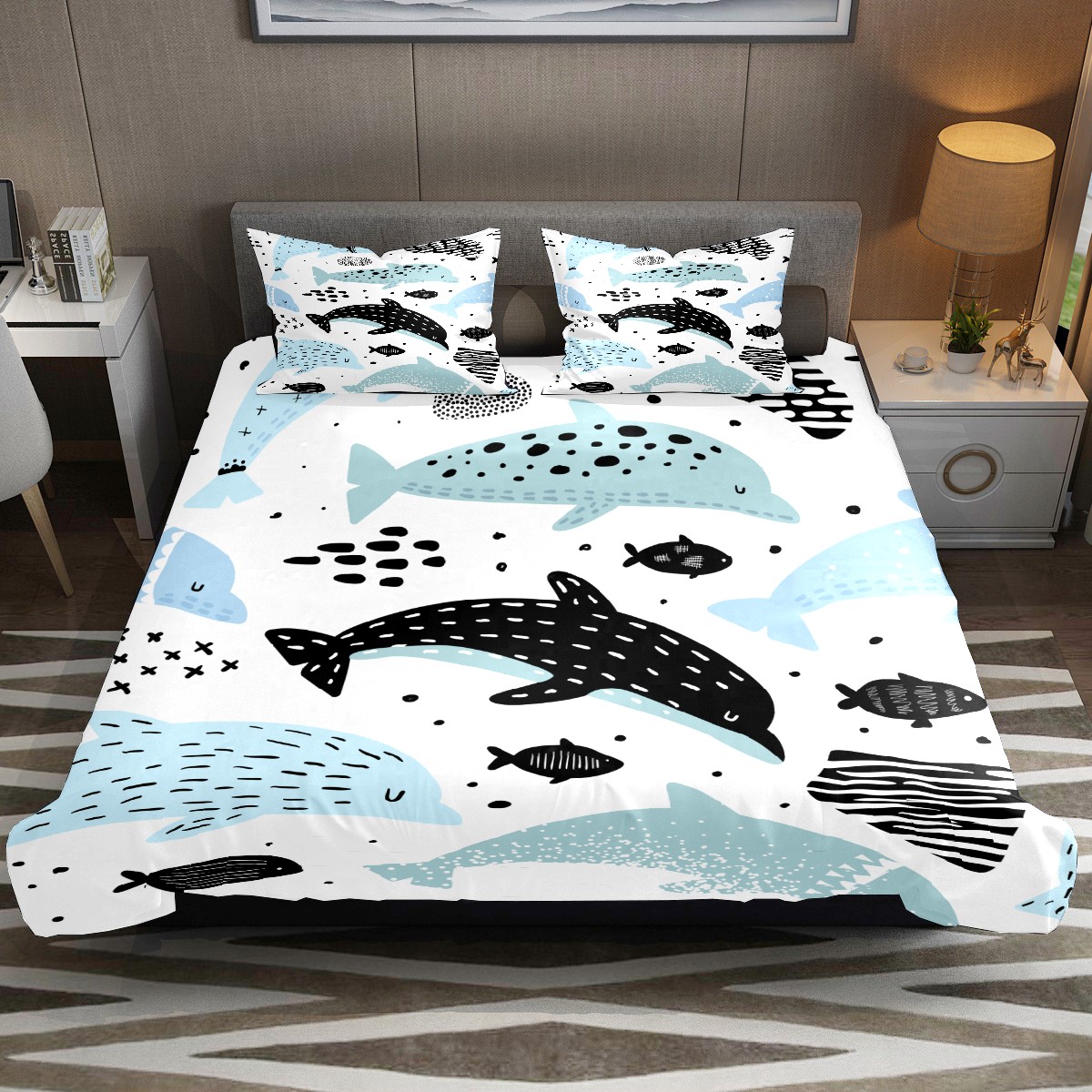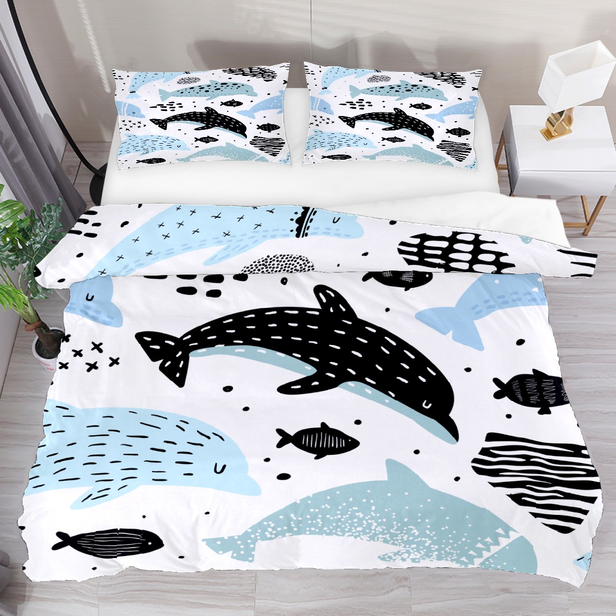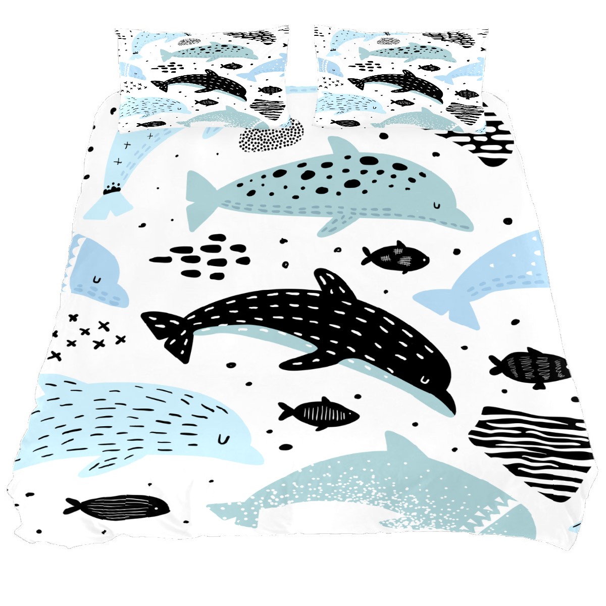 Duvet Cover Twin Ocean Fish Dolphin Fish 3pcs Bedding Duvet Cover Set Modern Quilt Cover Microfiber Comforter Cover with Button Closure with 2 Pillow Cases 1 Duvet Cover