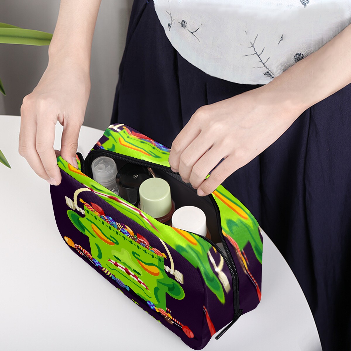 Cosmetic Bag for Women Girls Trave Makeup Bag Toiletry Case Pouch Accessories Organizer Funny Science Monster With Candy Trick