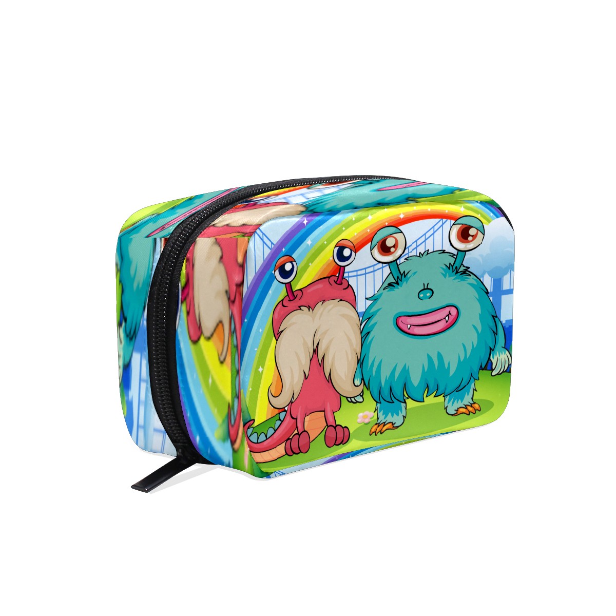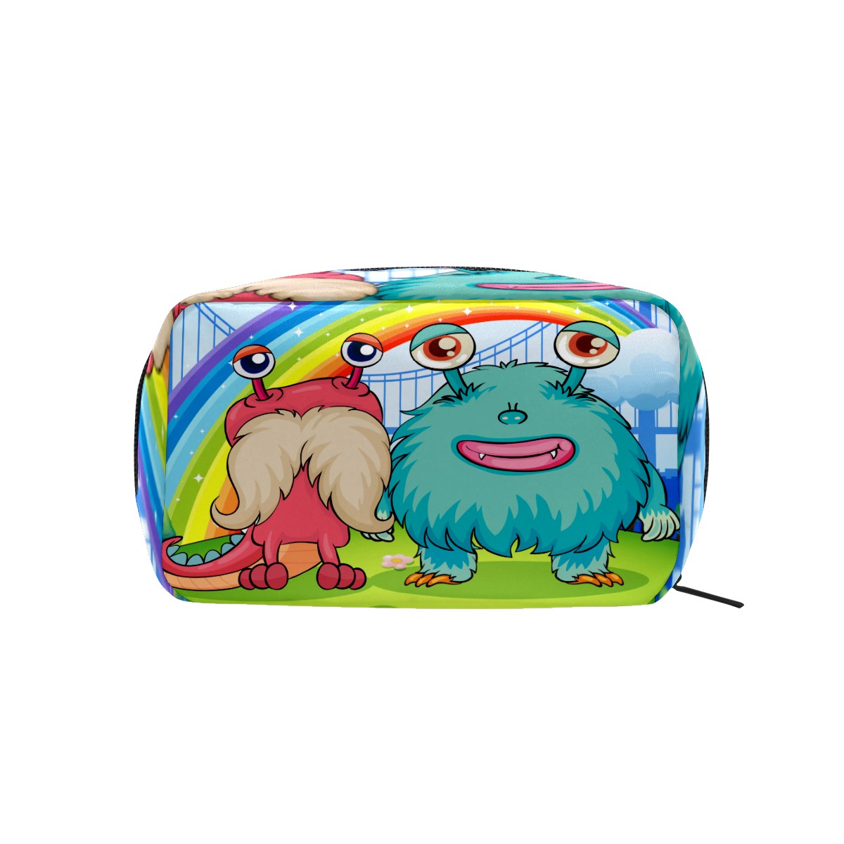 Cosmetic Bag for Women Girls Trave Makeup Bag Toiletry Case Pouch Accessories Organizer Funny Cute Cartoon Monster With Rainbow
