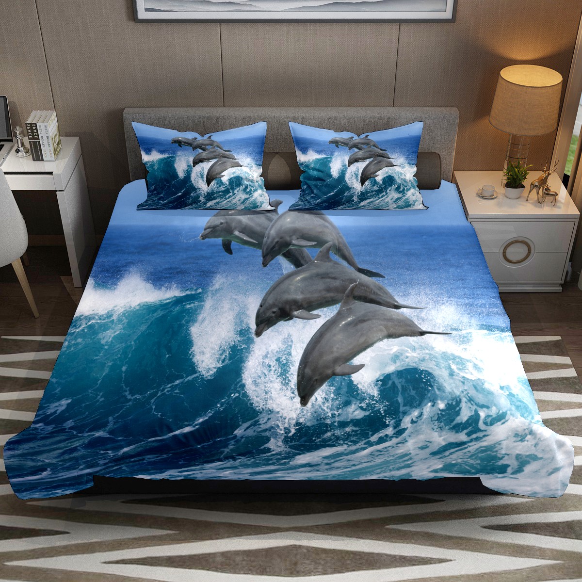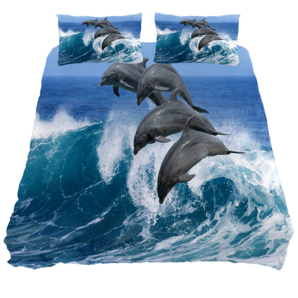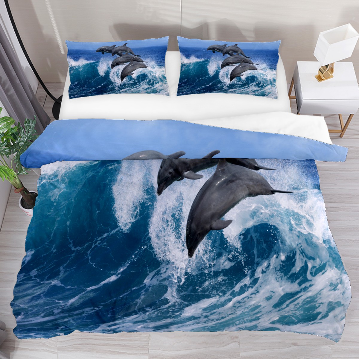Duvet Cover Twin Ocean Dolphins 3pcs Bedding Duvet Cover Set Modern Quilt Cover Microfiber Comforter Cover with Button Closure with 2 Pillow Cases 1 Duvet Cover