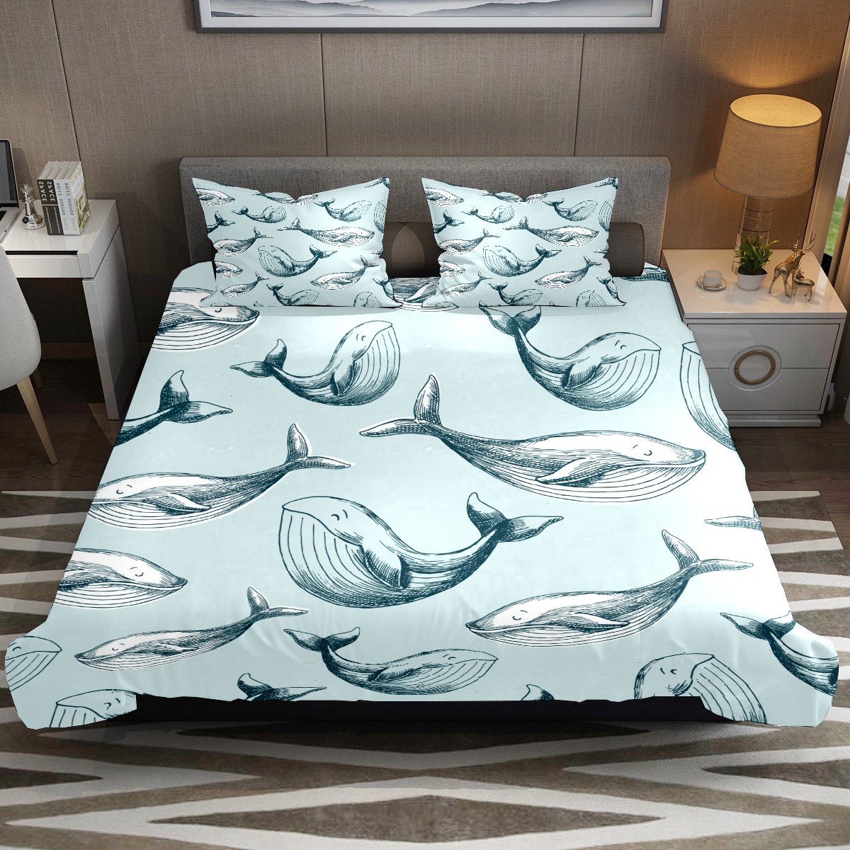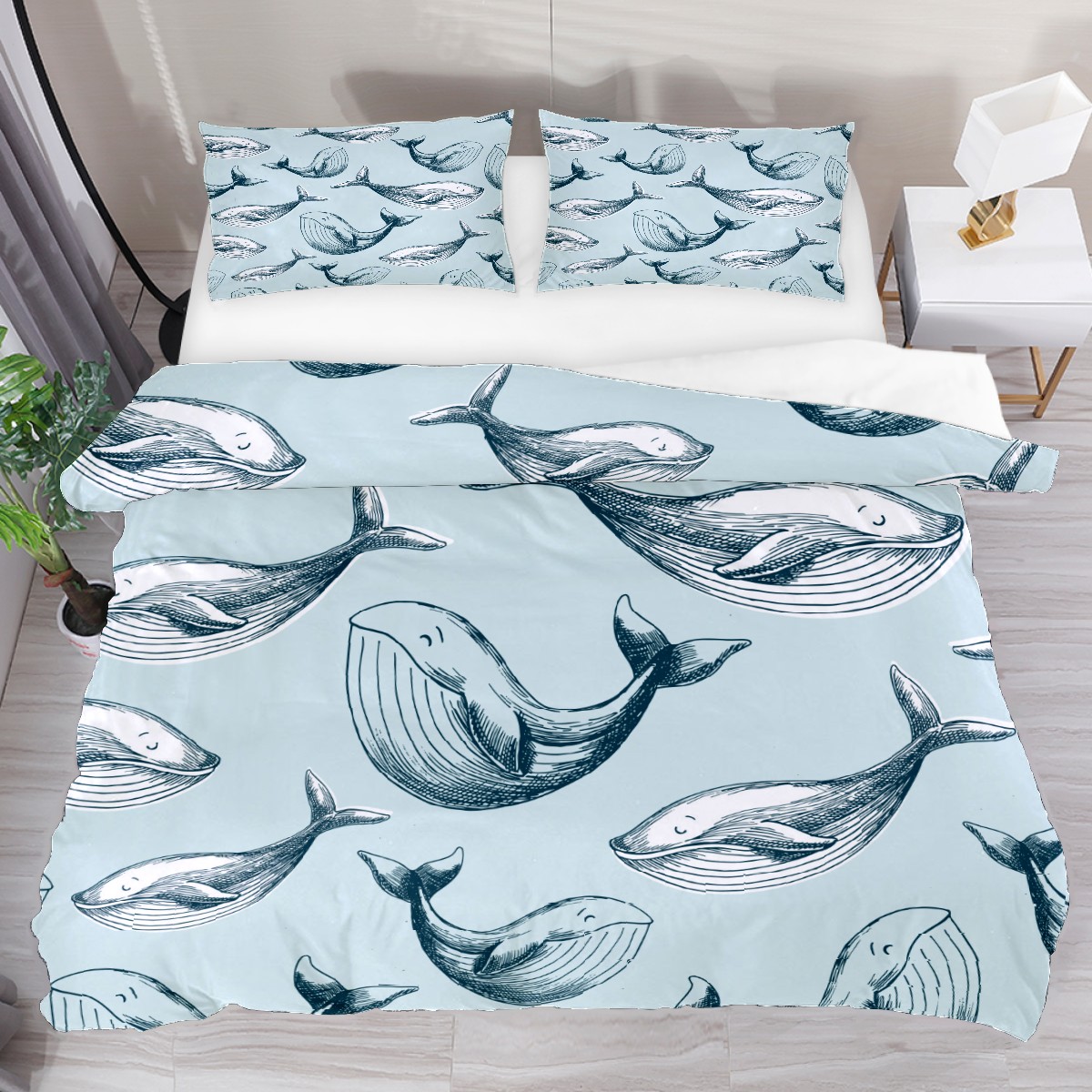 Duvet Cover Twin Ocean Dolphin Fish 3pcs Bedding Duvet Cover Set Modern Quilt Cover Microfiber Comforter Cover with Button Closure with 2 Pillow Cases 1 Duvet Cover