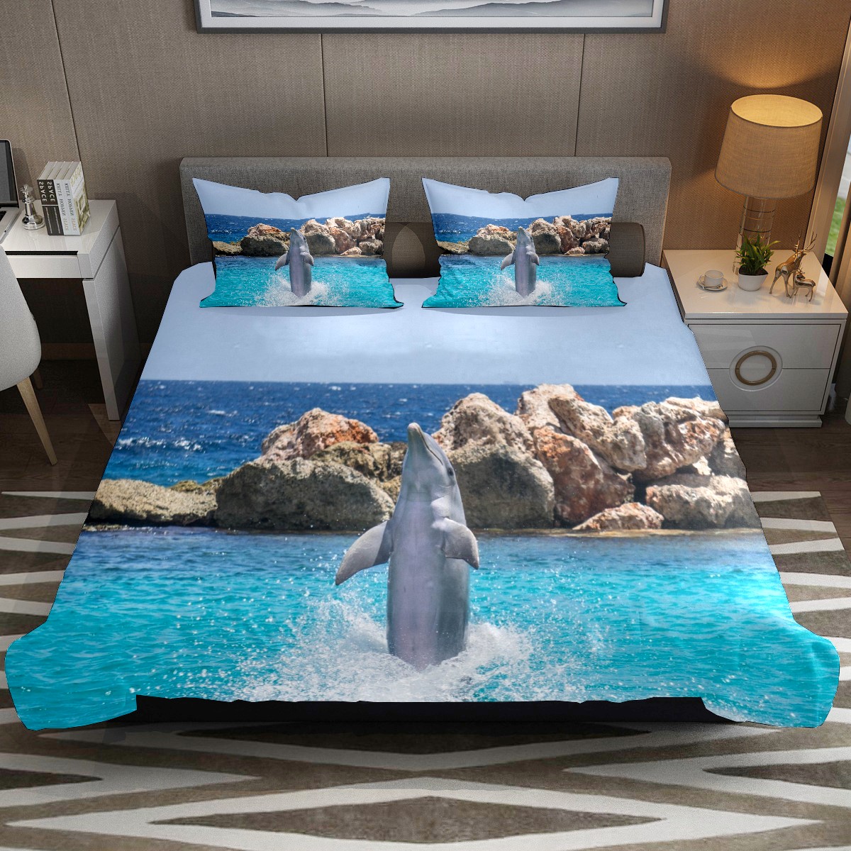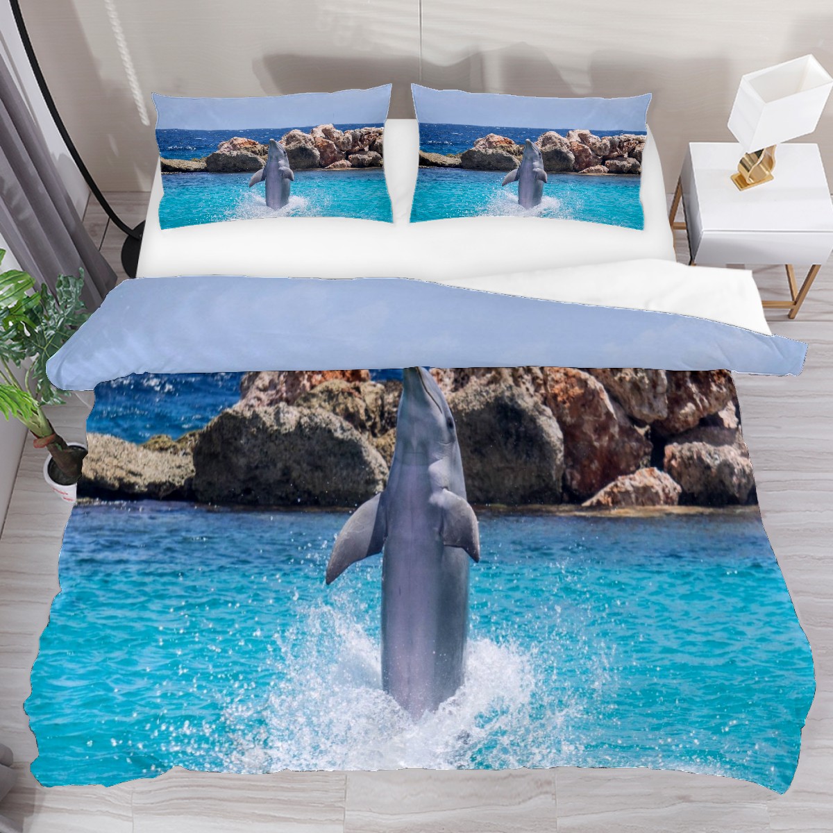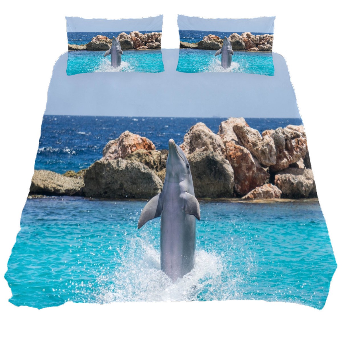 Duvet Cover Twin Ocean Dolphin Jumping Fish 3pcs Bedding Duvet Cover Set Modern Quilt Cover Microfiber Comforter Cover with Button Closure with 2 Pillow Cases 1 Duvet Cover