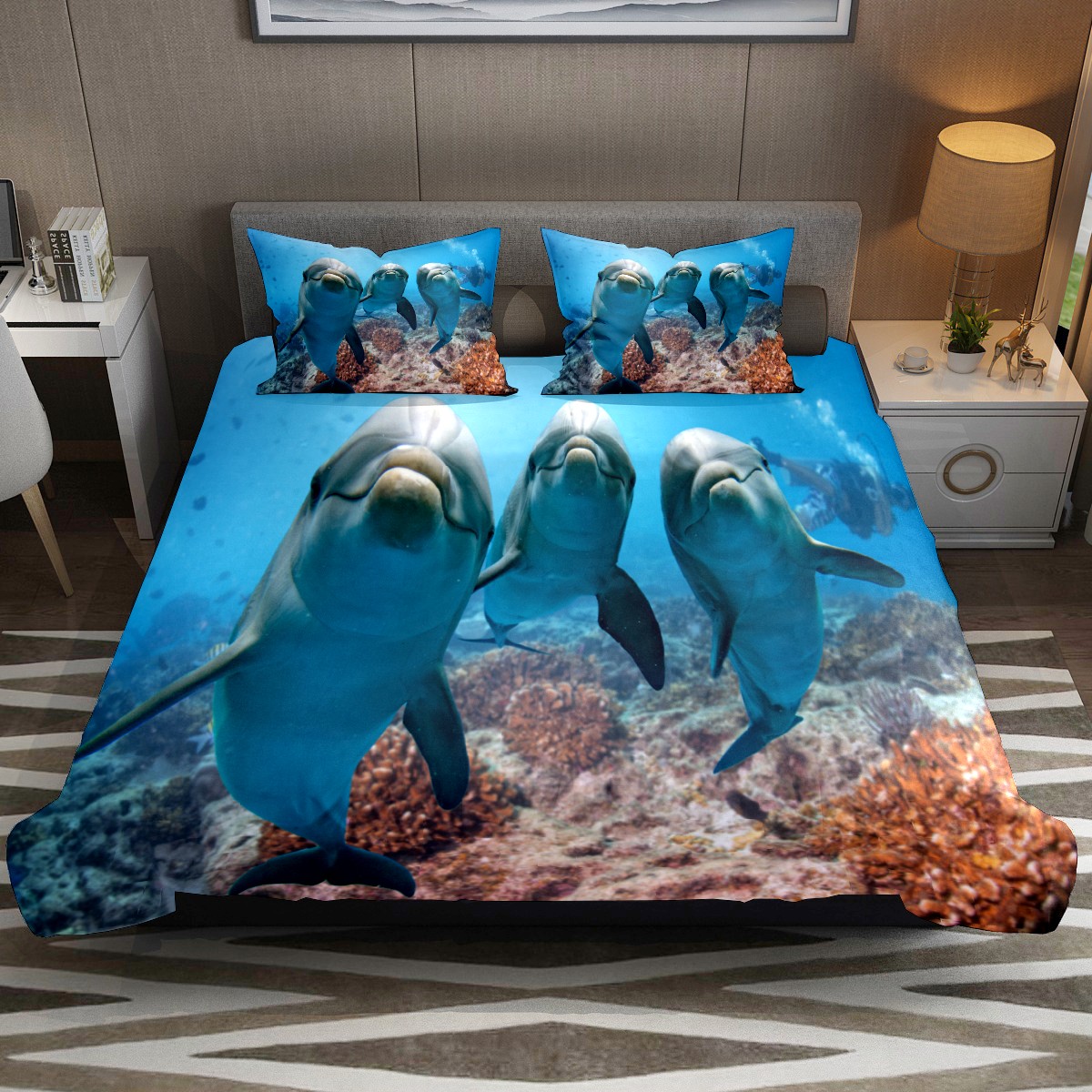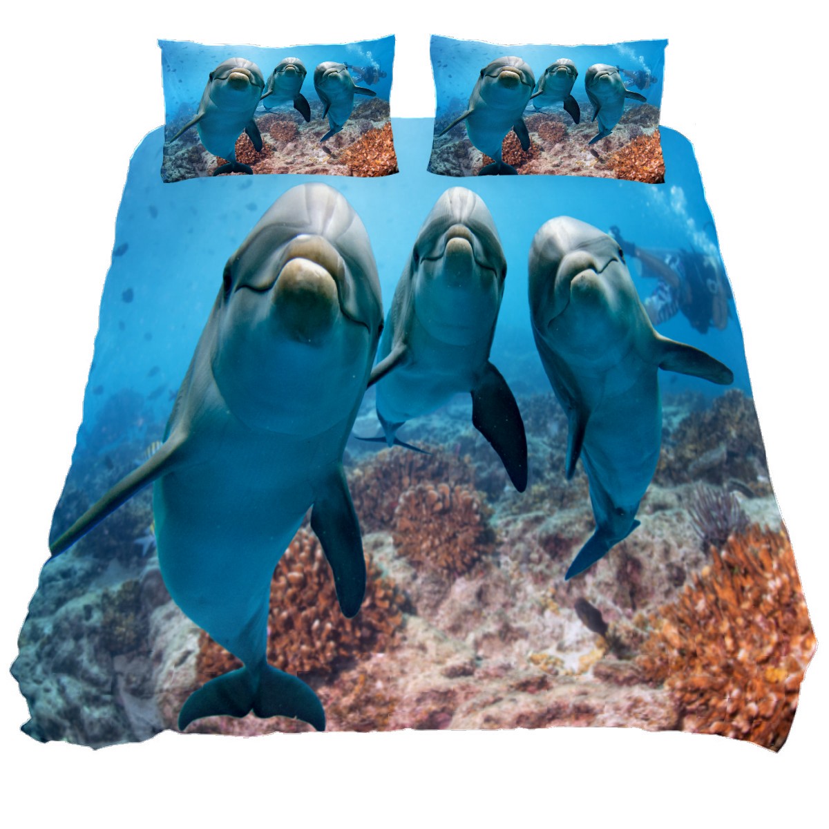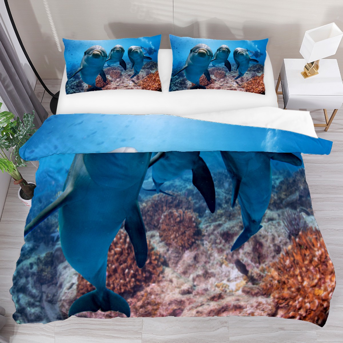 Duvet Cover Twin Ocean Dolphin Cute Fish 3pcs Bedding Duvet Cover Set Modern Quilt Cover Microfiber Comforter Cover with Button Closure with 2 Pillow Cases 1 Duvet Cover