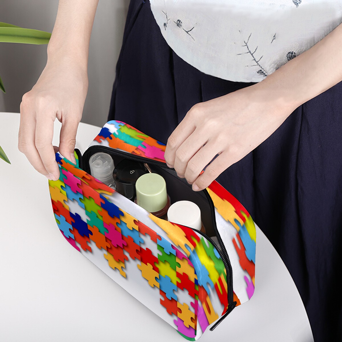 Cosmetic Bag for Women Girls Trave Makeup Bag Toiletry Case Pouch Accessories Organizer Funny Colorful Puzzle Toy Game