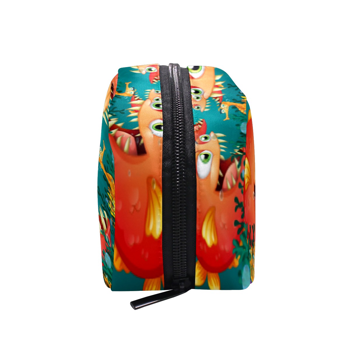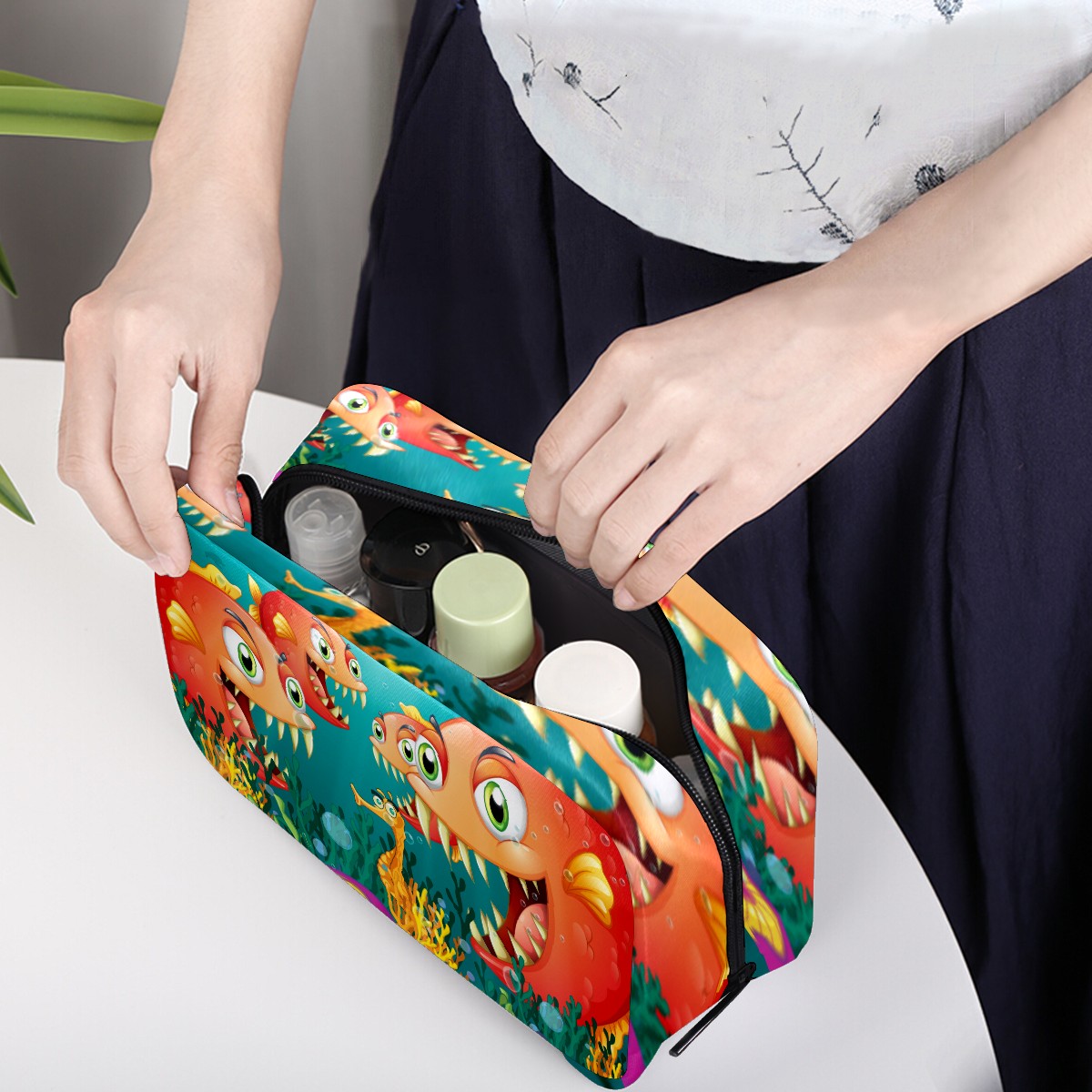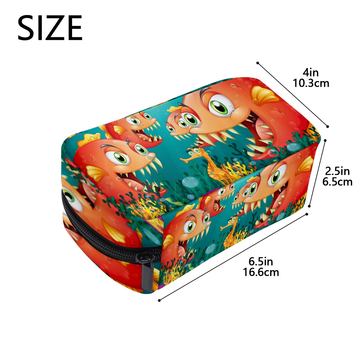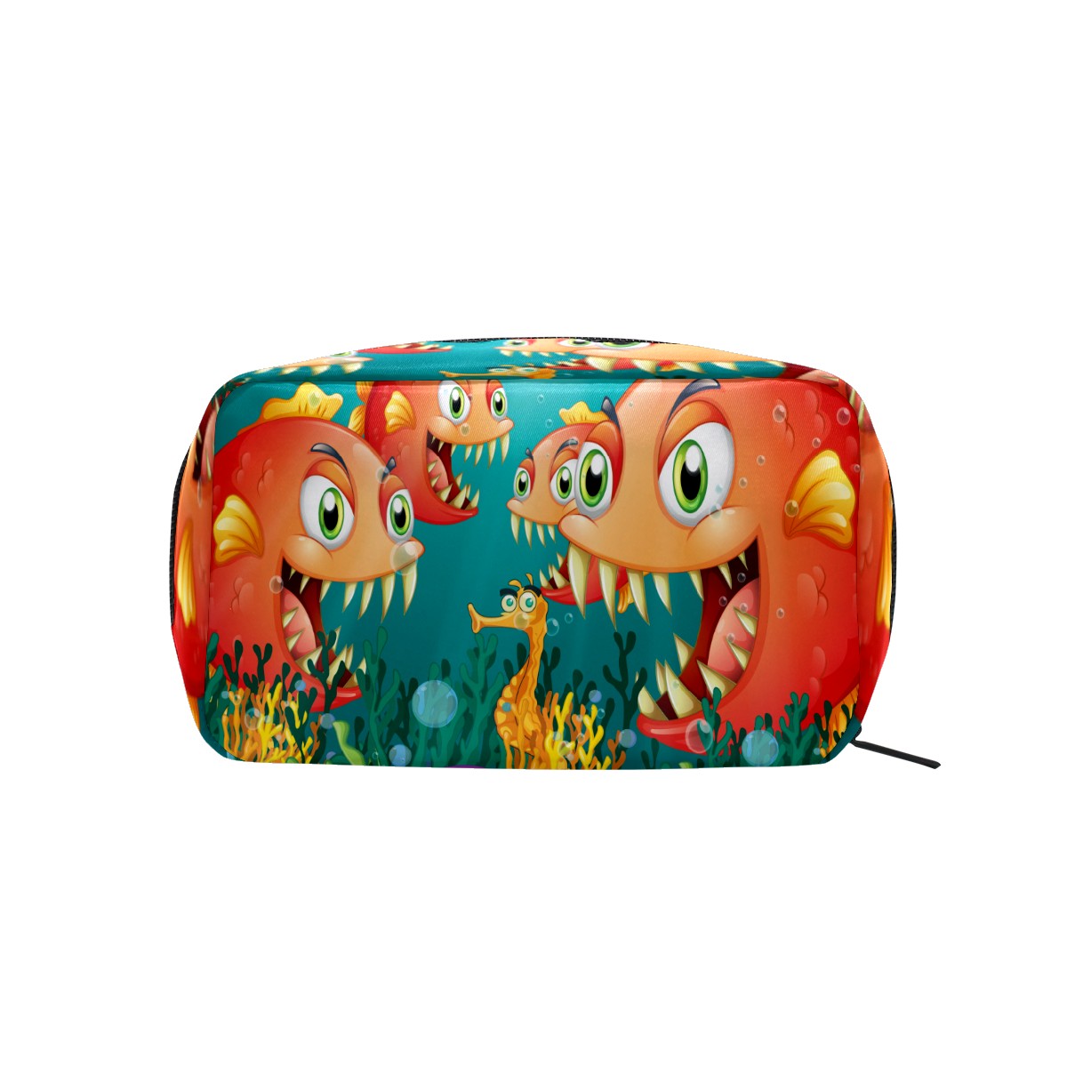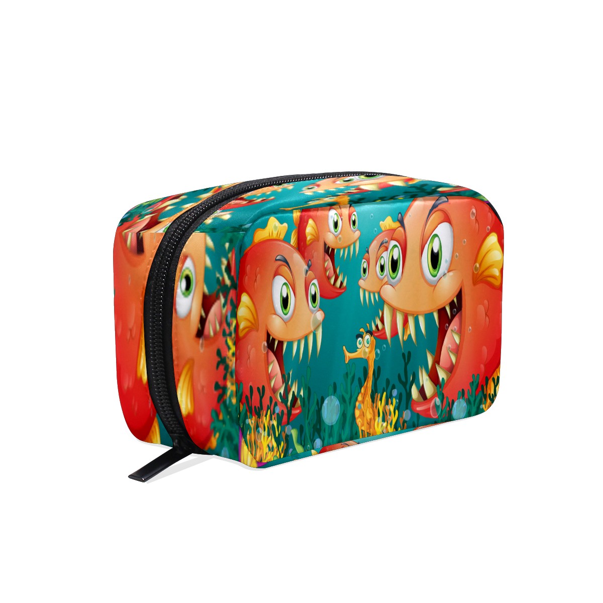 Cosmetic Bag for Women Girls Trave Makeup Bag Toiletry Case Pouch Accessories Organizer Funny Cartoon Seahorse Surrounded By Hungry Piranhas Fish