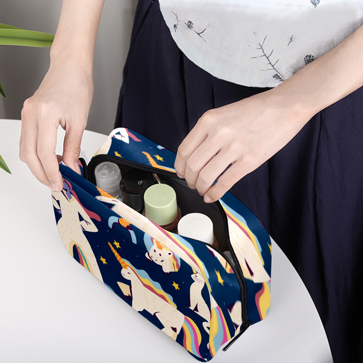Cosmetic Bag for Women Girls Trave Makeup Bag Toiletry Case Pouch Accessories Organizer Funny Cartoon Wannabe Unicorn Cat Horse