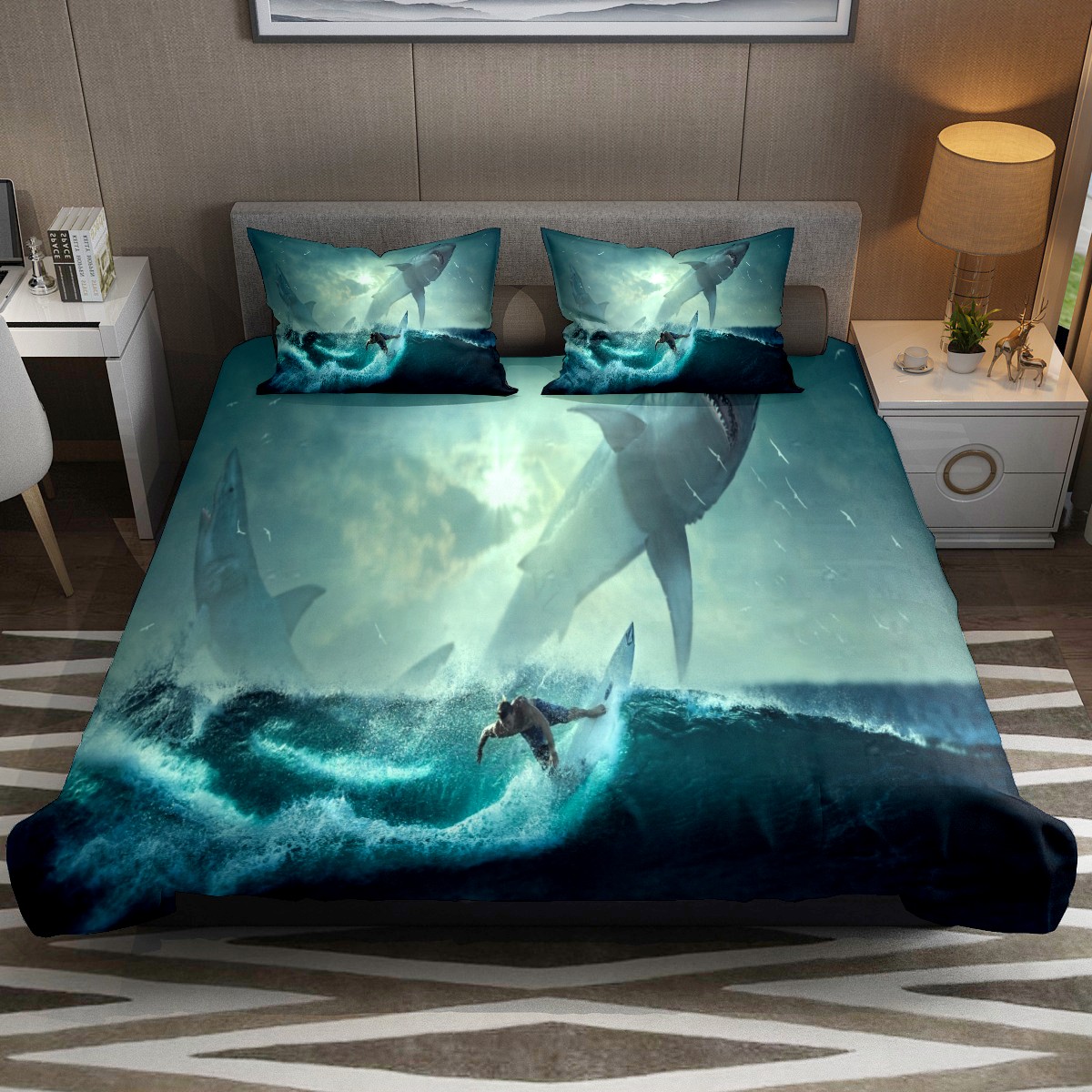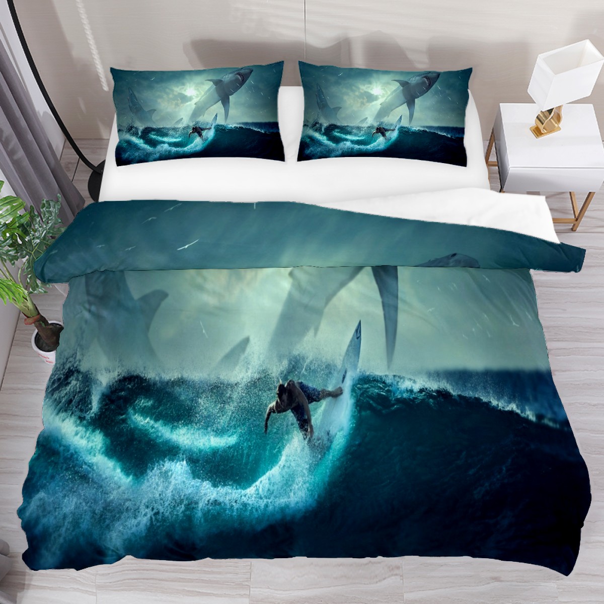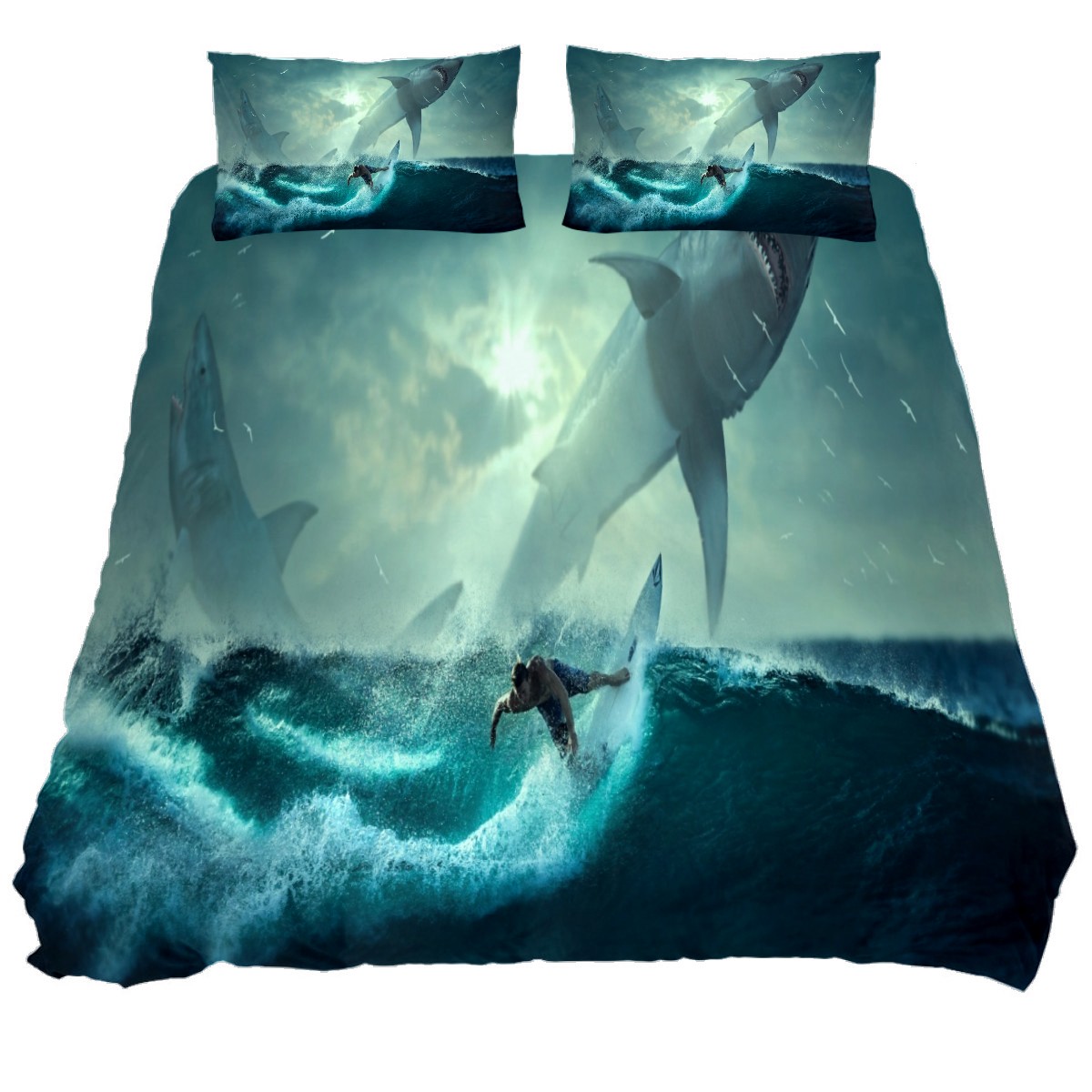Duvet Cover Twin Ocean Animal Shark 3pcs Bedding Duvet Cover Set Modern Quilt Cover Microfiber Comforter Cover with Button Closure with 2 Pillow Cases 1 Duvet Cover
