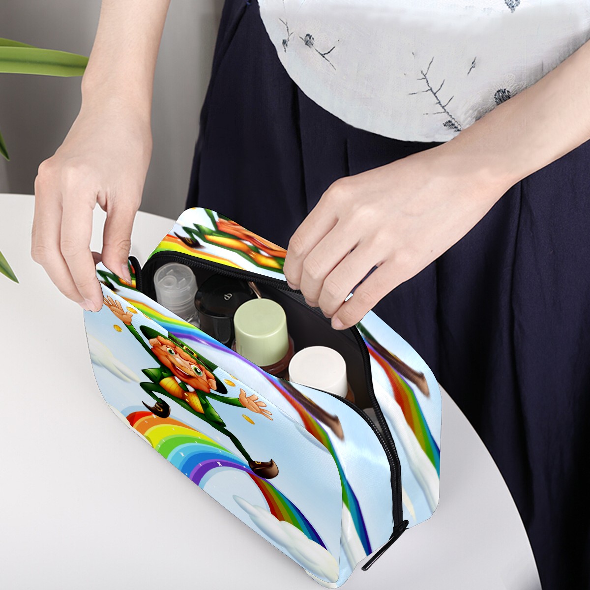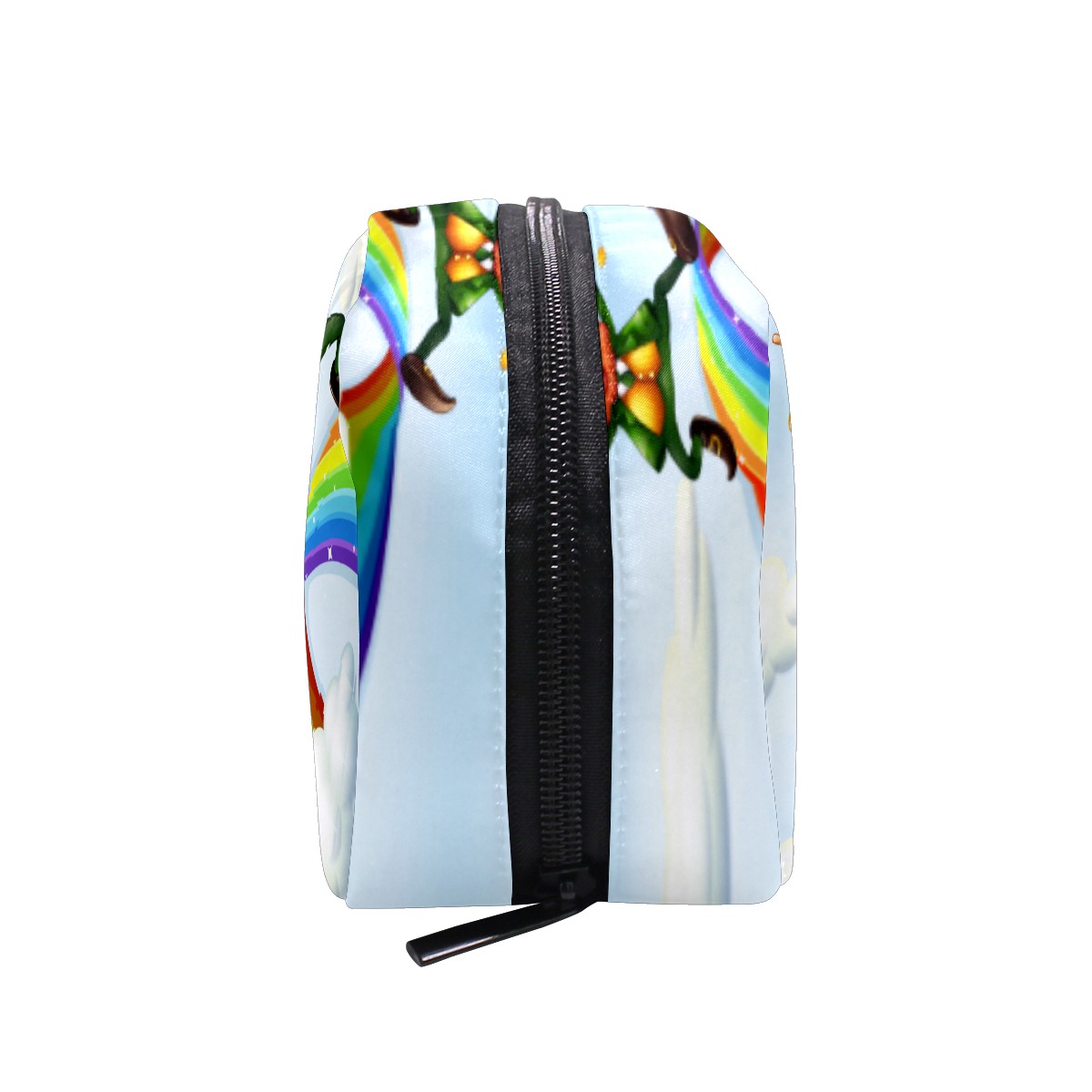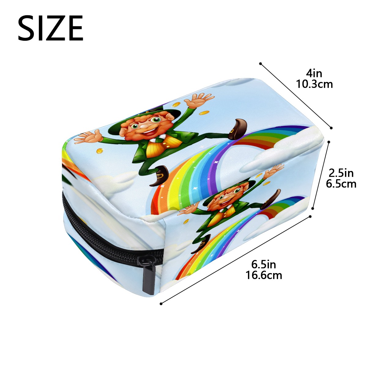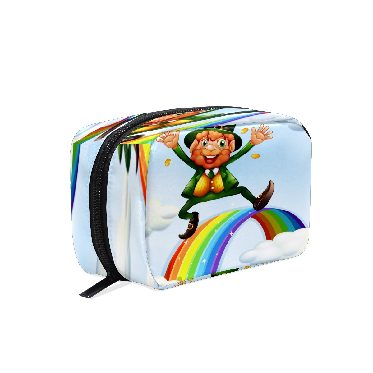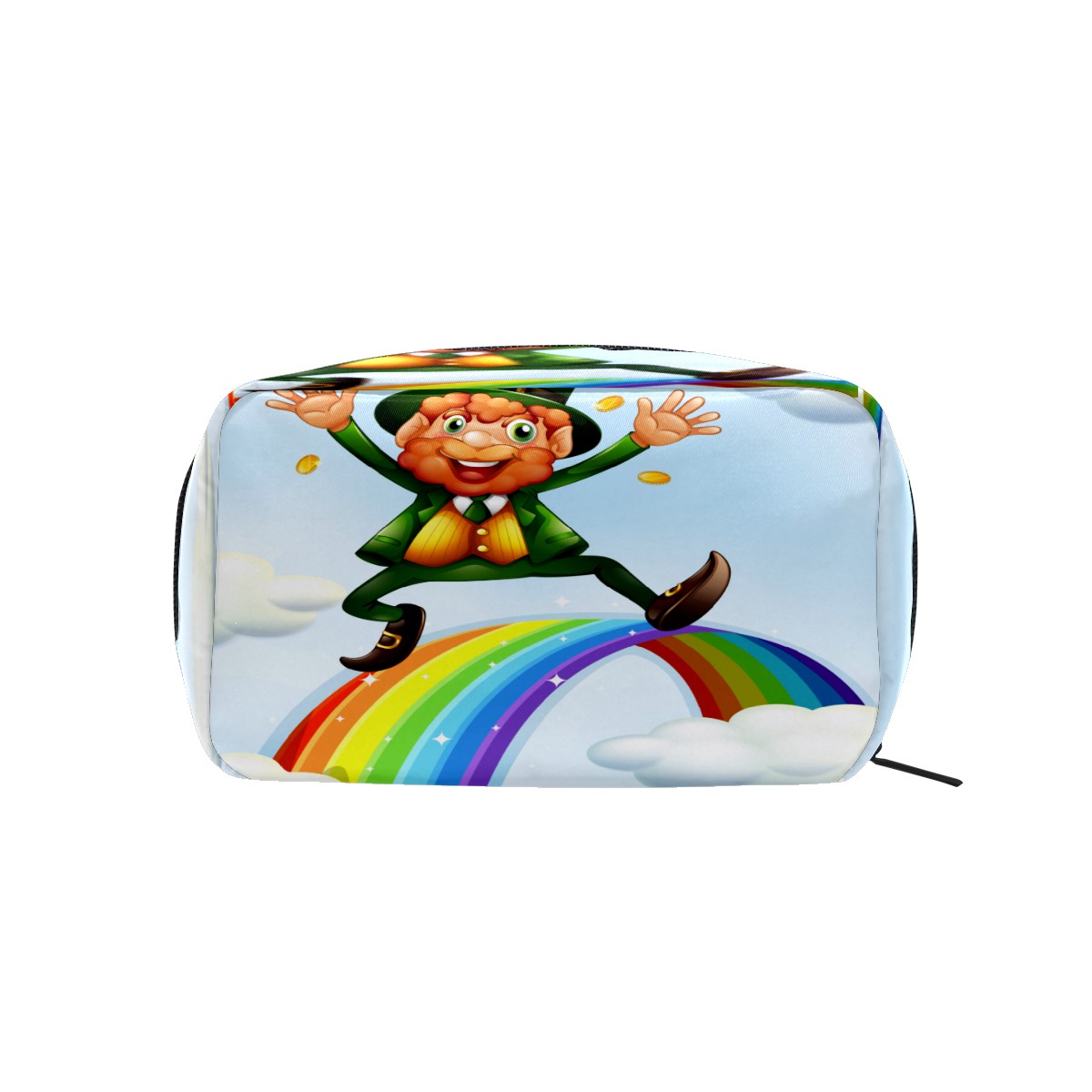 Cosmetic Bag for Women Girls Trave Makeup Bag Toiletry Case Pouch Accessories Organizer Funny Cartoon St. Patrick With Rainbow Clouds