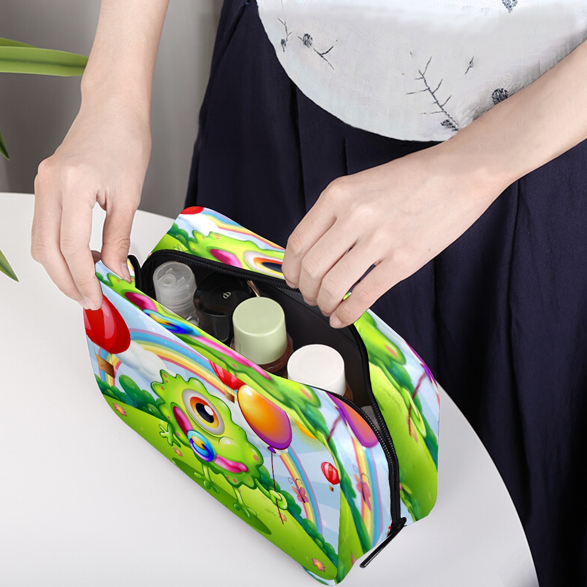 Cosmetic Bag for Women Girls Trave Makeup Bag Toiletry Case Pouch Accessories Organizer Funny Cartoon Rainbow Monster Balloon