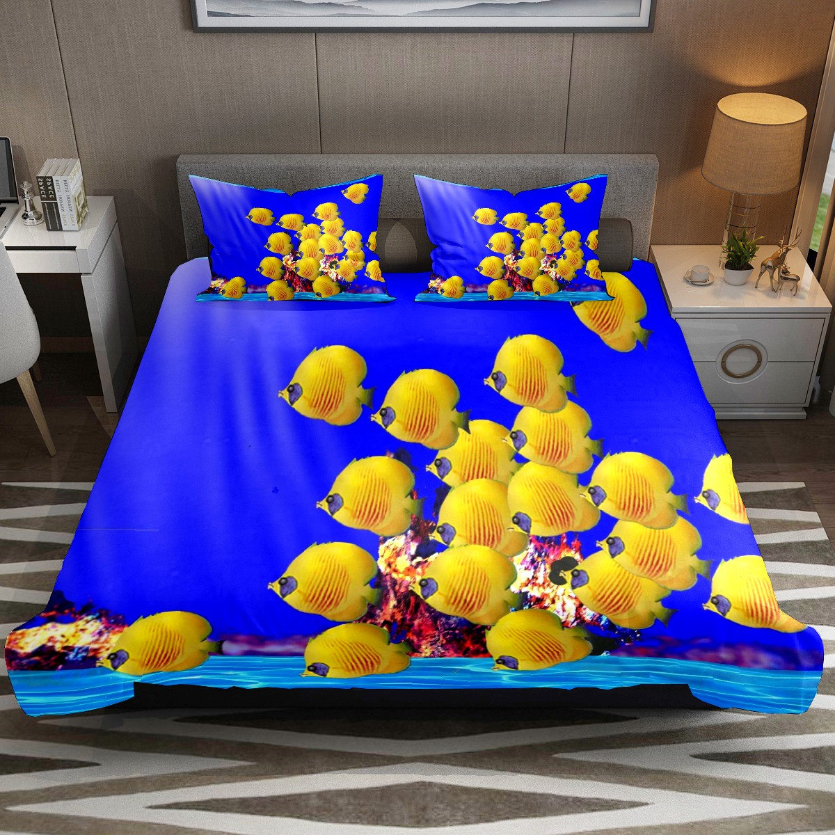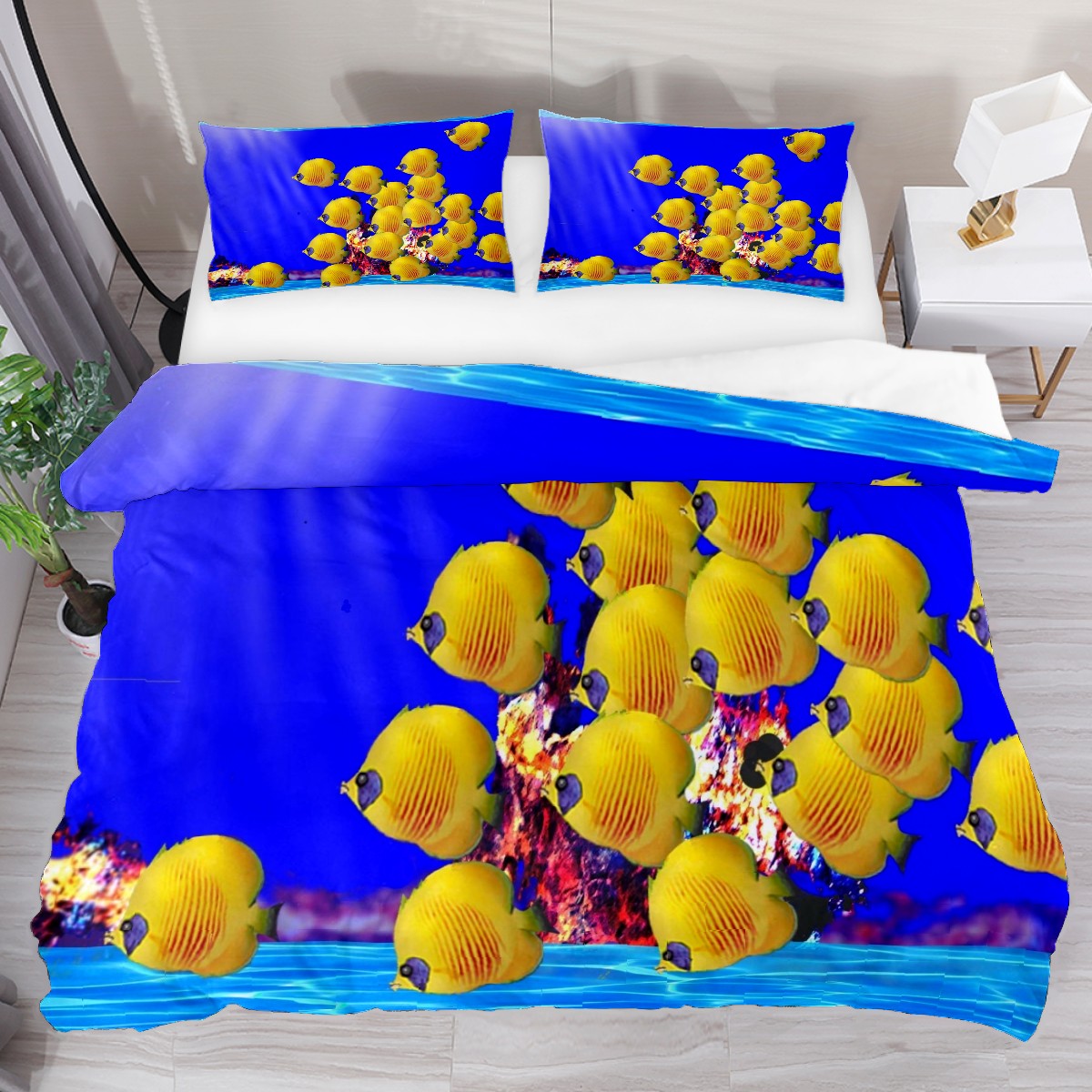 Duvet Cover Twin Sea Fish Cute 3pcs Bedding Duvet Cover Set Modern Quilt Cover Microfiber Comforter Cover with Button Closure with 2 Pillow Cases 1 Duvet Cover
