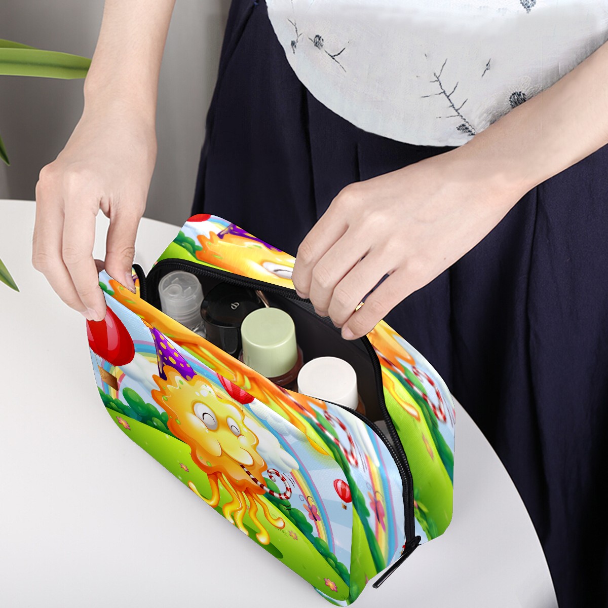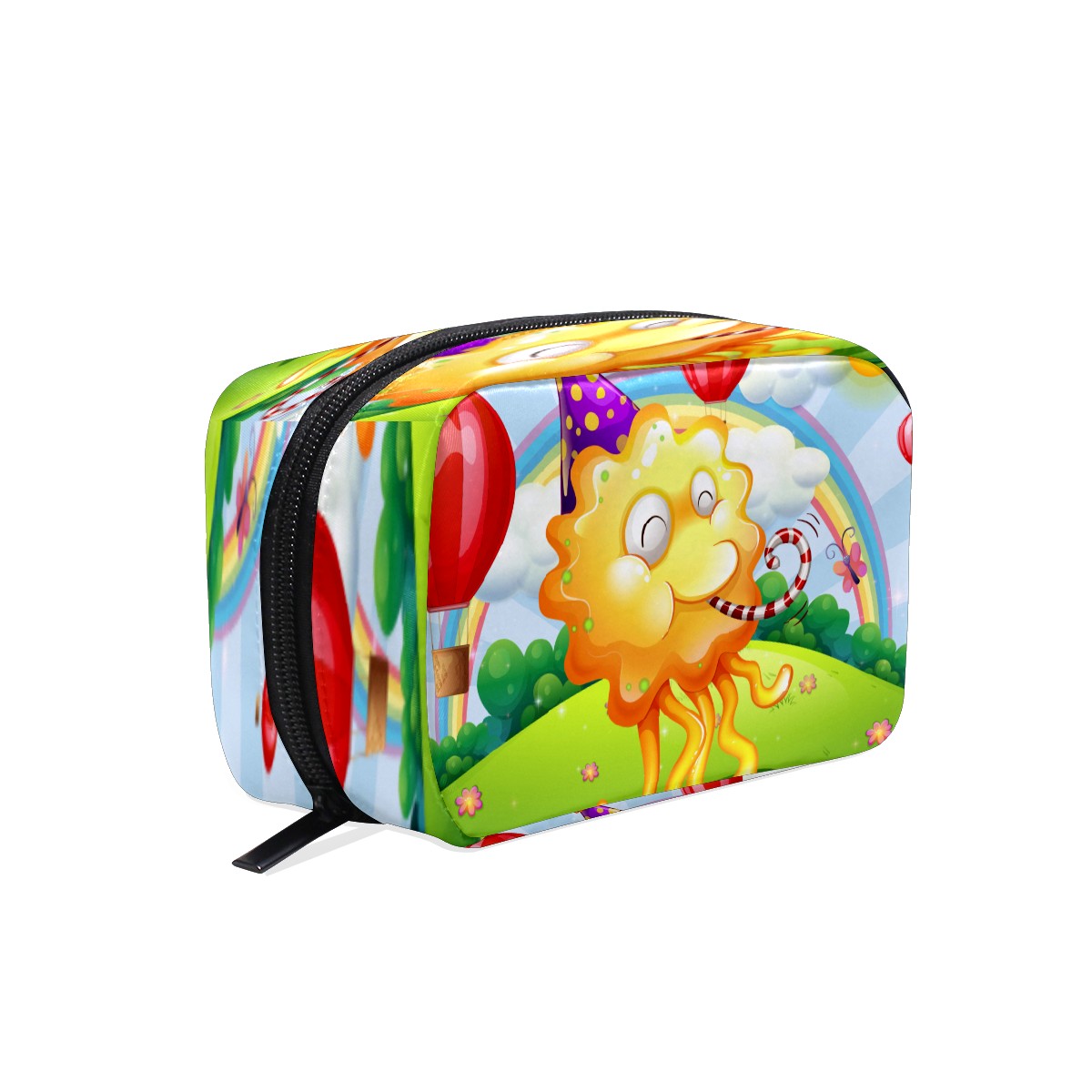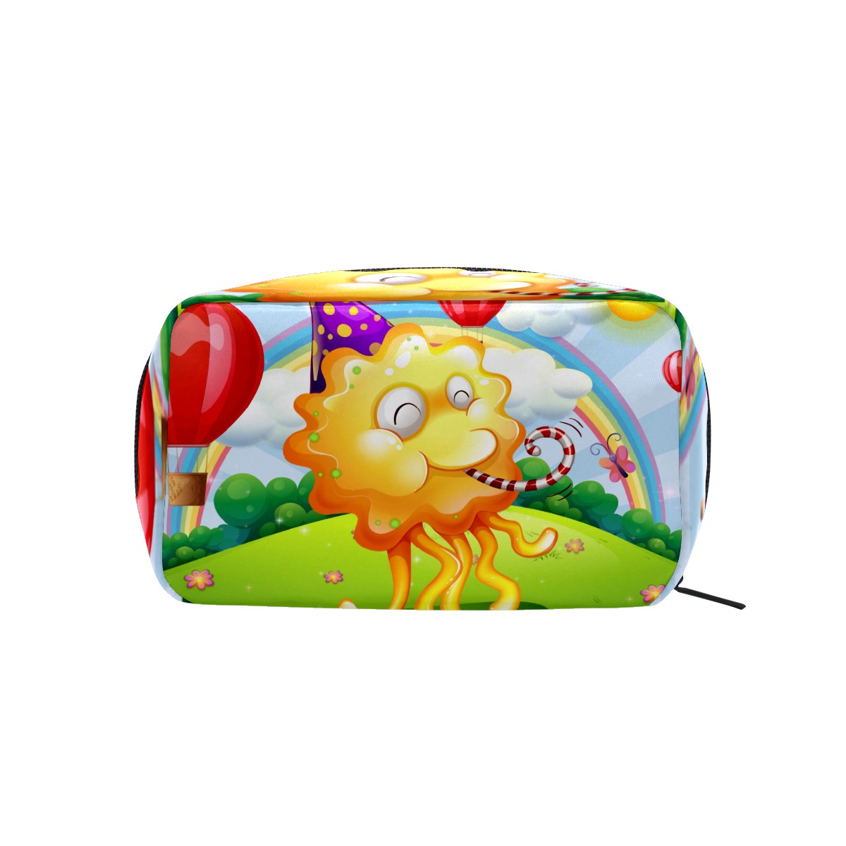 Cosmetic Bag for Women Girls Trave Makeup Bag Toiletry Case Pouch Accessories Organizer Funny Cartoon Monster Smile Hot Air Balloon Rainbow