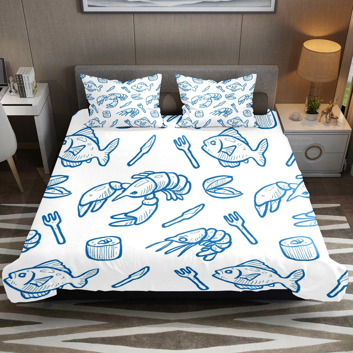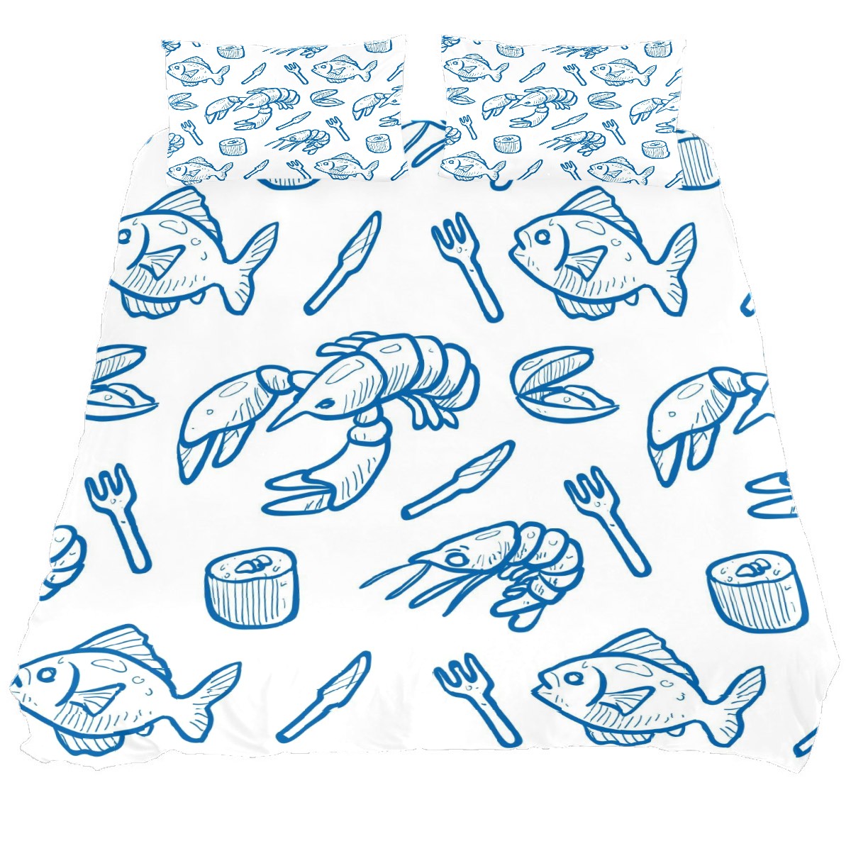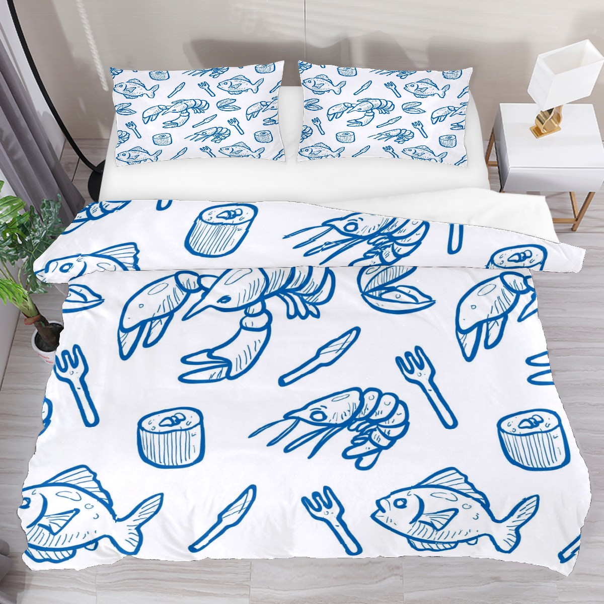 Duvet Cover Twin Marine Life Shrimp Fish 3pcs Bedding Duvet Cover Set Modern Quilt Cover Microfiber Comforter Cover with Button Closure with 2 Pillow Cases 1 Duvet Cover