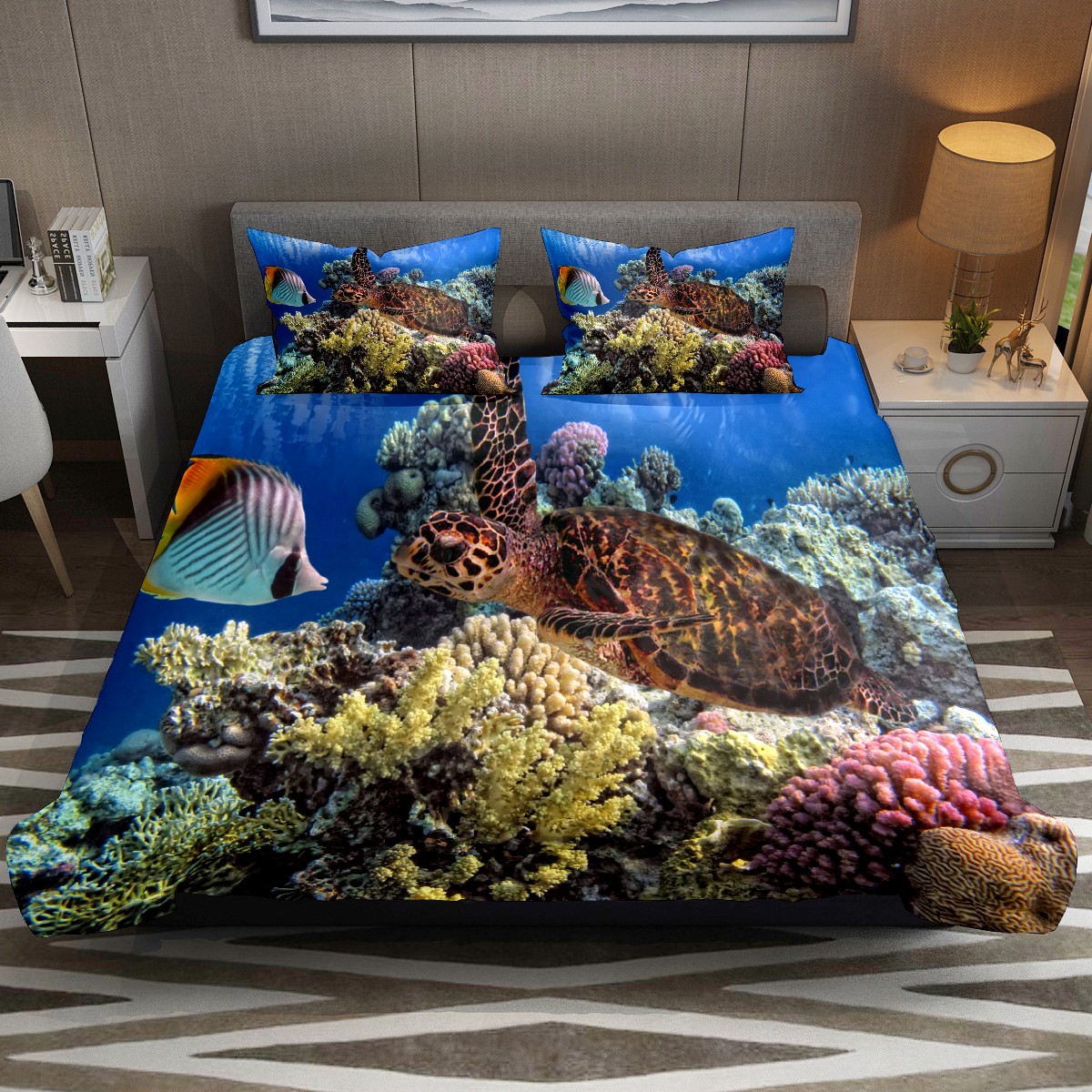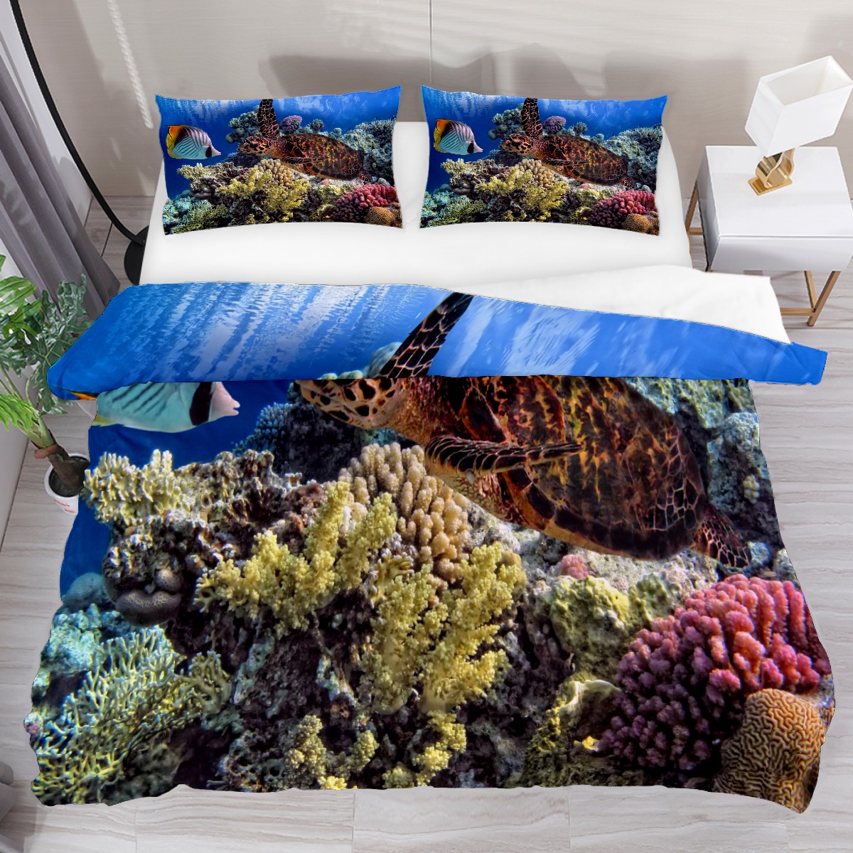 Duvet Cover Twin Marine Animal Tortoise Coral 3pcs Bedding Duvet Cover Set Modern Quilt Cover Microfiber Comforter Cover with Button Closure with 2 Pillow Cases 1 Duvet Cover