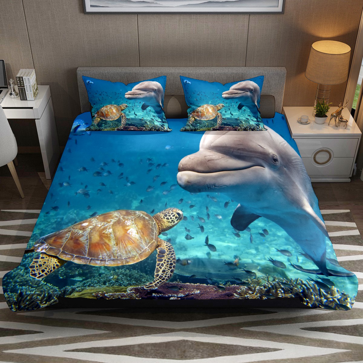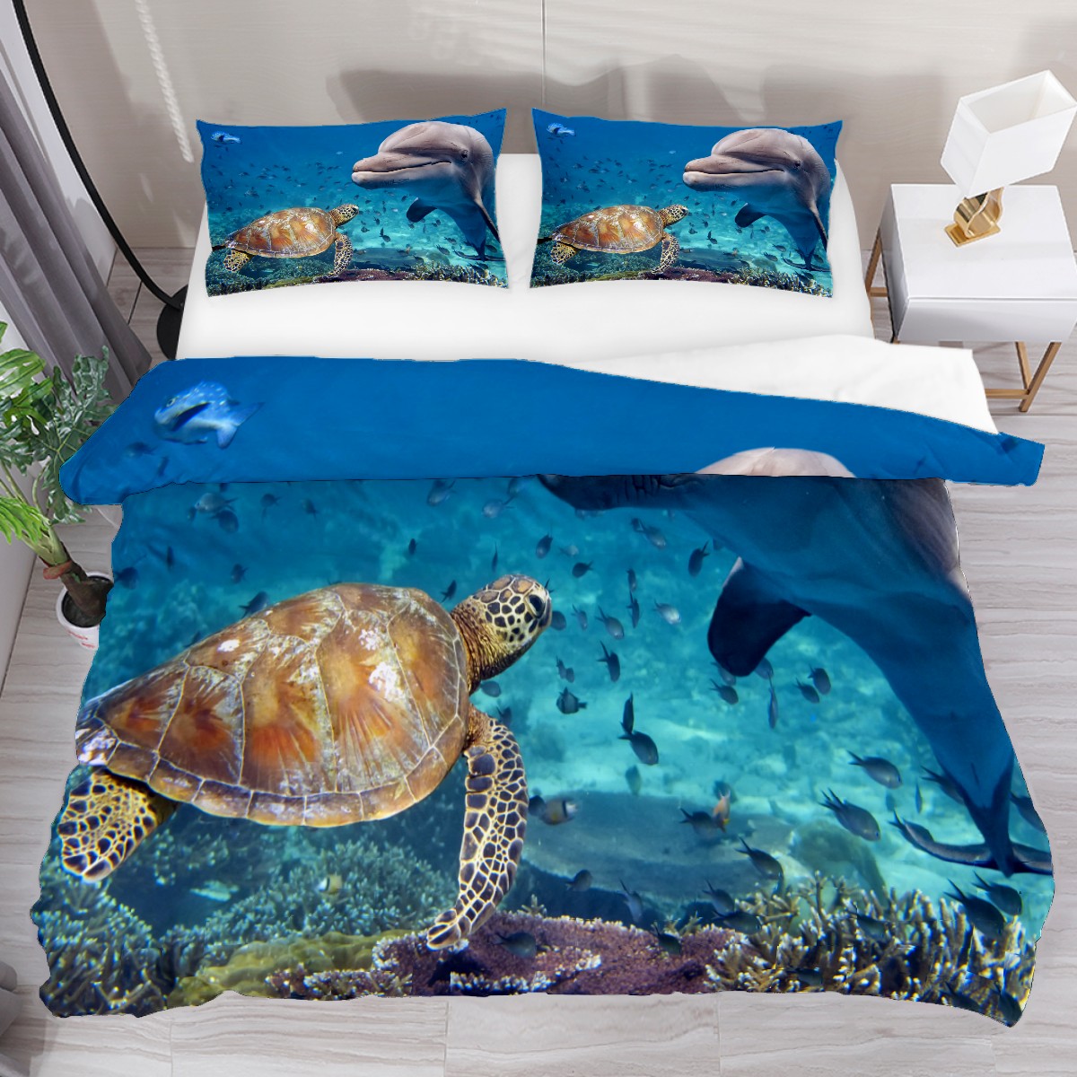 Duvet Cover Twin Marine Animal Whale Tortoise 3pcs Bedding Duvet Cover Set Modern Quilt Cover Microfiber Comforter Cover with Button Closure with 2 Pillow Cases 1 Duvet Cover