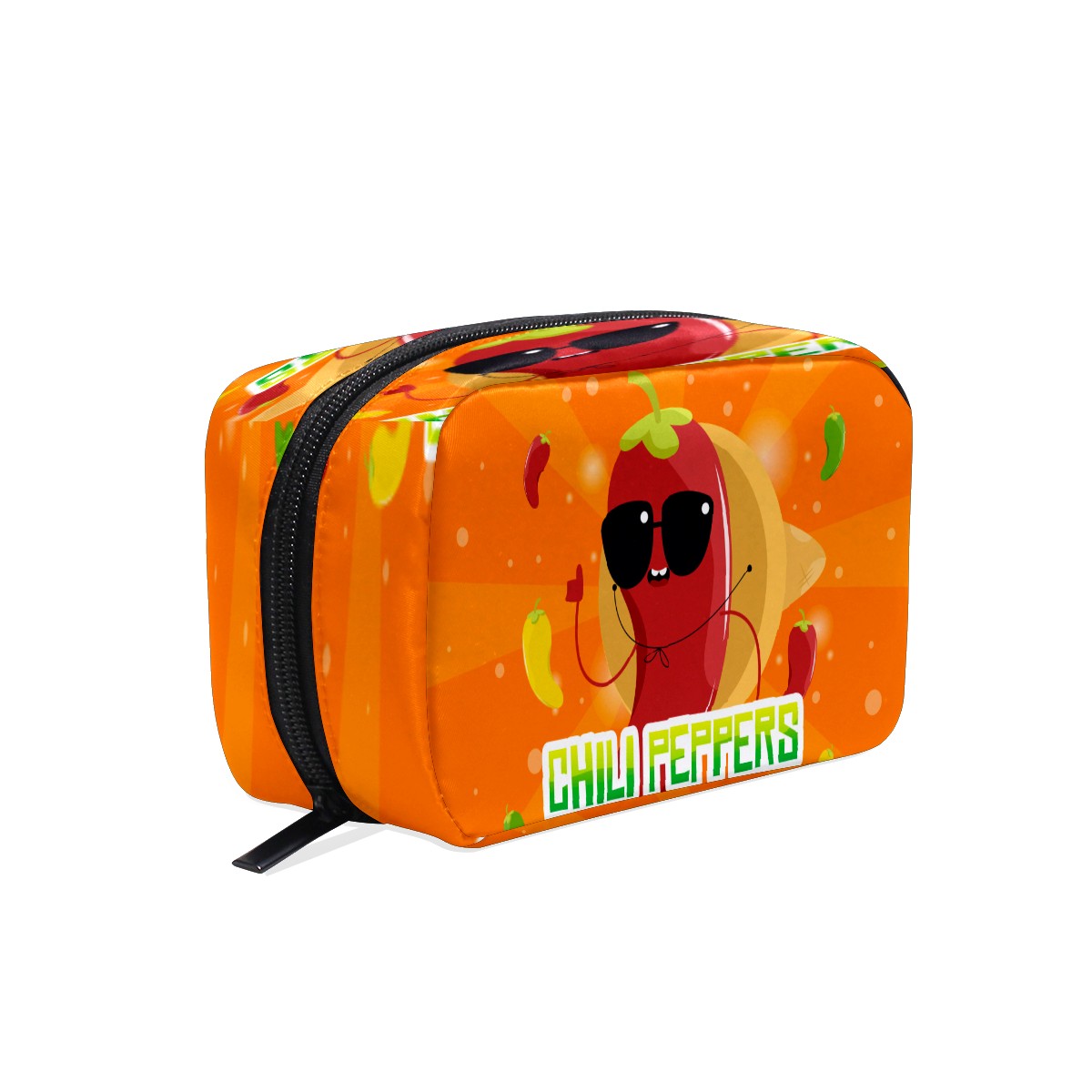 Cosmetic Bag for Women Girls Trave Makeup Bag Toiletry Case Pouch Accessories Organizer Funny Cartoon Mexican Food Chili Peppers