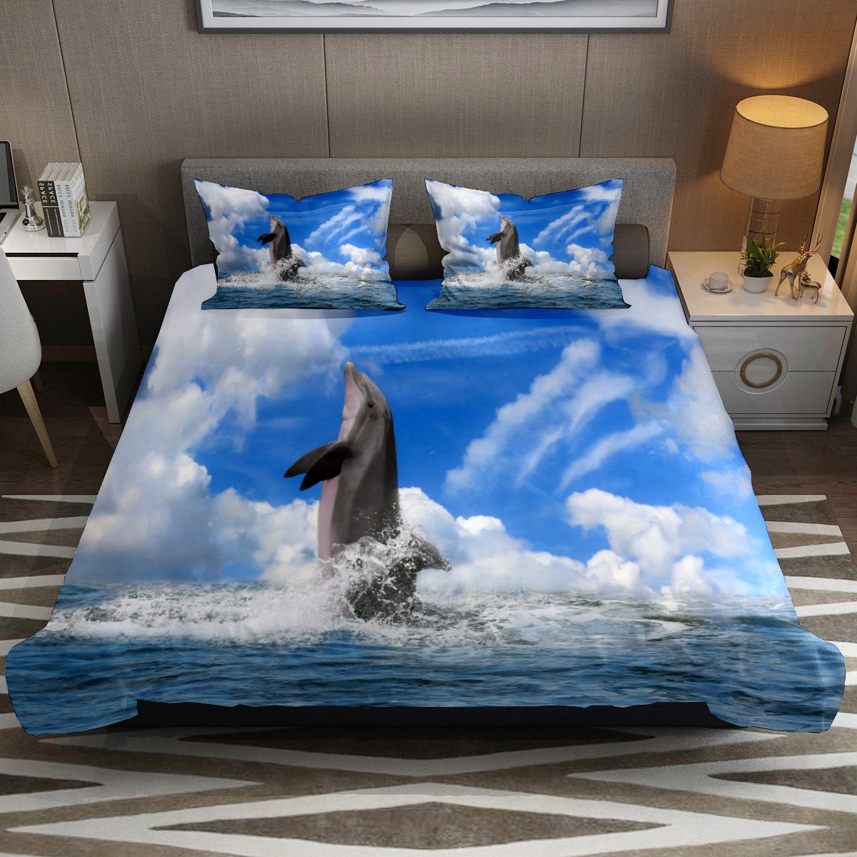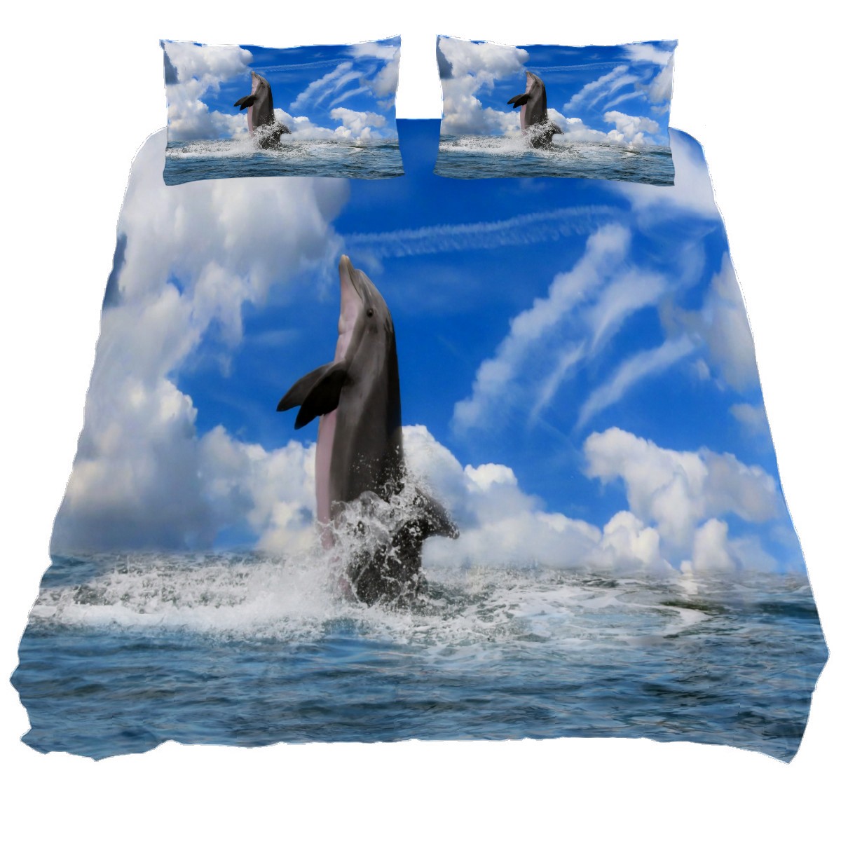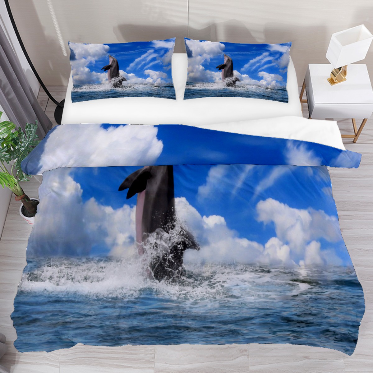 Duvet Cover Twin Marine Animal Sea Dolphin 3pcs Bedding Duvet Cover Set Modern Quilt Cover Microfiber Comforter Cover with Button Closure with 2 Pillow Cases 1 Duvet Cover
