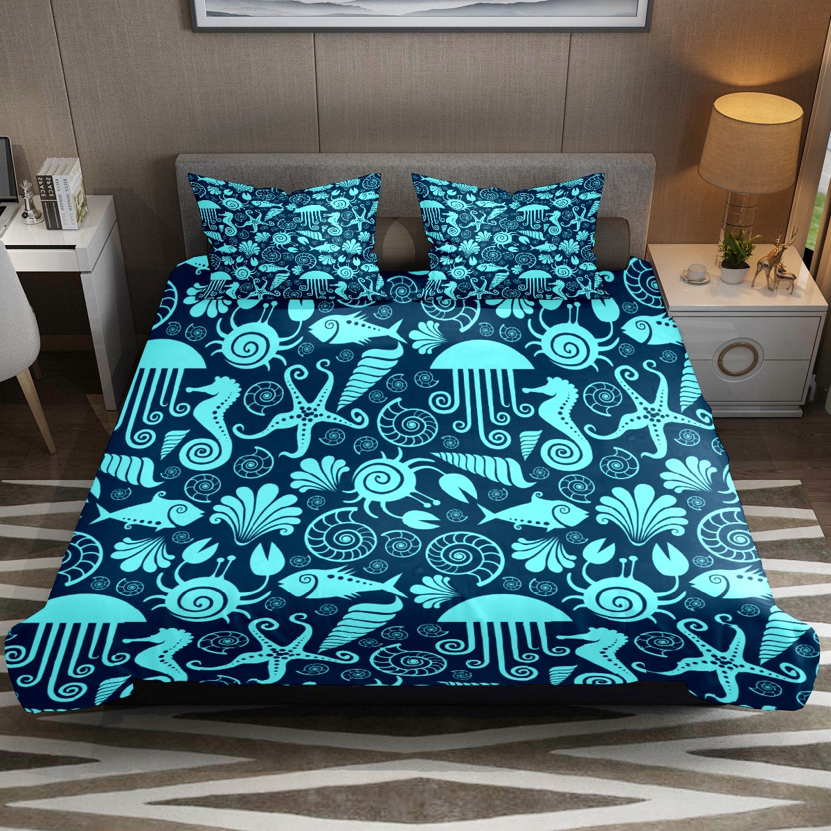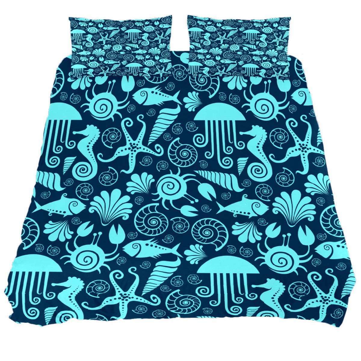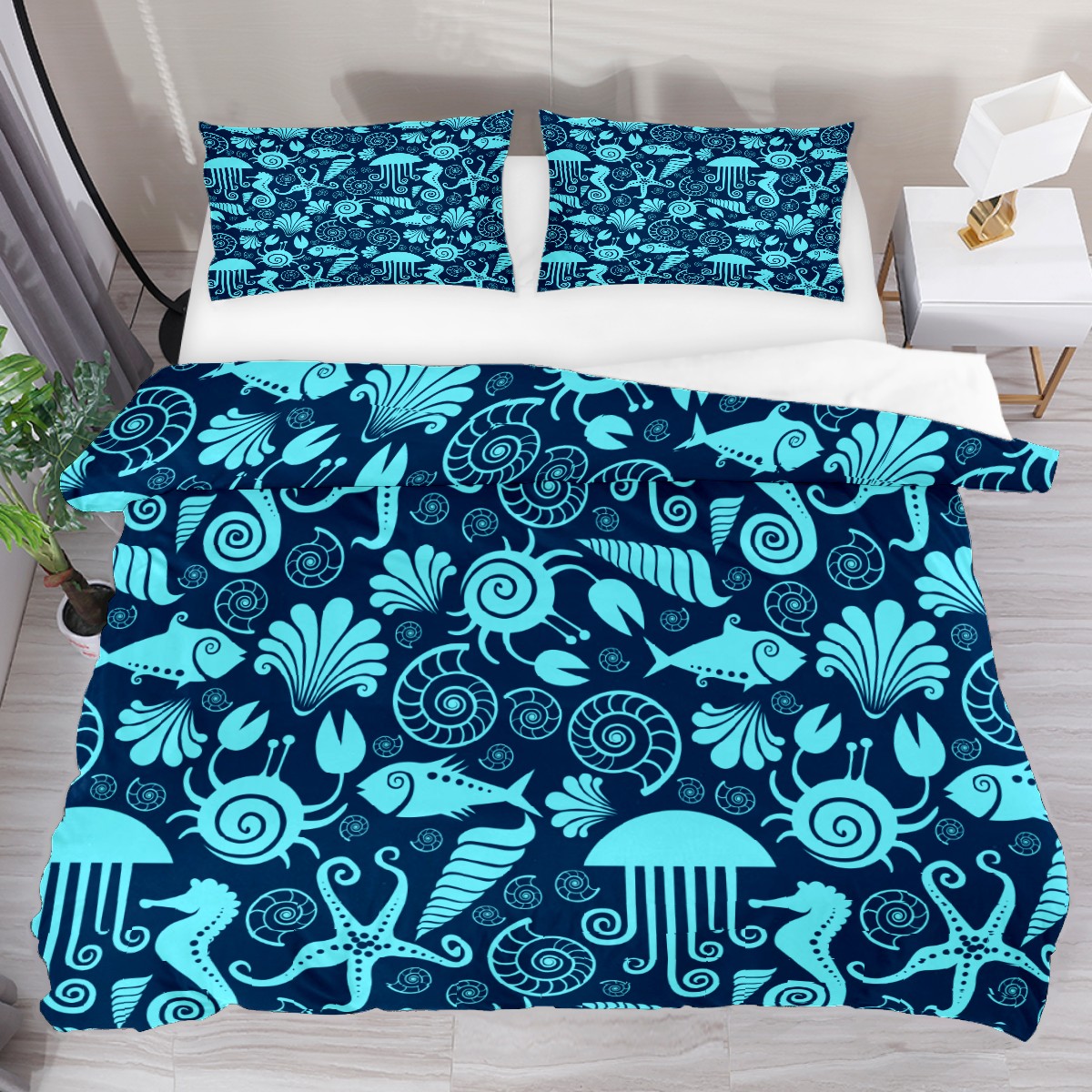 Duvet Cover Twin Marine Animal Hippocampus Starfish 3pcs Bedding Duvet Cover Set Modern Quilt Cover Microfiber Comforter Cover with Button Closure with 2 Pillow Cases 1 Duvet Cover