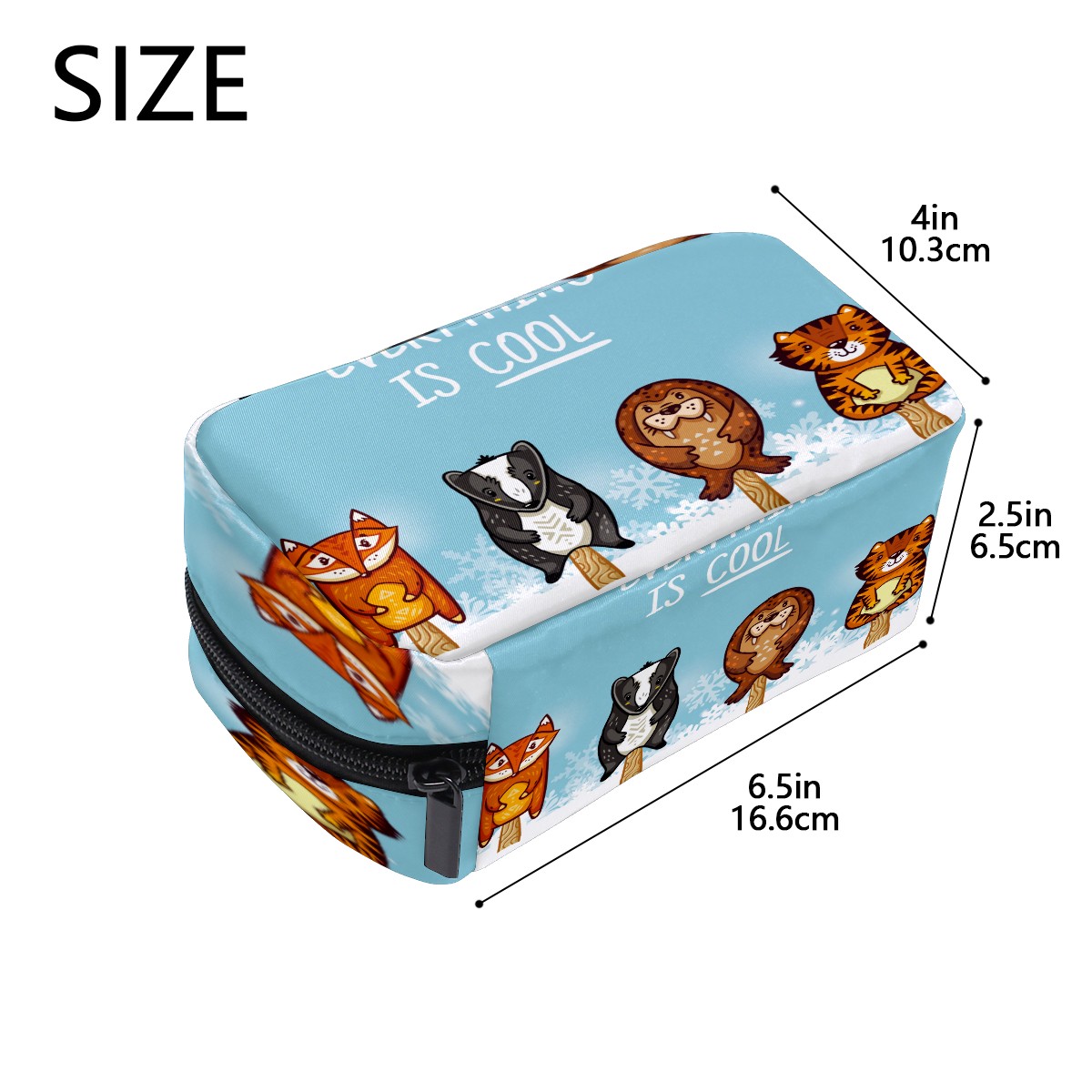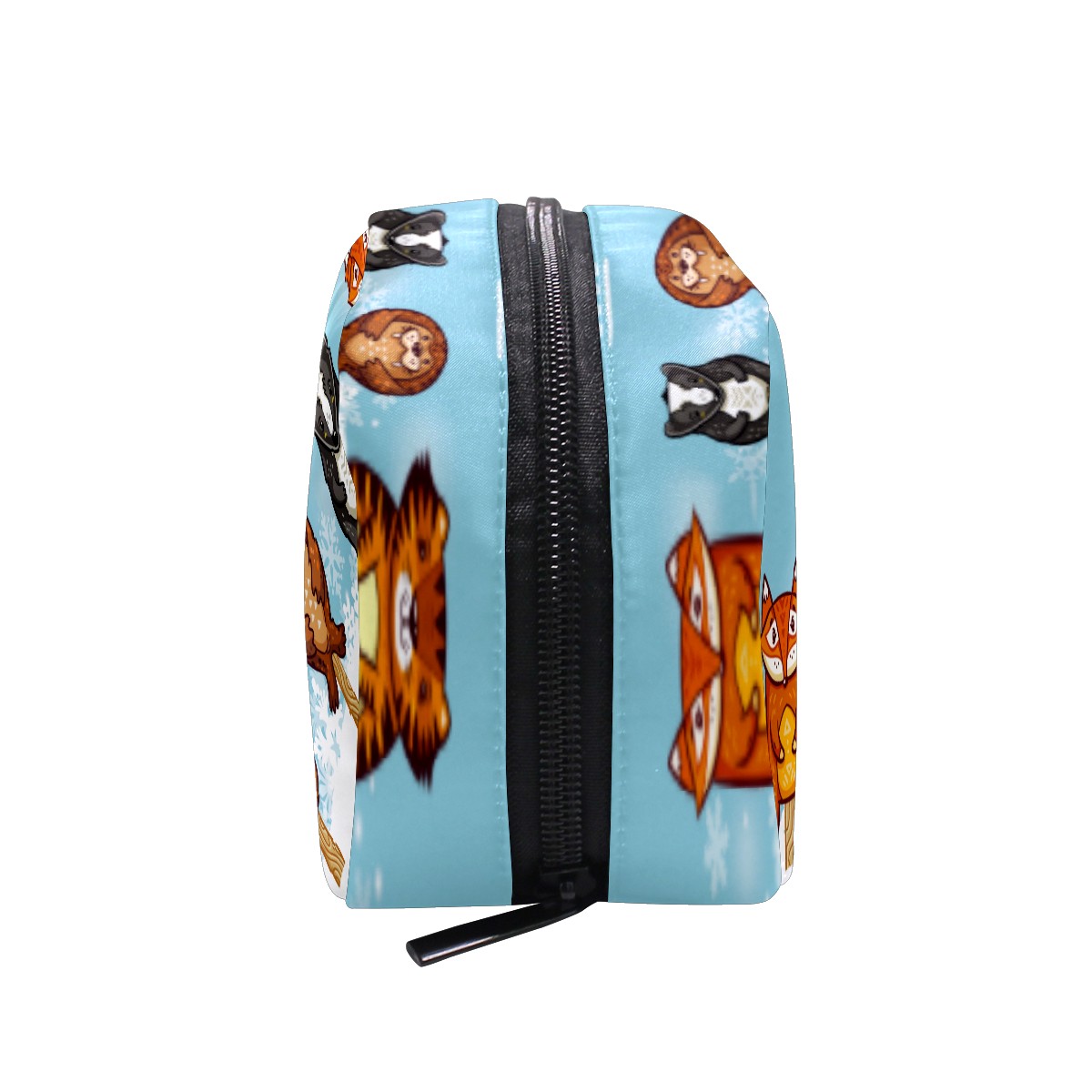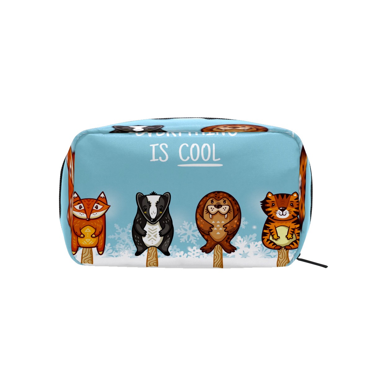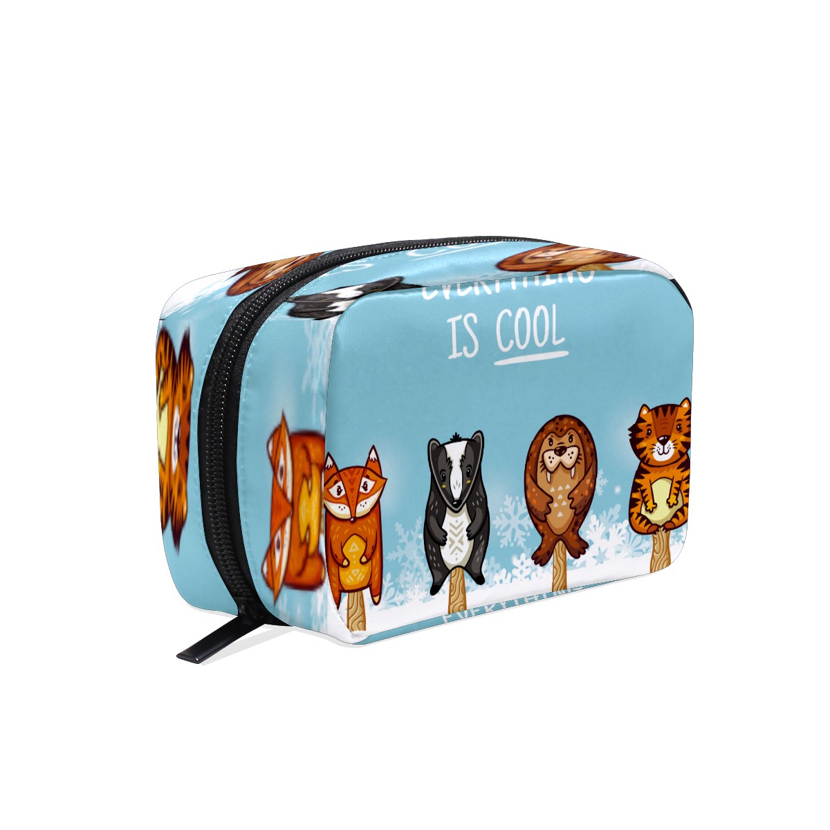 Cosmetic Bag for Women Girls Trave Makeup Bag Toiletry Case Pouch Accessories Organizer Funny Cartoon Fox Badger Seal Tiger Ice Cream