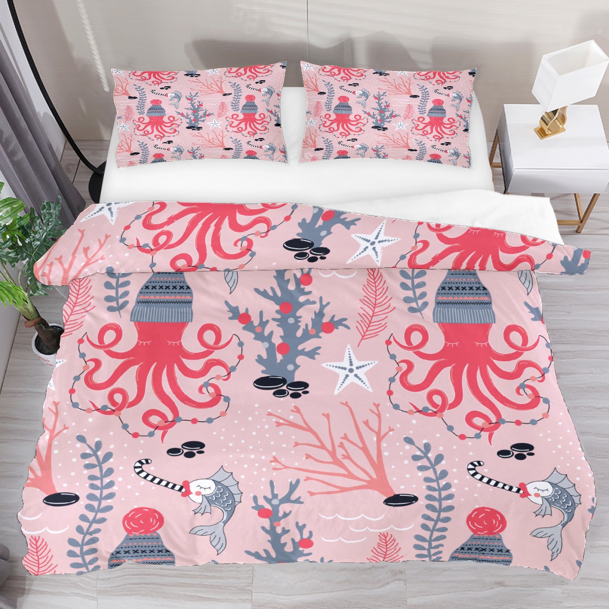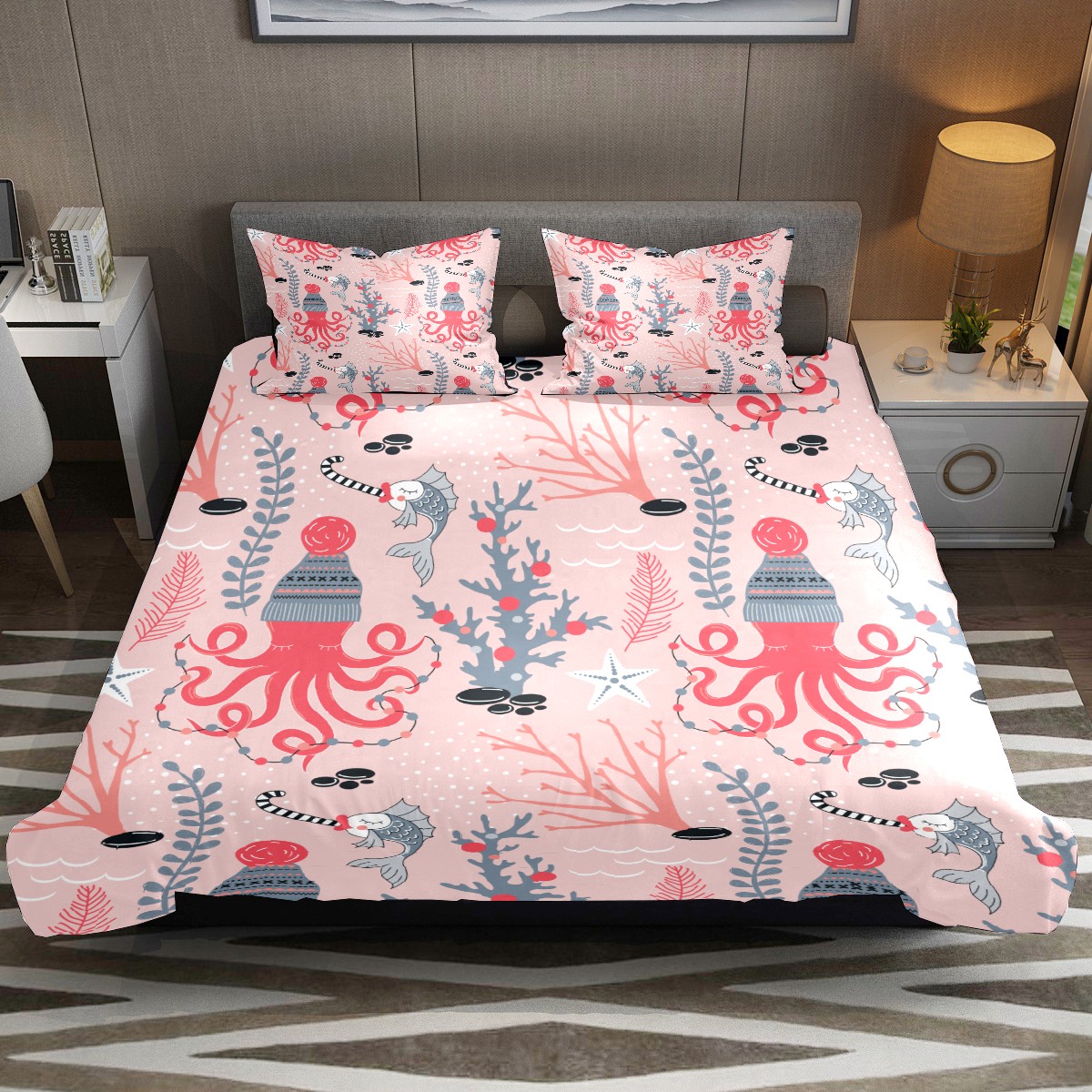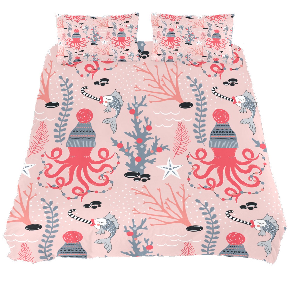 Duvet Cover Twin Marine Animal Octopus Fish Coral 3pcs Bedding Duvet Cover Set Modern Quilt Cover Microfiber Comforter Cover with Button Closure with 2 Pillow Cases 1 Duvet Cover