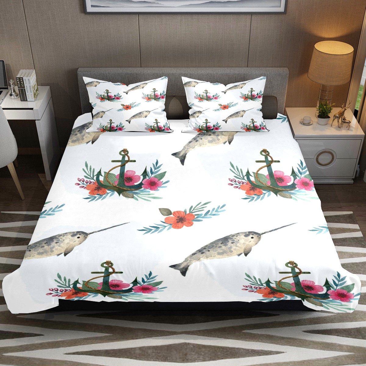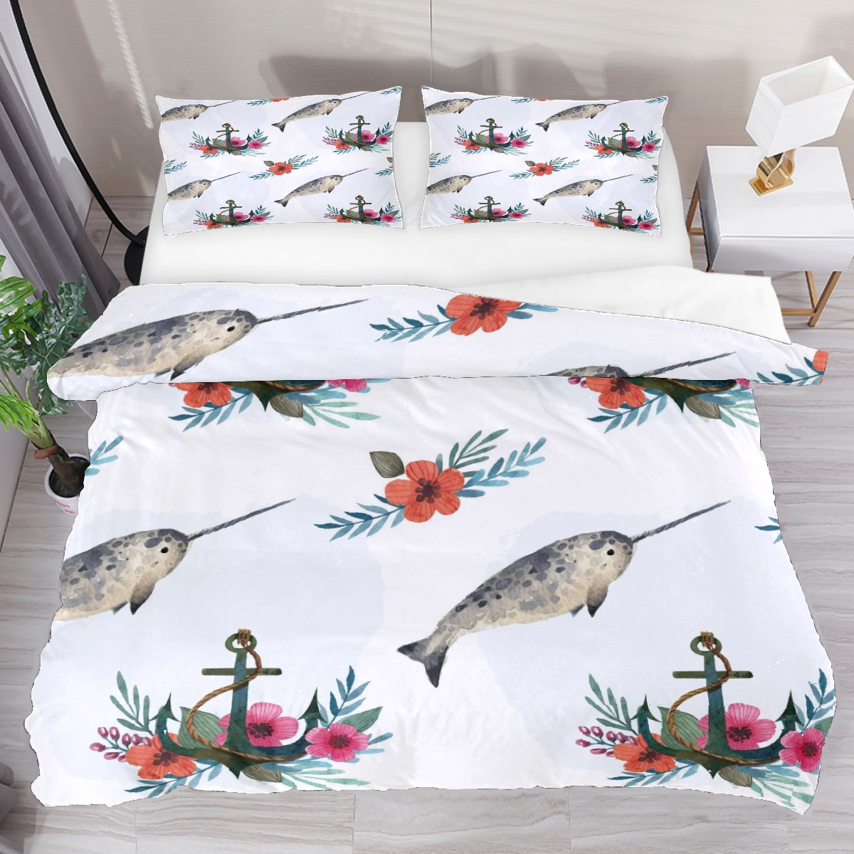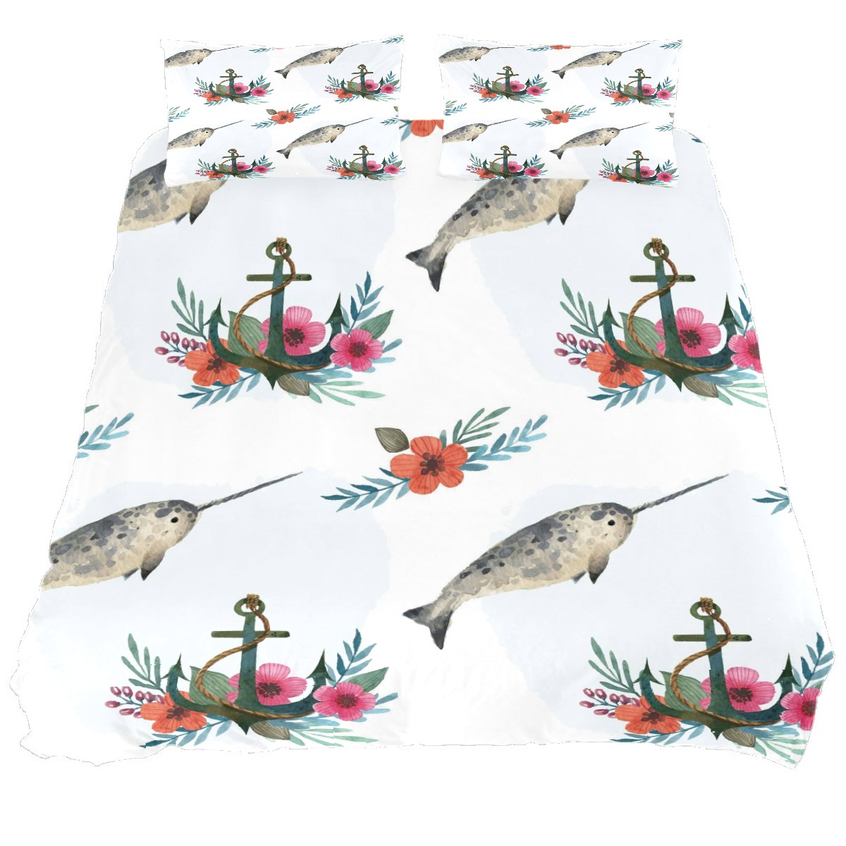 Duvet Cover Twin Marine Animal Fish Anchor Florals 3pcs Bedding Duvet Cover Set Modern Quilt Cover Microfiber Comforter Cover with Button Closure with 2 Pillow Cases 1 Duvet Cover