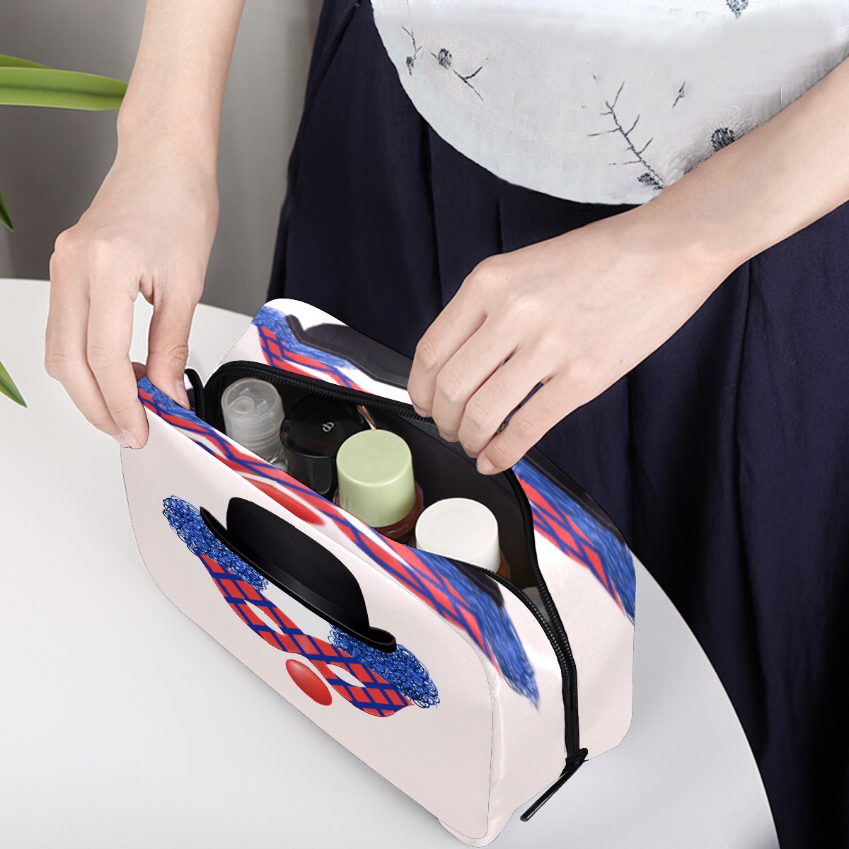 Cosmetic Bag for Women Girls Trave Makeup Bag Toiletry Case Pouch Accessories Organizer Funny Cartoon Clown Mask