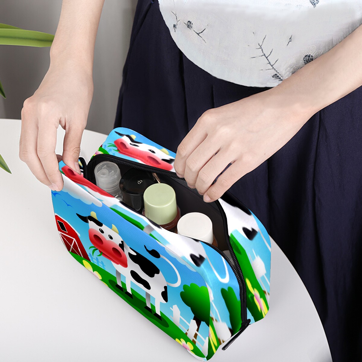 Cosmetic Bag for Women Girls Trave Makeup Bag Toiletry Case Pouch Accessories Organizer Funny Cartoon Animal Cow