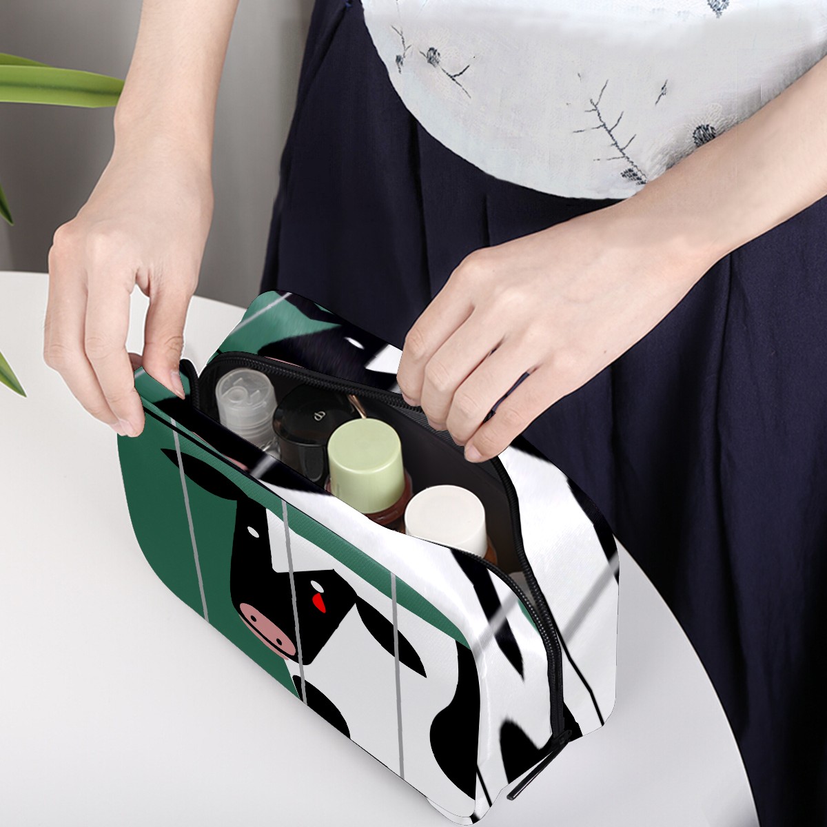 Cosmetic Bag for Women Girls Trave Makeup Bag Toiletry Case Pouch Accessories Organizer Funny Cartoon Animal Cow